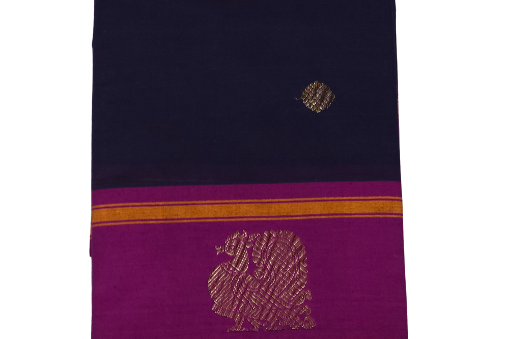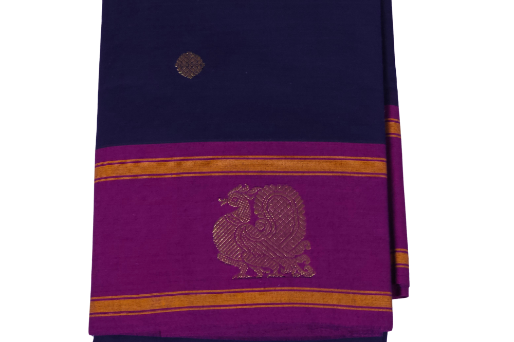 Navy Blue and Purple Kanjeevaram Cotton Saree