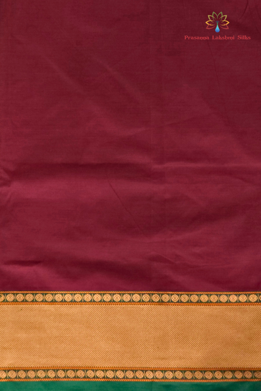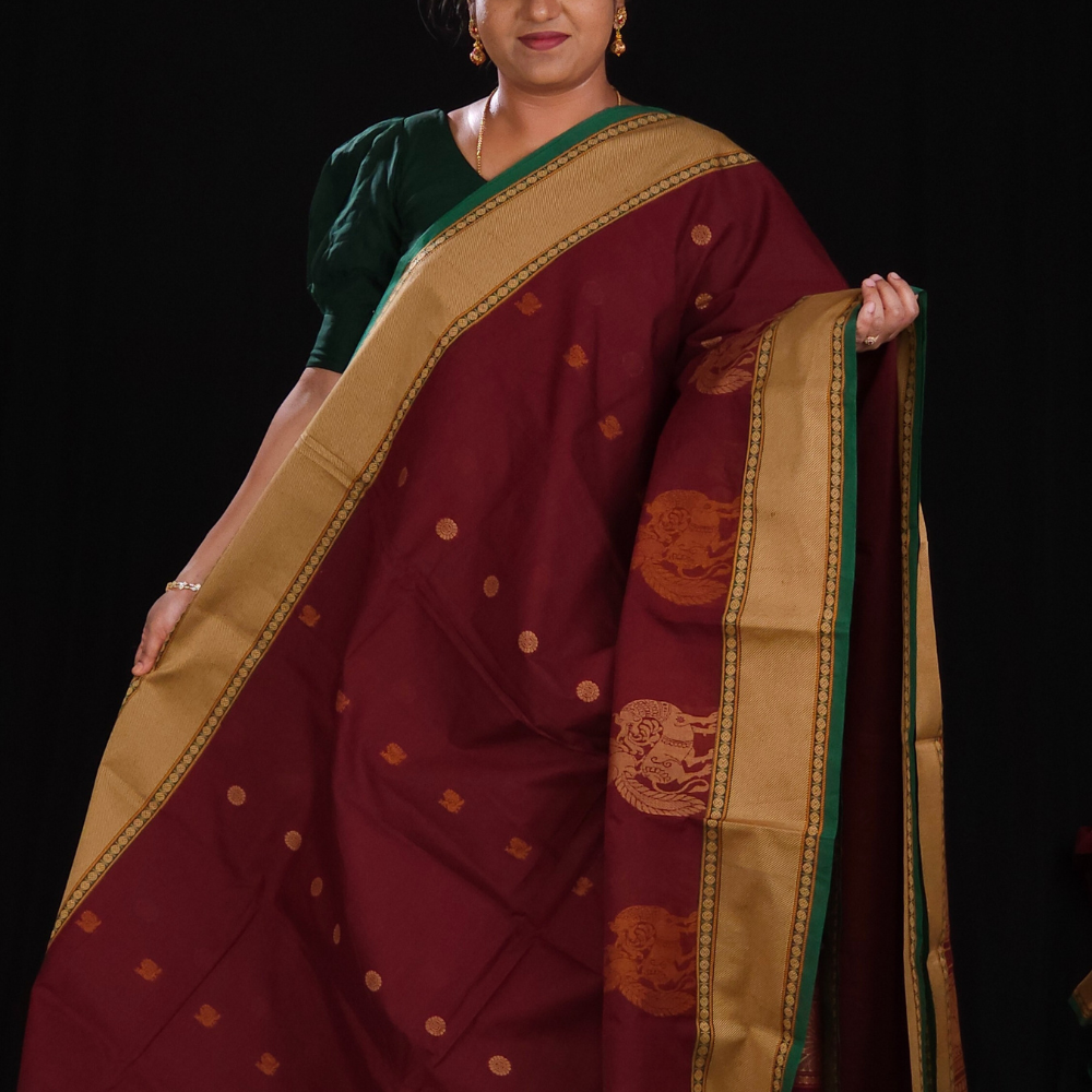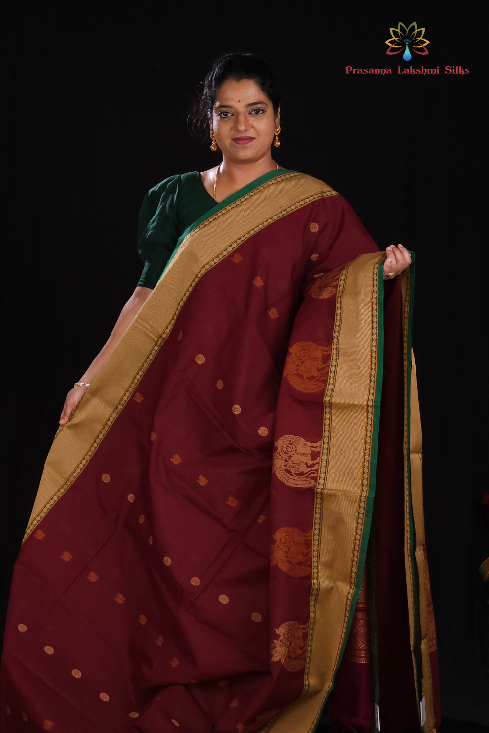 Dark Maroon and Green Kanjeevaram Cotton Saree