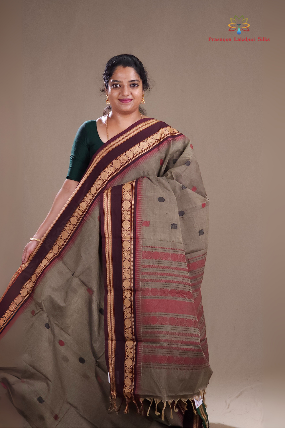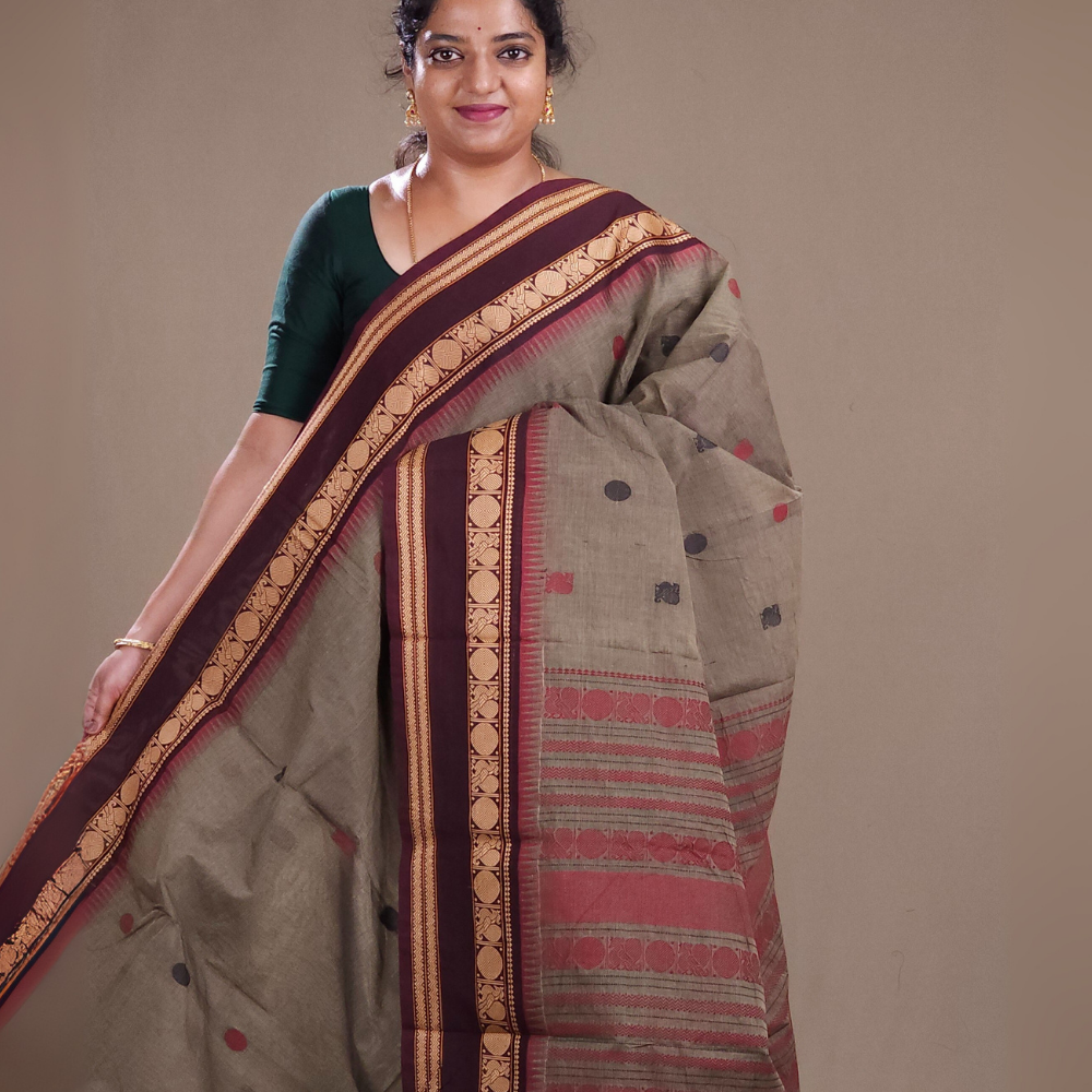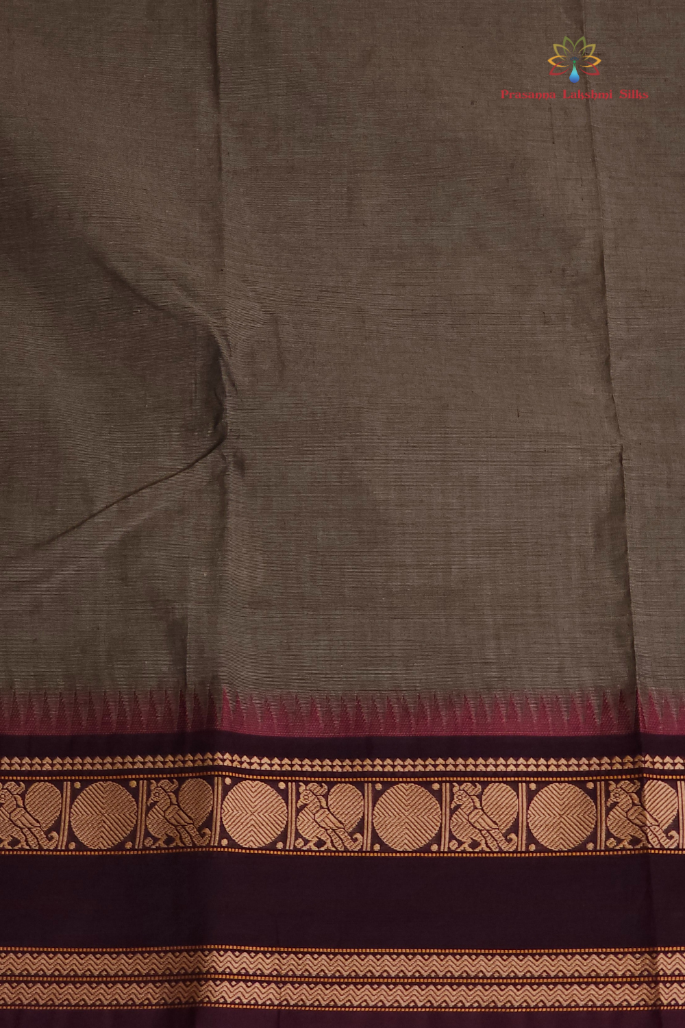 Grey and Coffee Brown Kanjeevaram Cotton Saree