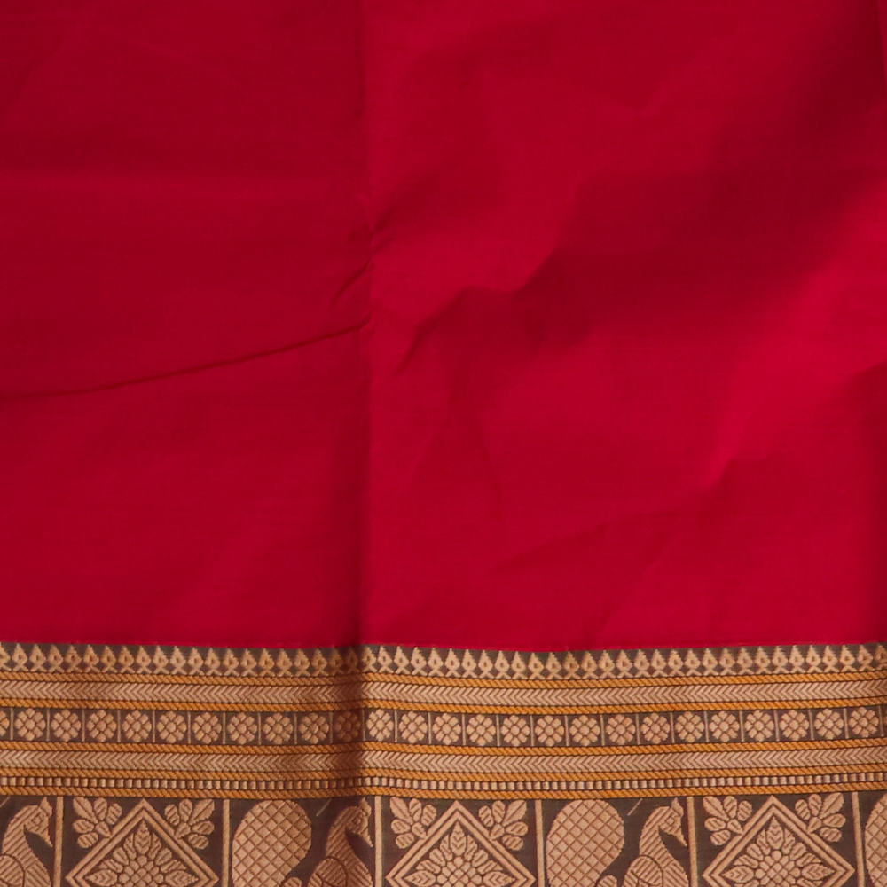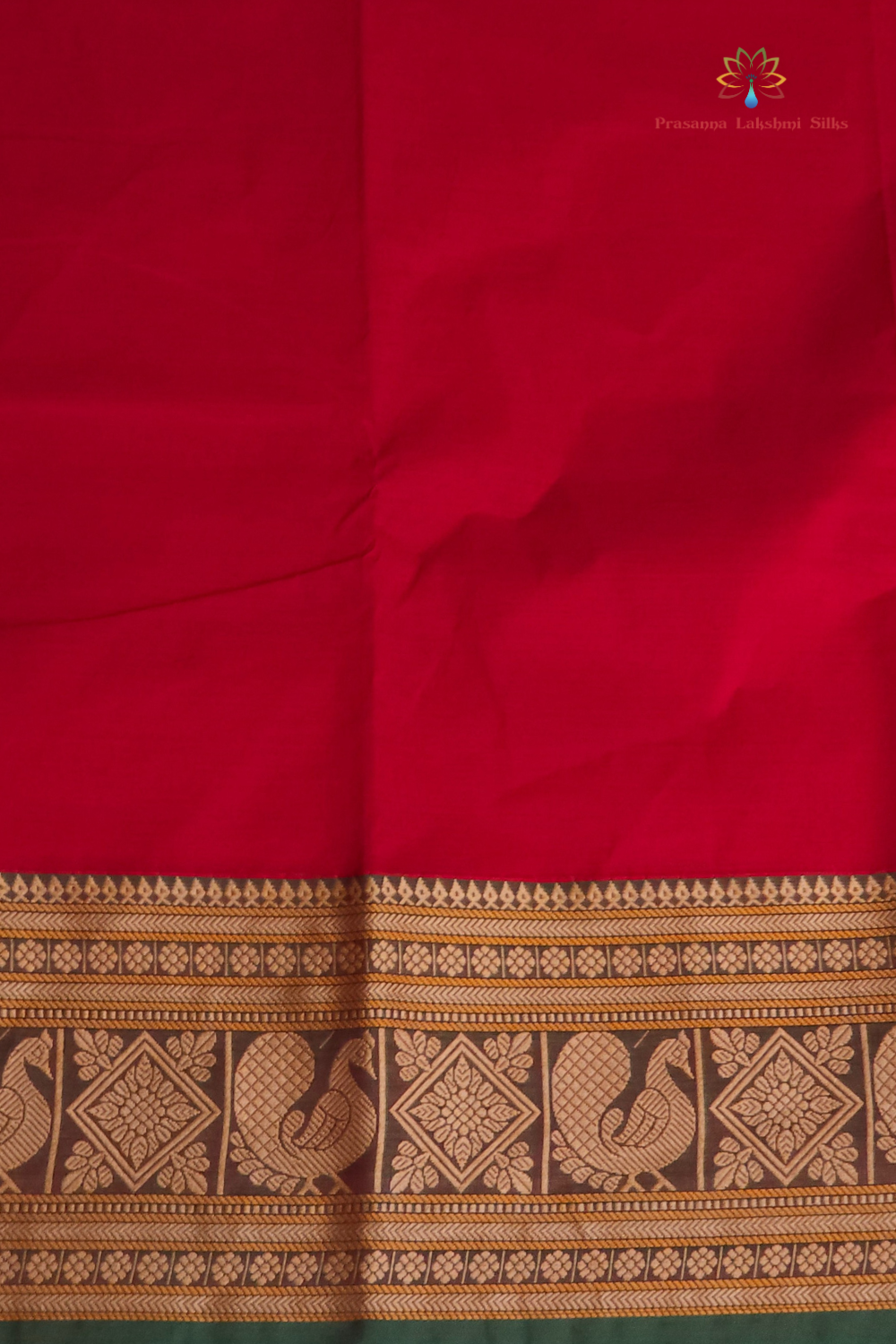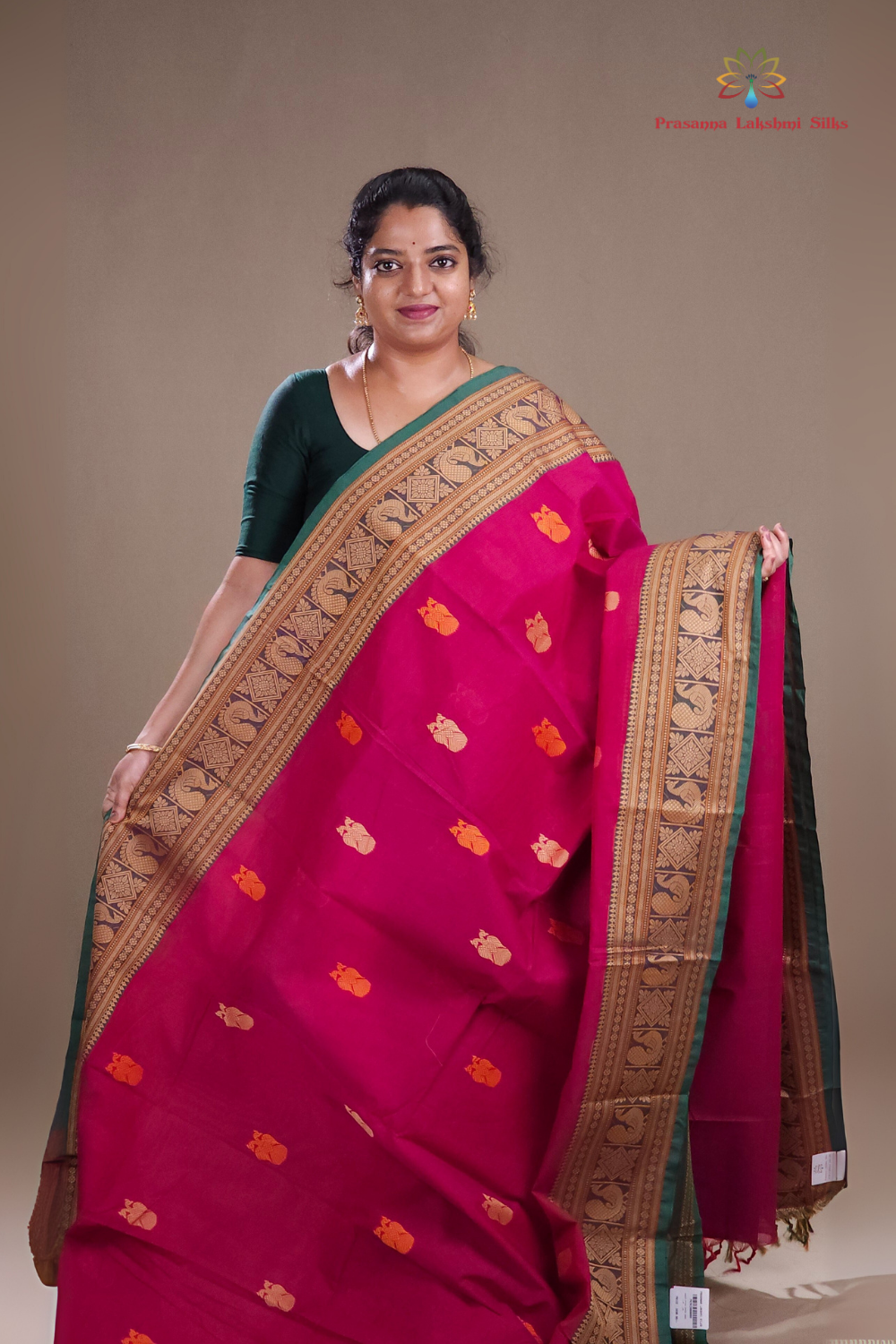 Elevate your style with our stunning Handloom Kanchi Cotton Saree allover thread woven peacock motifs with equisite thread woven contrast borders, Rich pallu paired with running blouse...