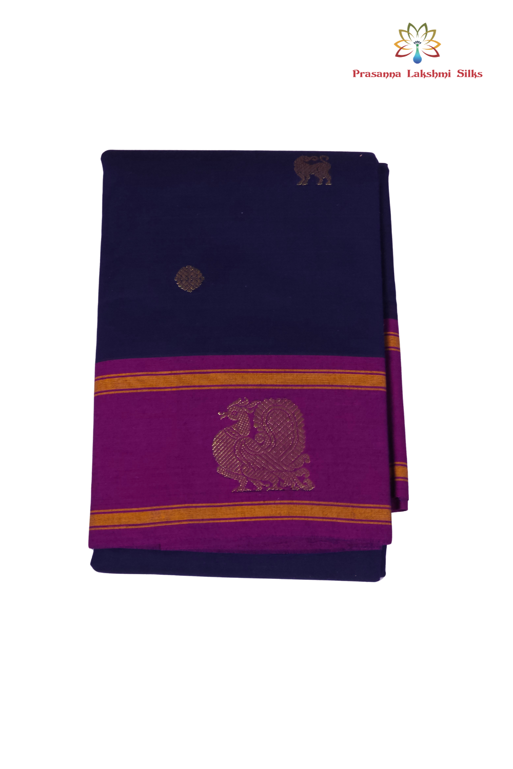 Navy Blue and Purple Kanjeevaram Cotton Saree