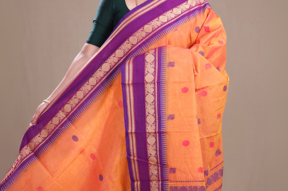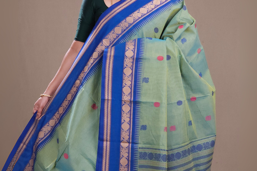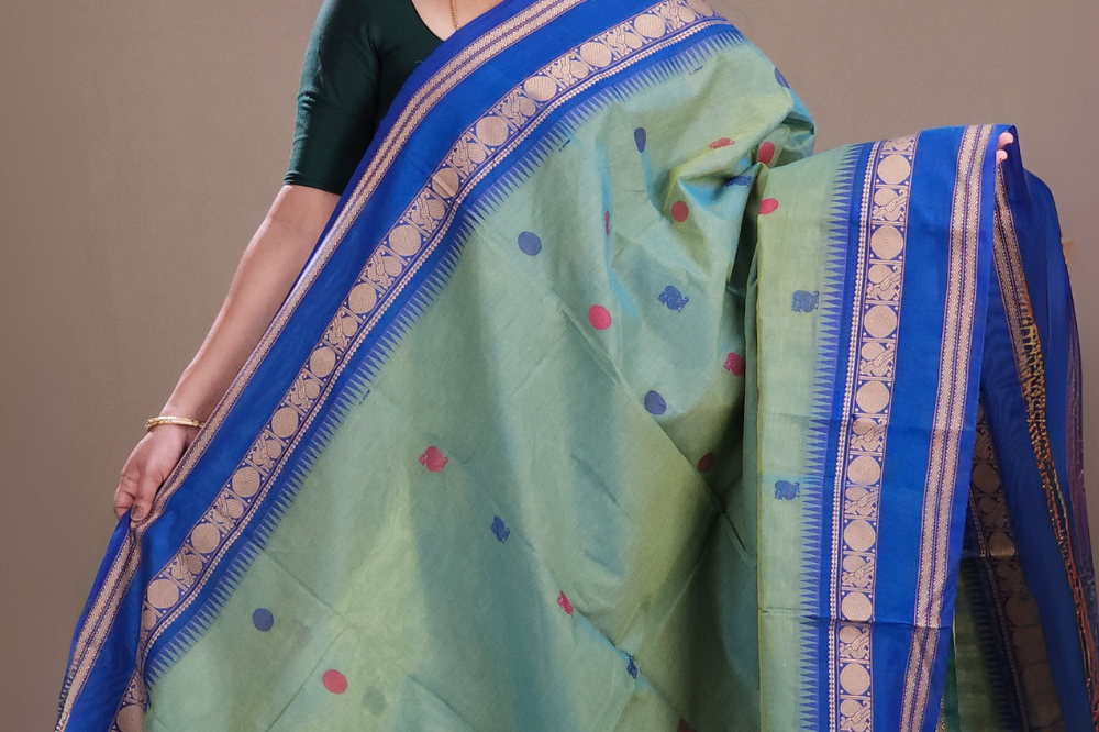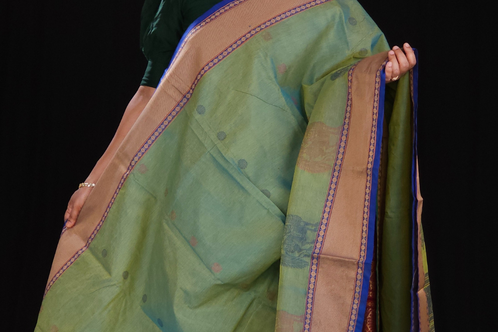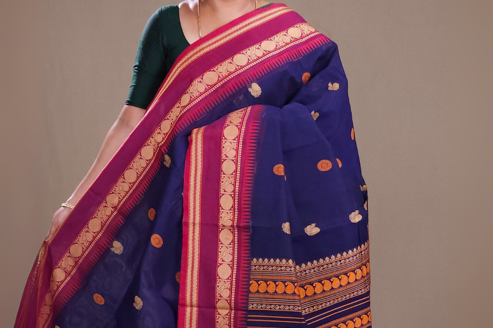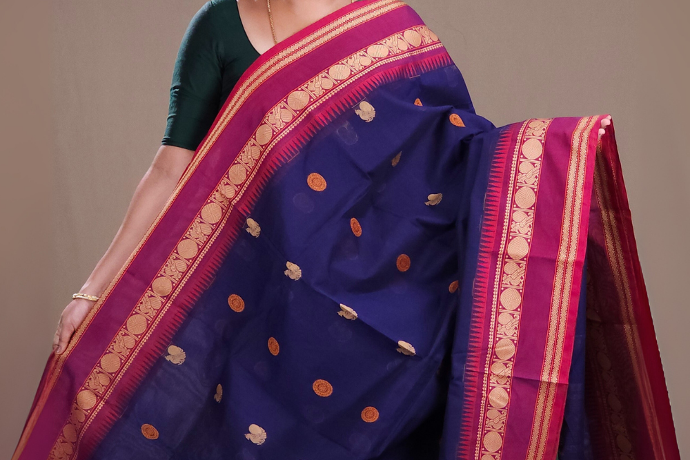 Prussian Blue and Purple Kanjeevaram Cotton Saree