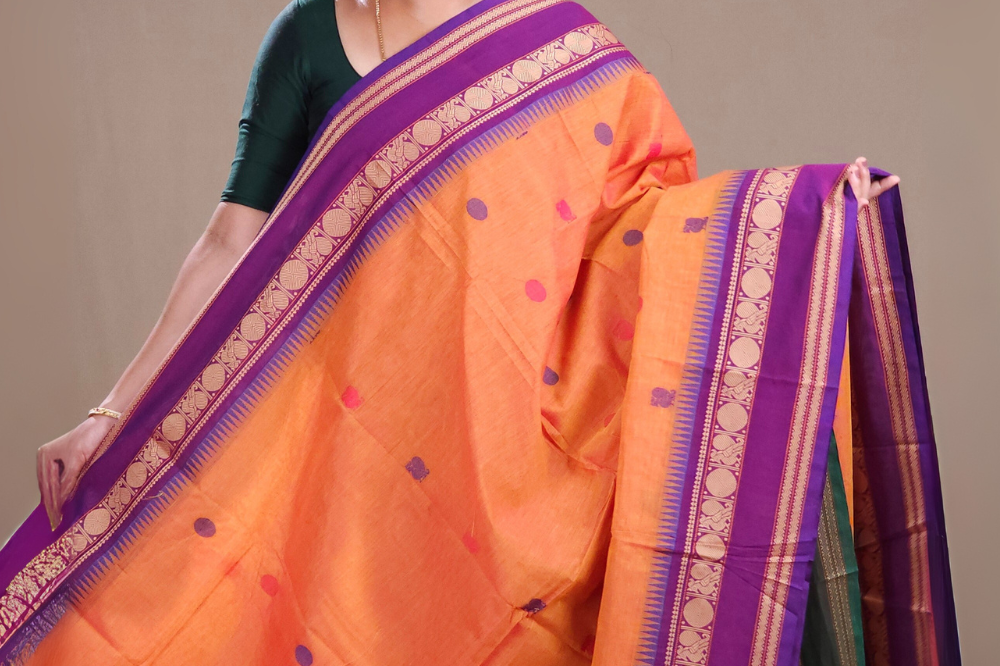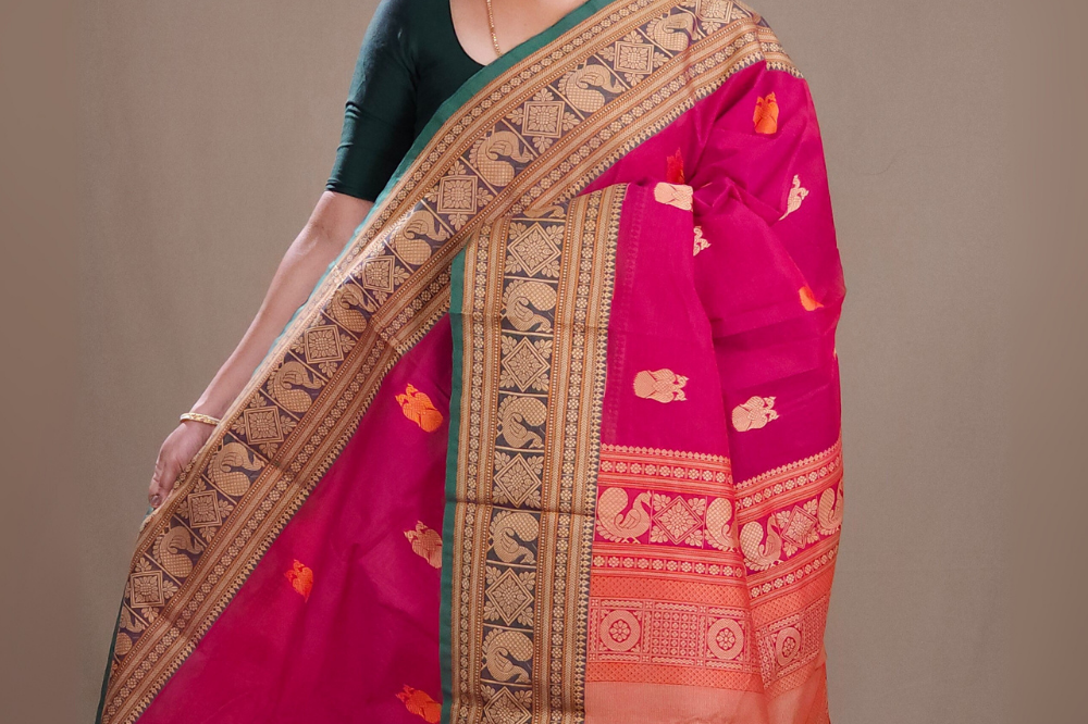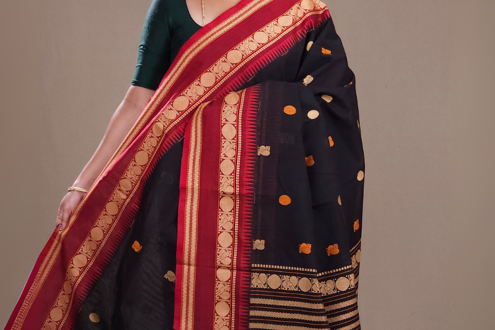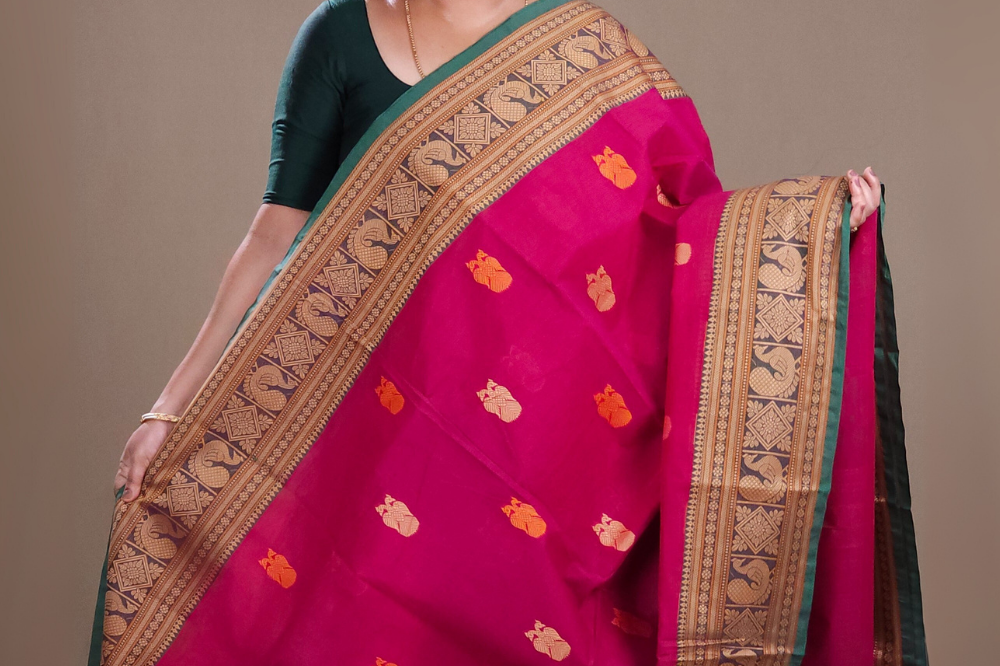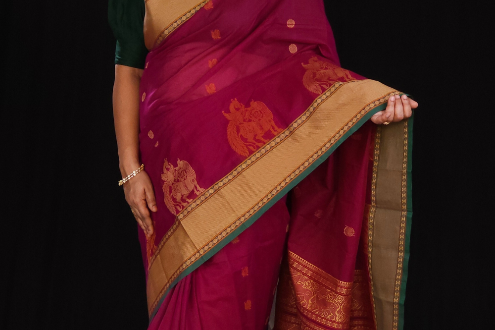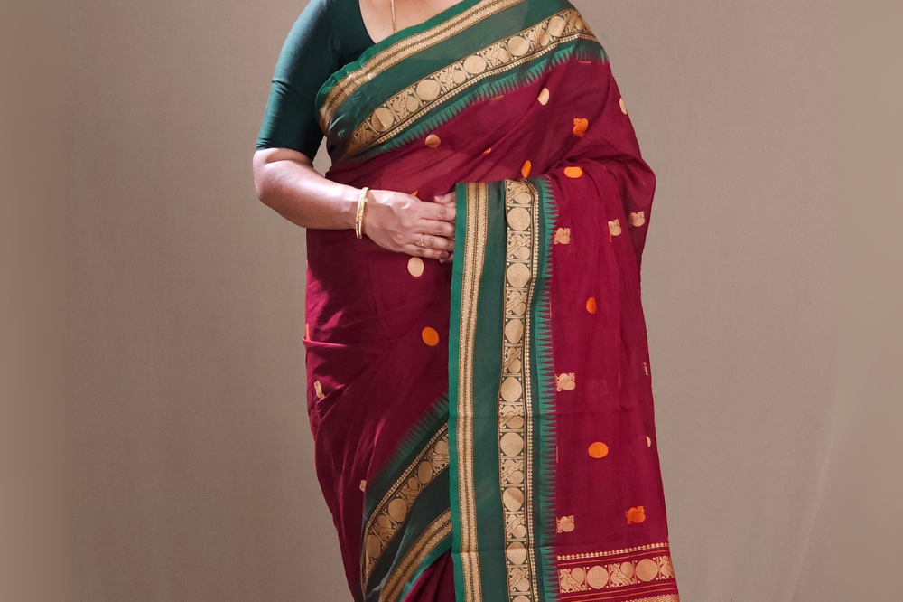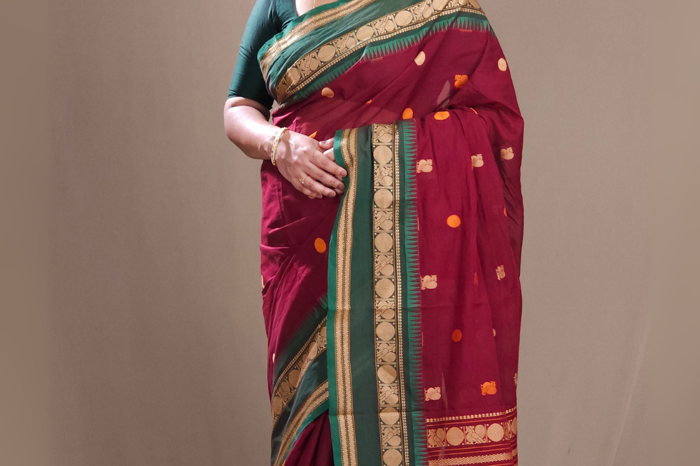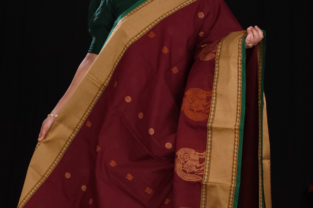 Dark Maroon and Green Kanjeevaram Cotton Saree