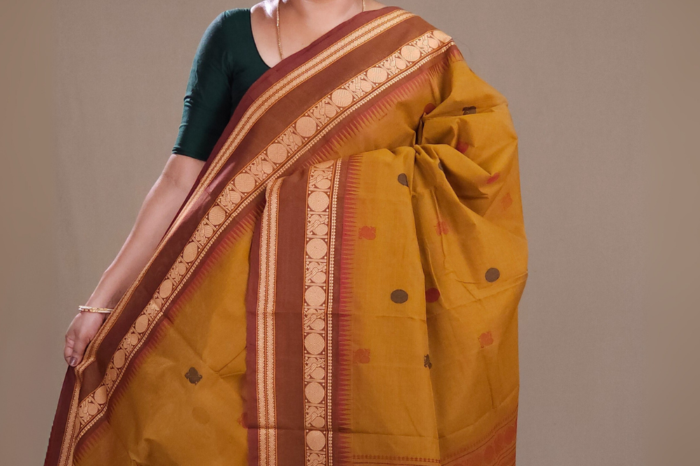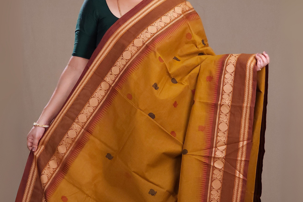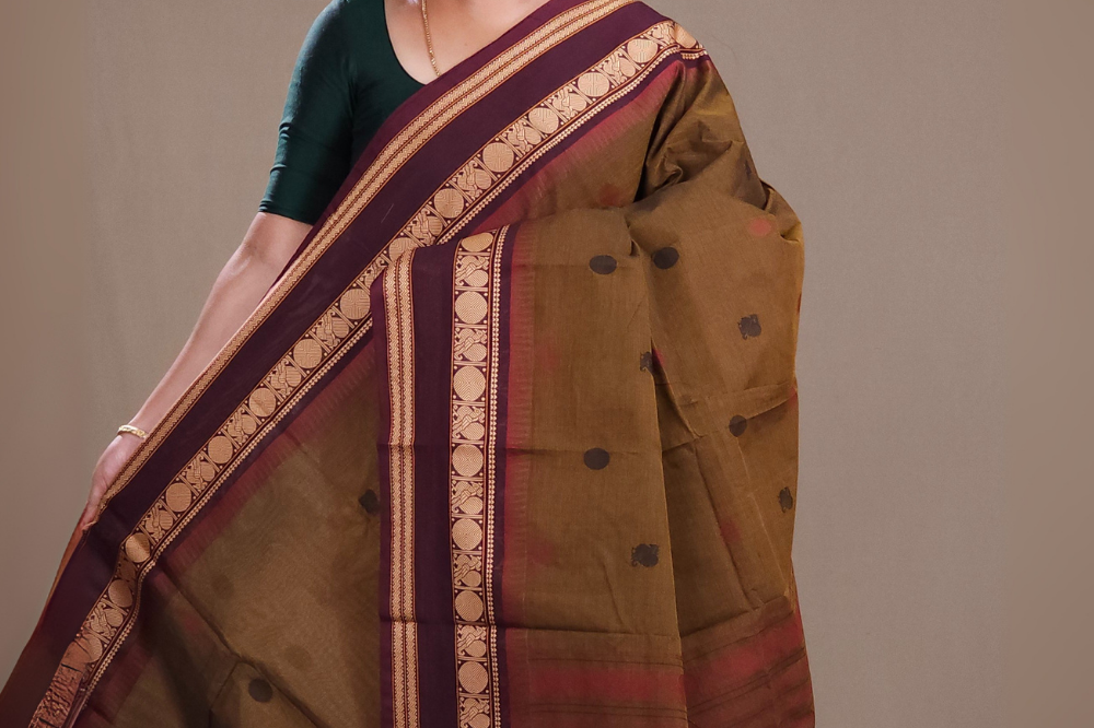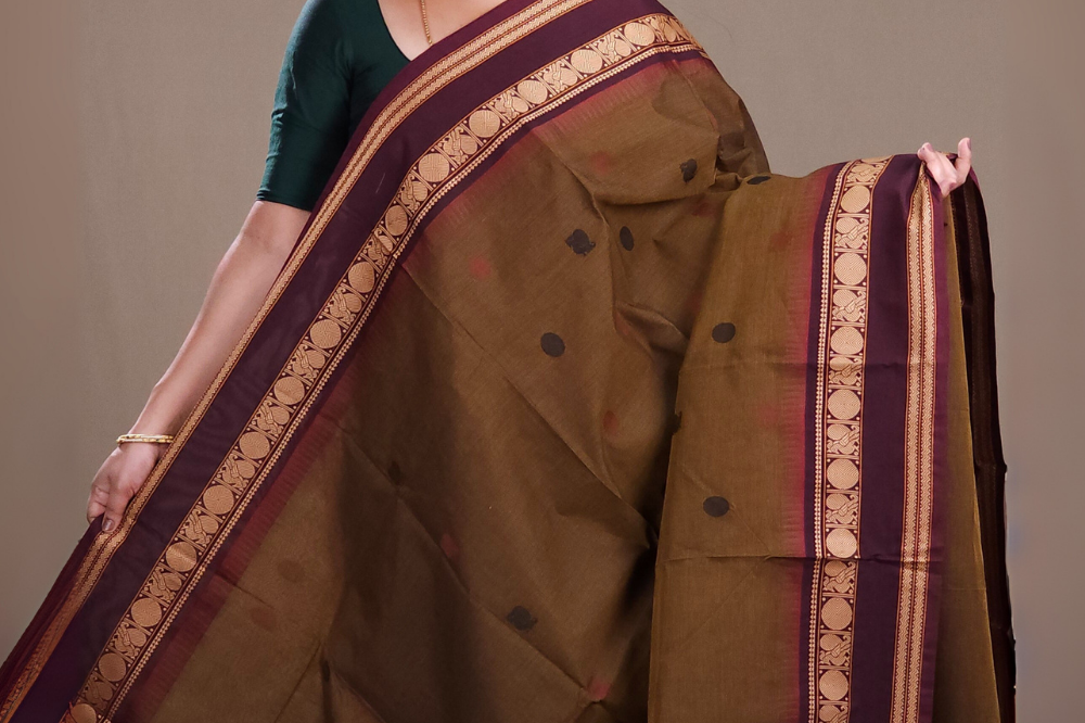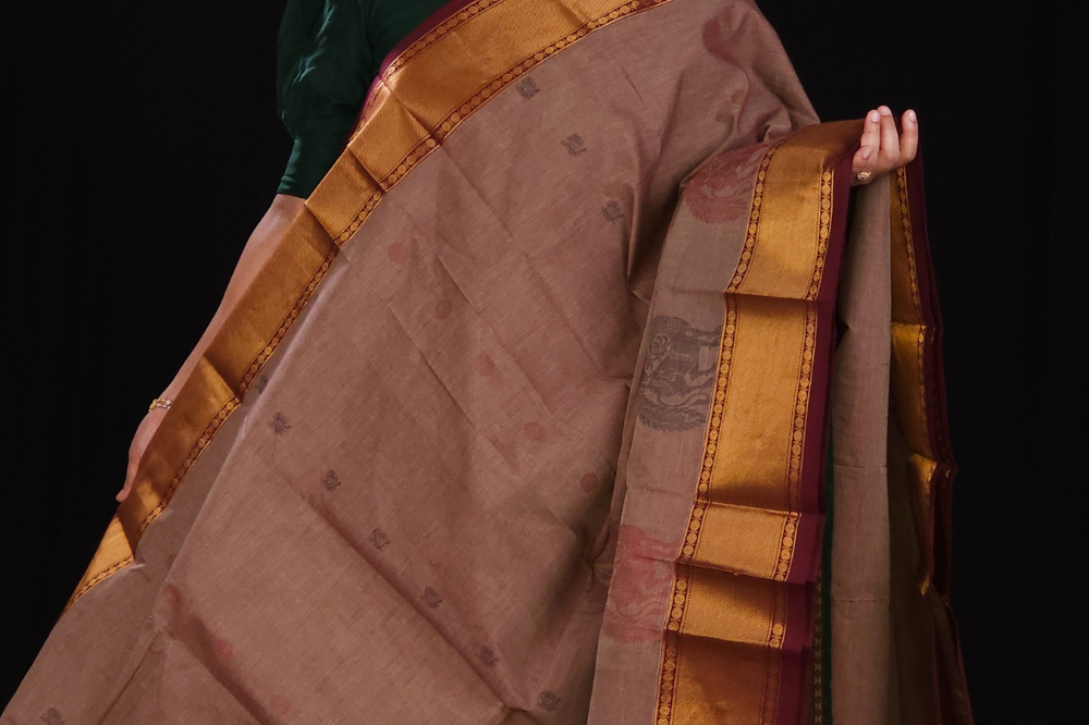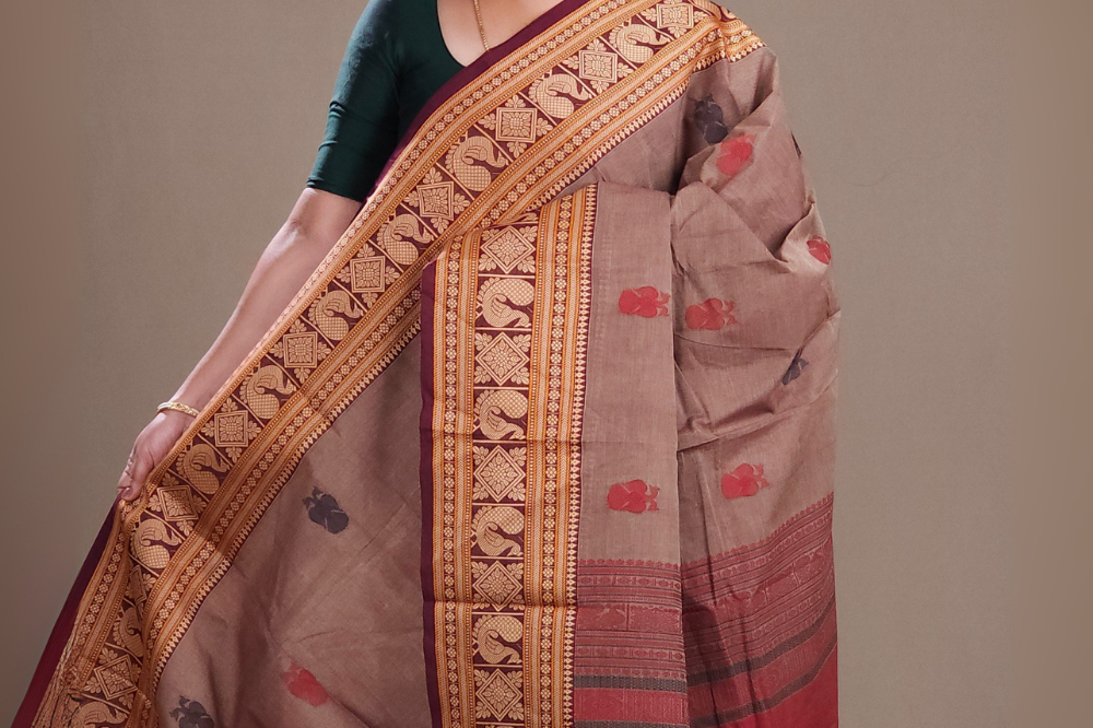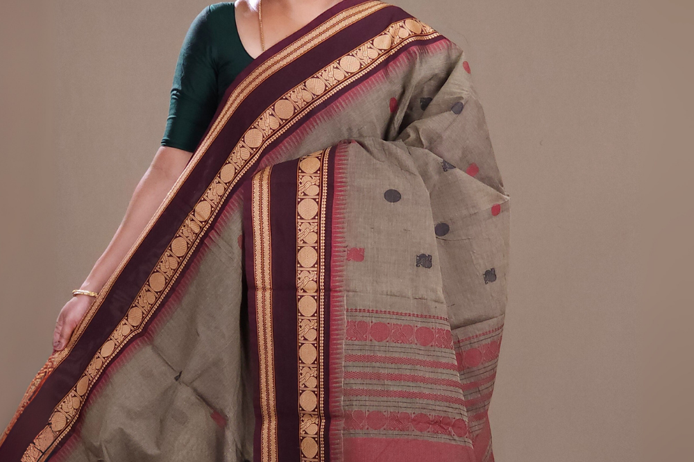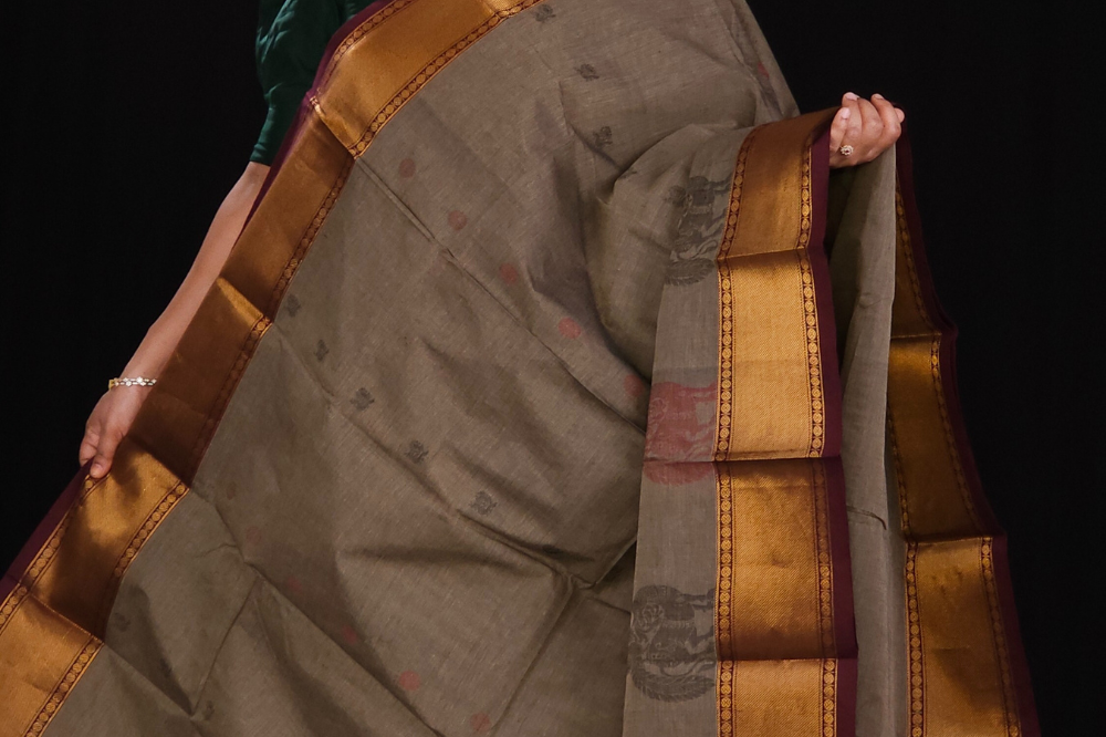 Grey and Coffee Brown Kanjeevaram Cotton Saree