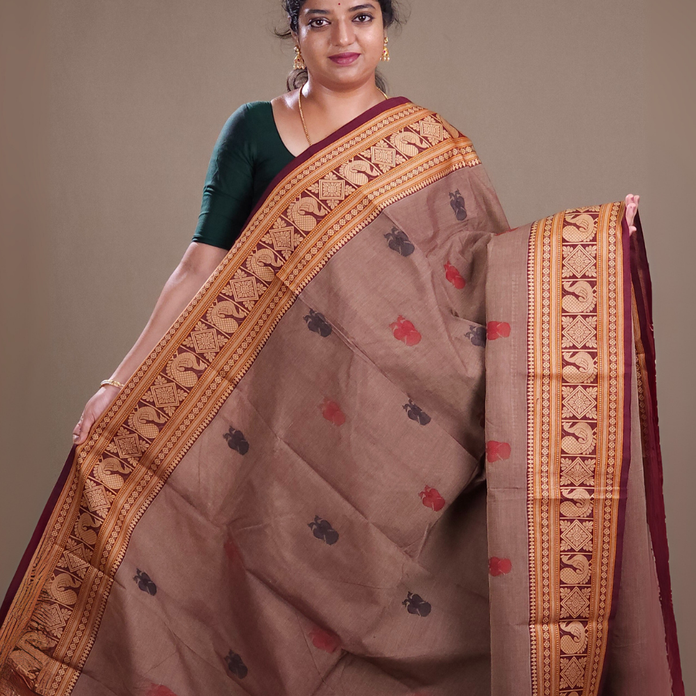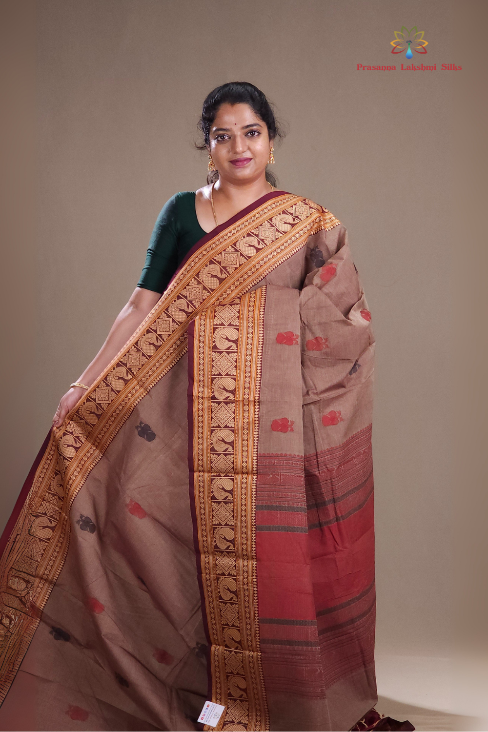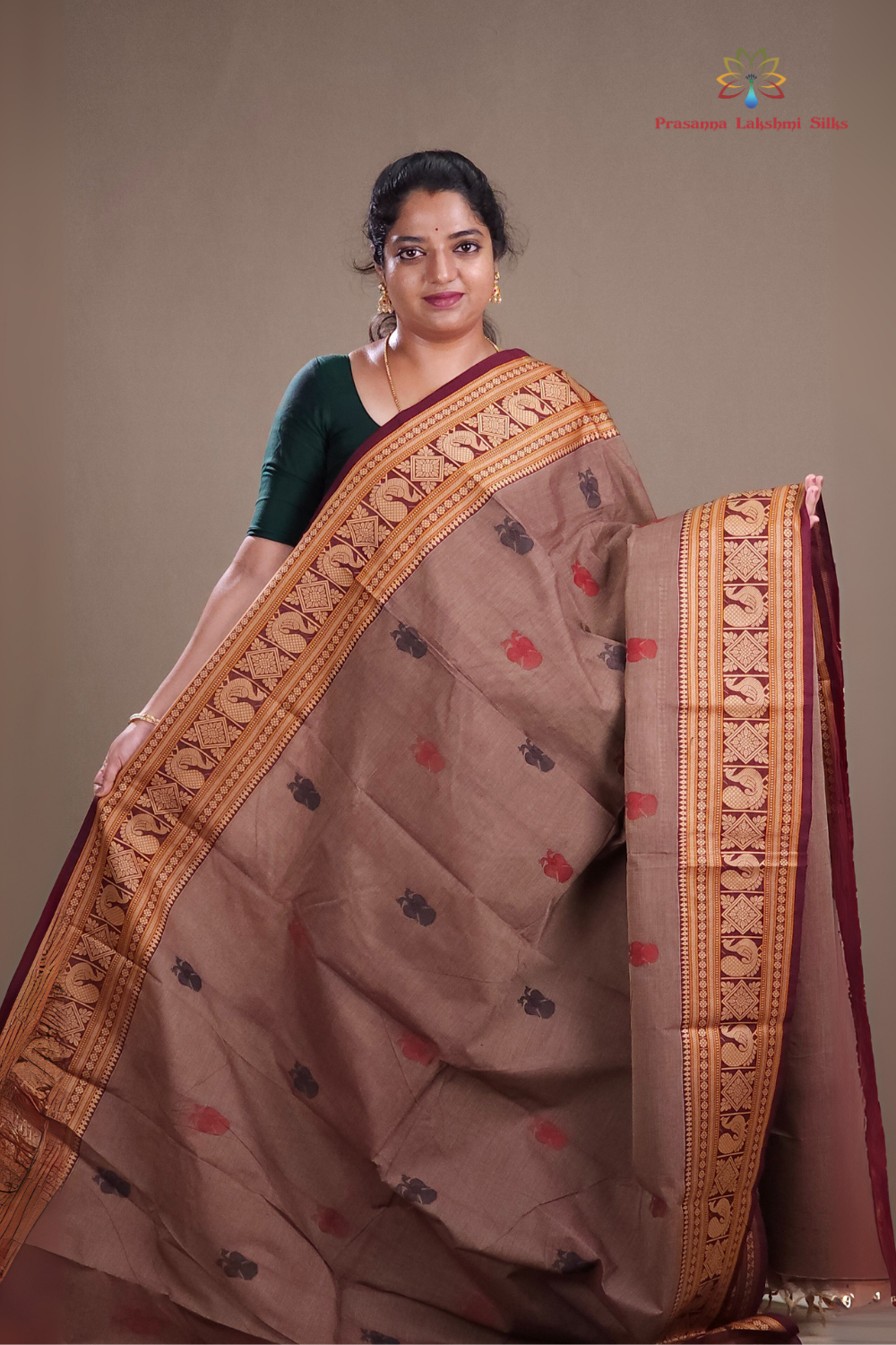 Light Mauve and Maroon kanjeevaram cotton Saree