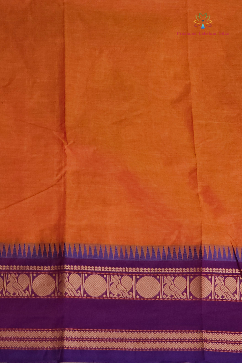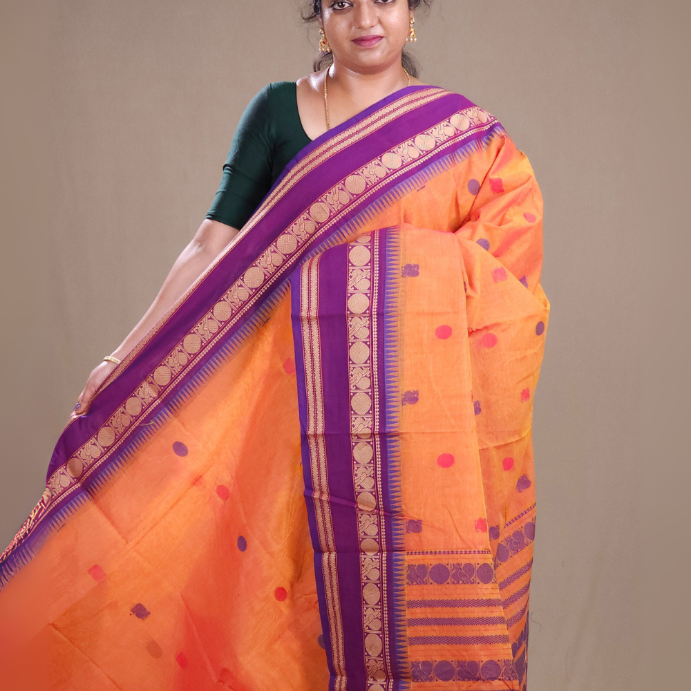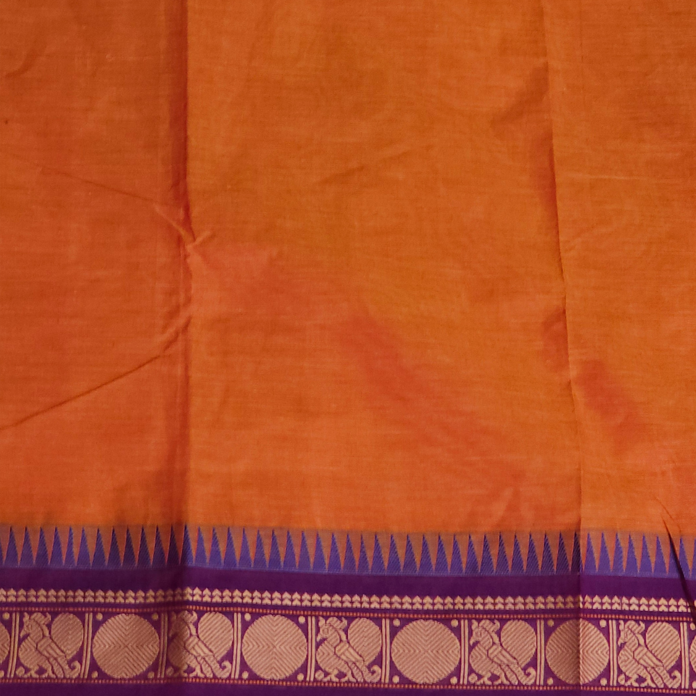 Orangish Yellow and Violet kanjeevaram cotton Saree