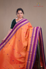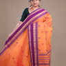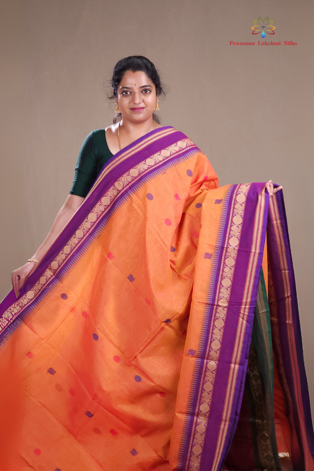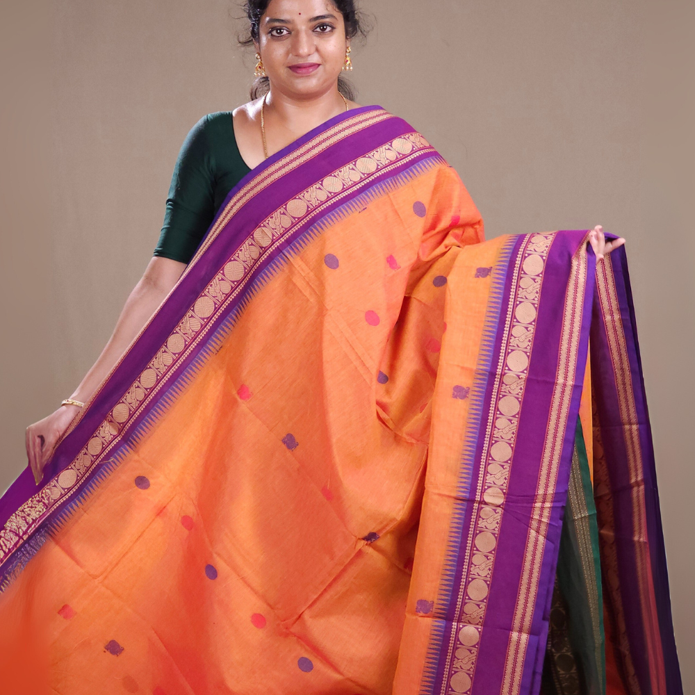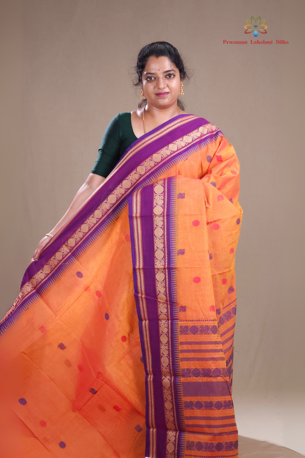 Orangish Yellow and Violet kanjeevaram cotton Saree