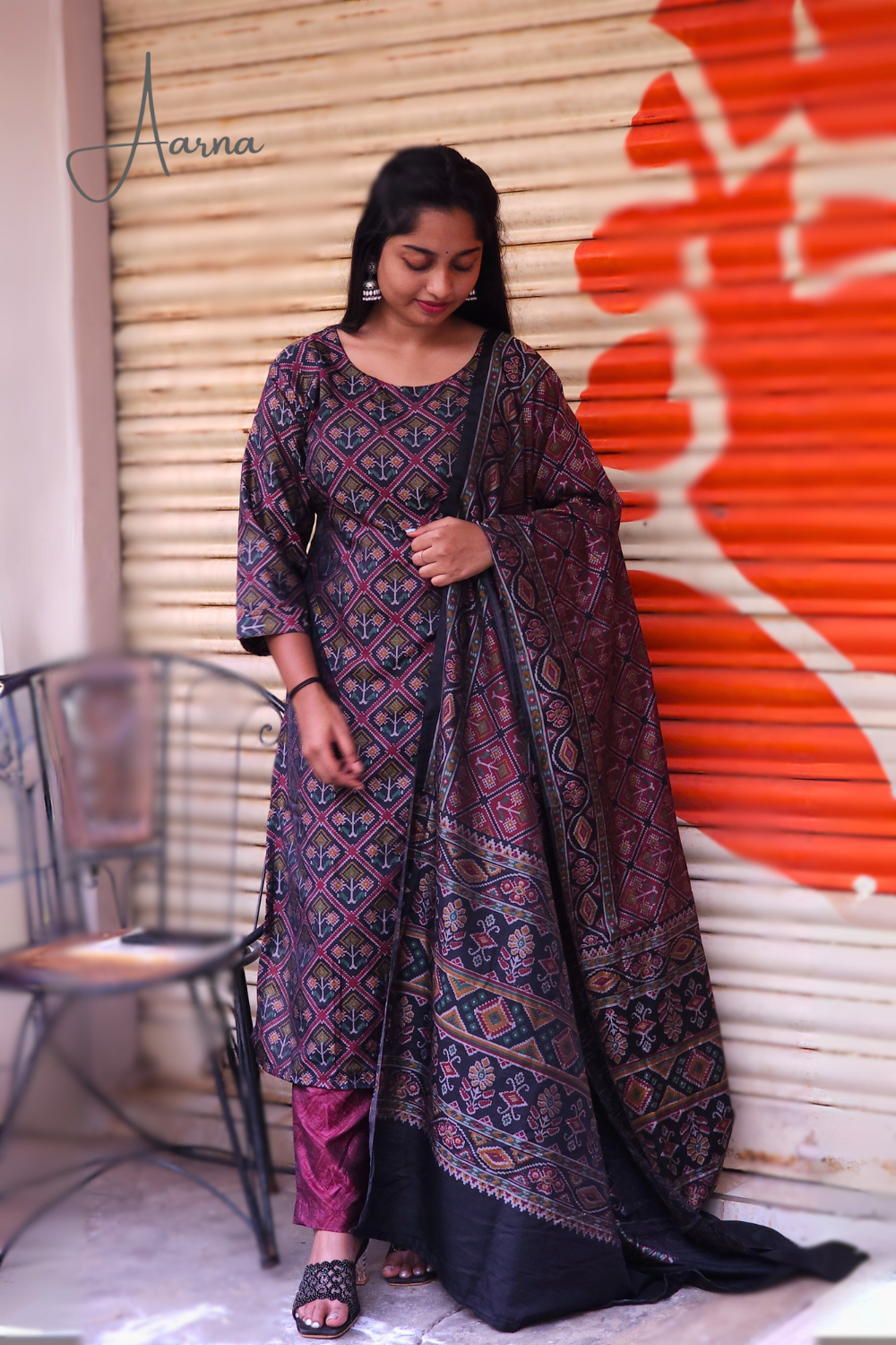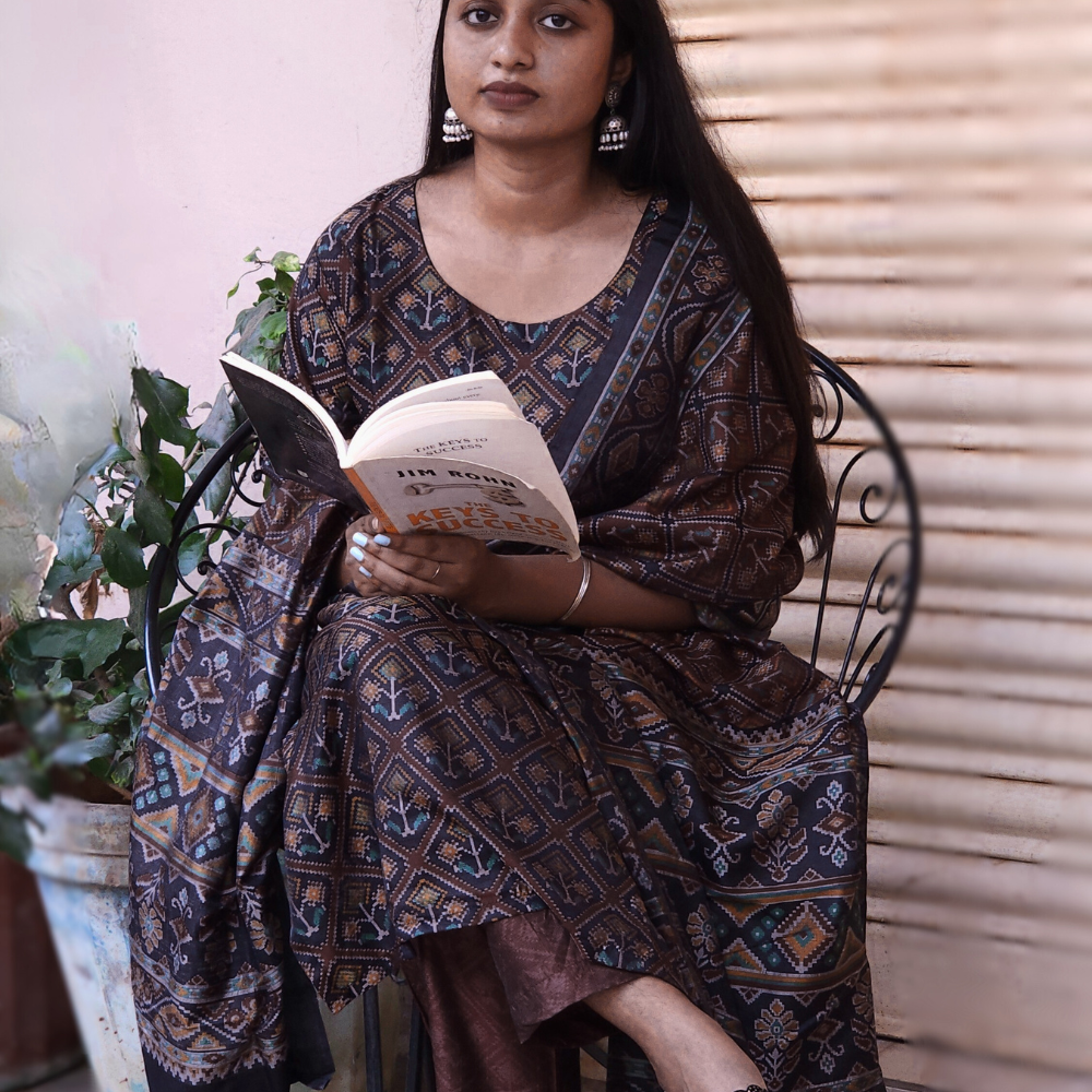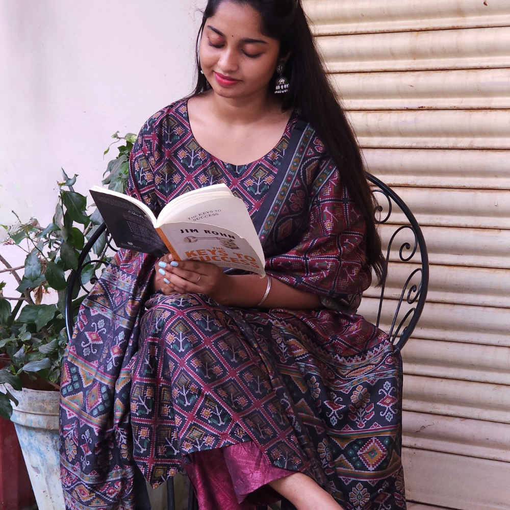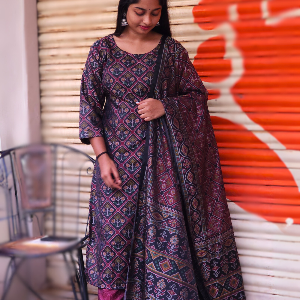 Elevate your everyday look with our Rayon Silk Suit Sets, featuring allover vibrant Patola digital prints. Designed with a contrast straight-cut pant and a matching Patola print dupatta, this set brings tradition and comfort together effortlessly.