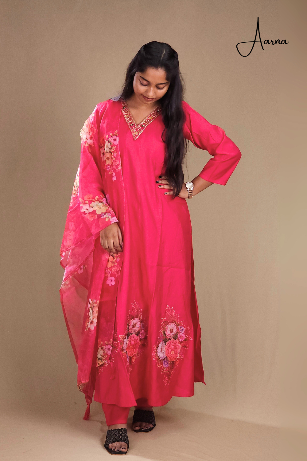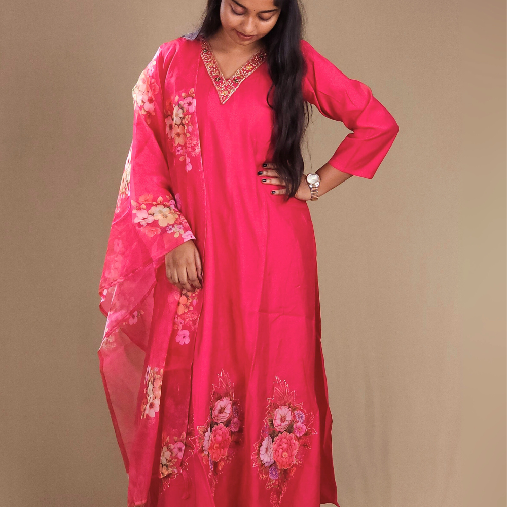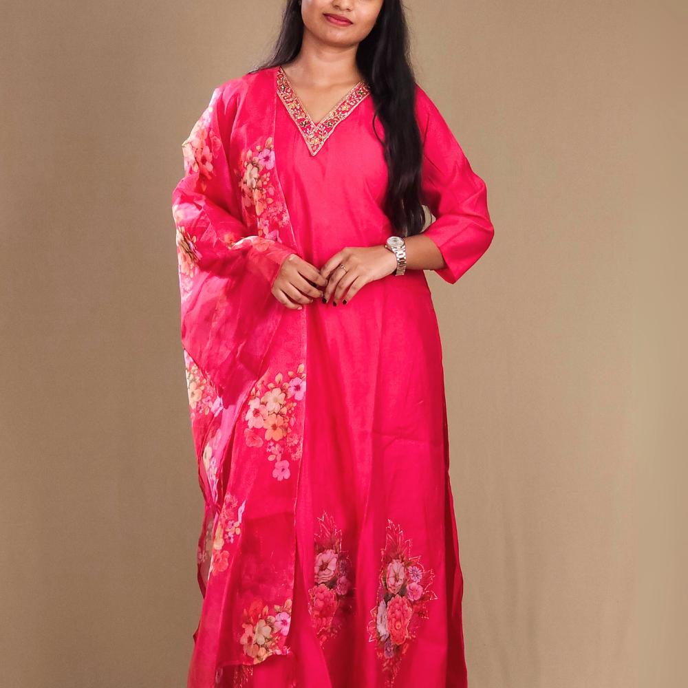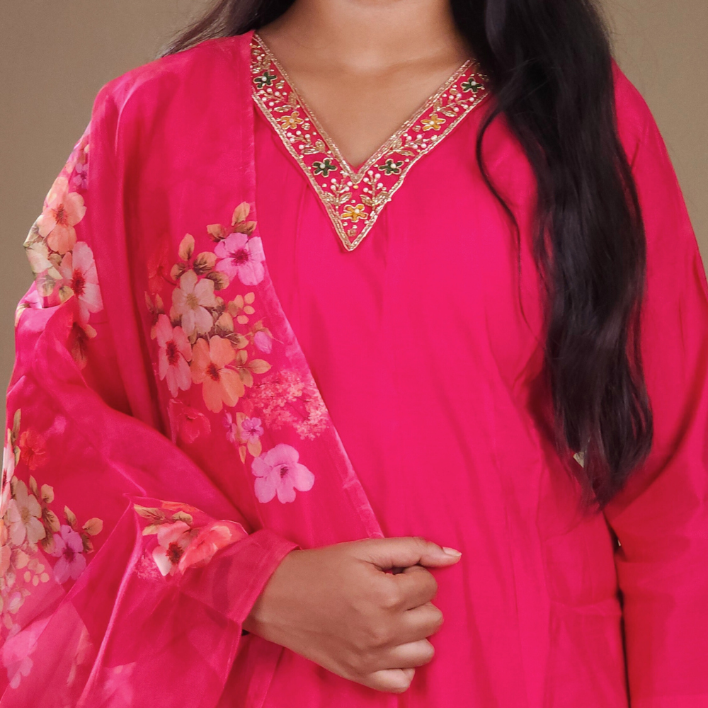 Bright Pink Mul Chanderi Suit