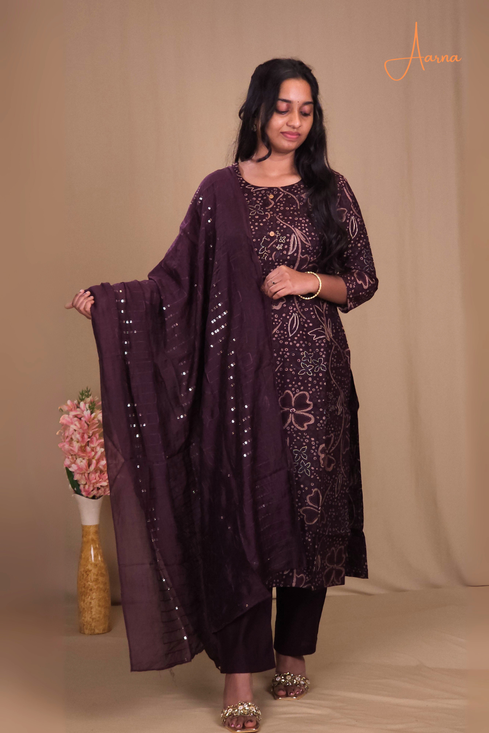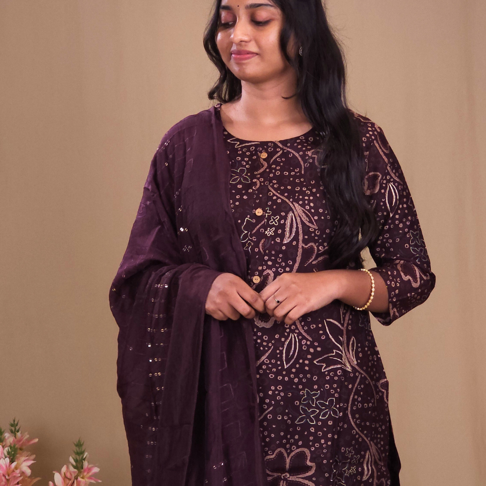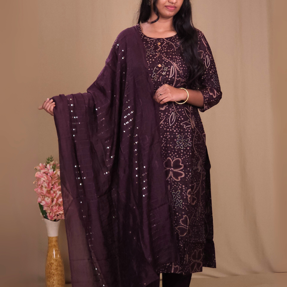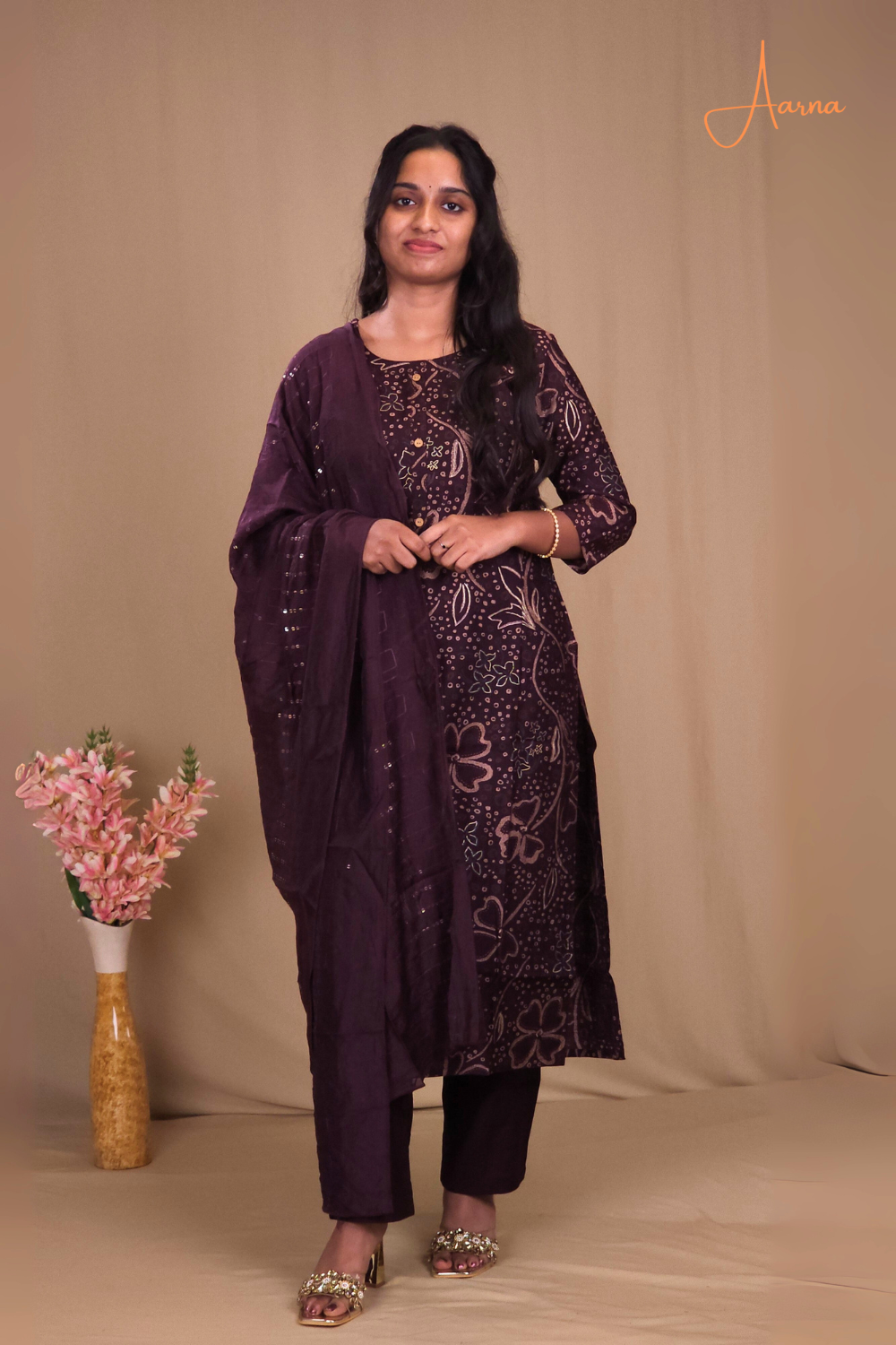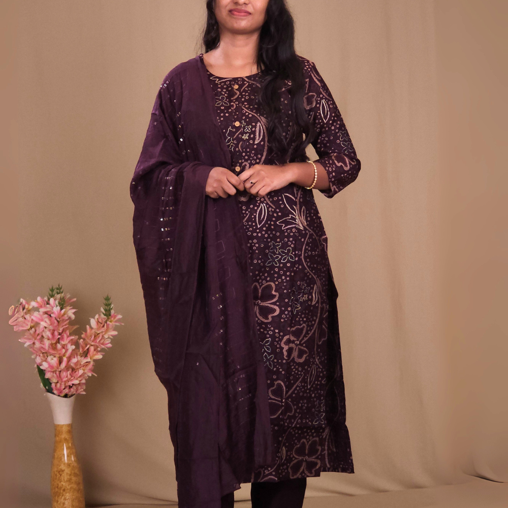 Elevate your style with our Rayon cotton suit set allover floral digital prints round neckline straight-cut pant, paired with chiffon dupatta . Perfect for everyday elegance.