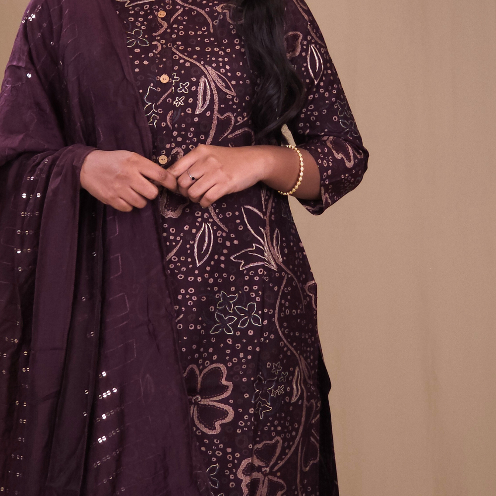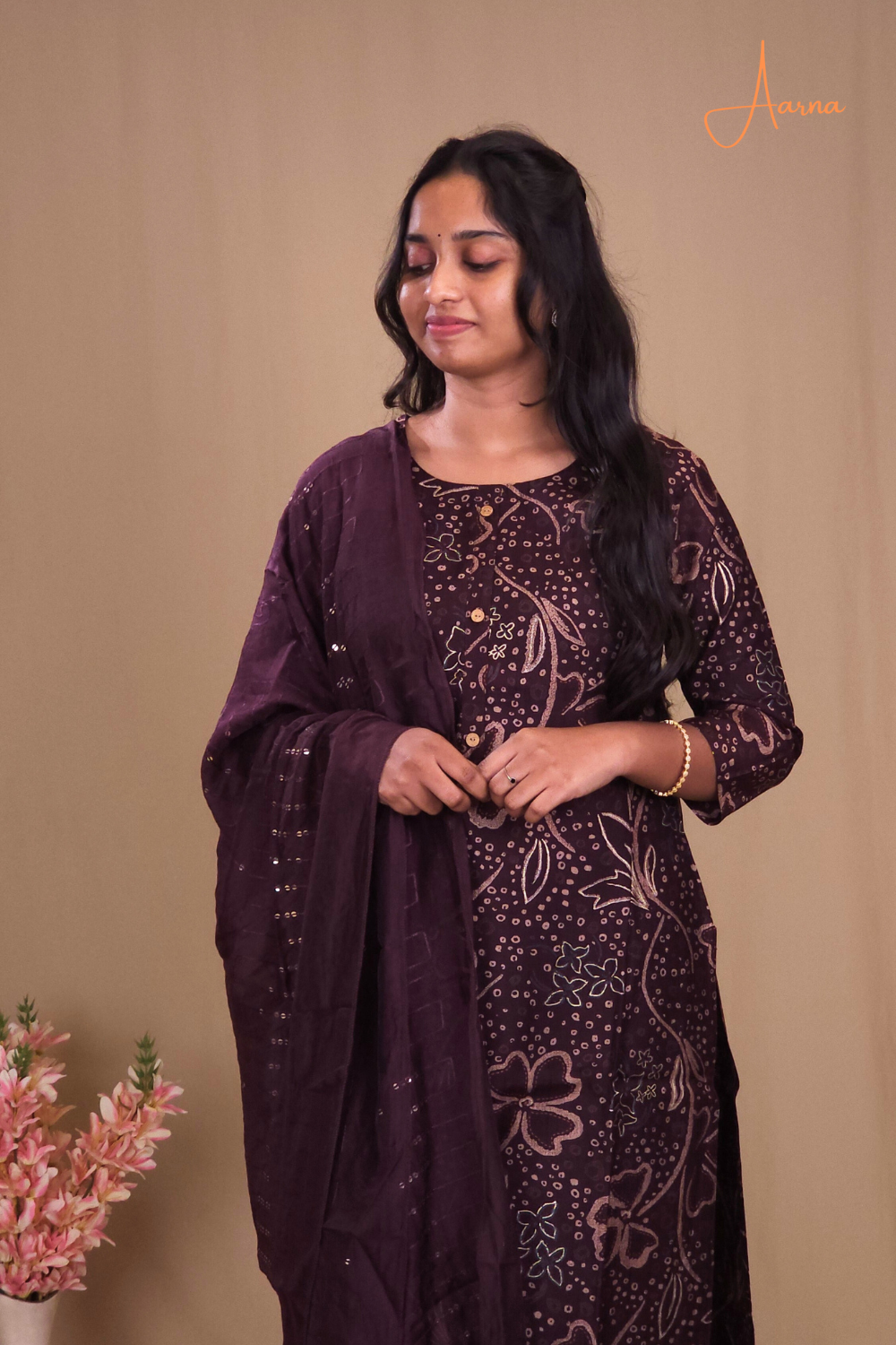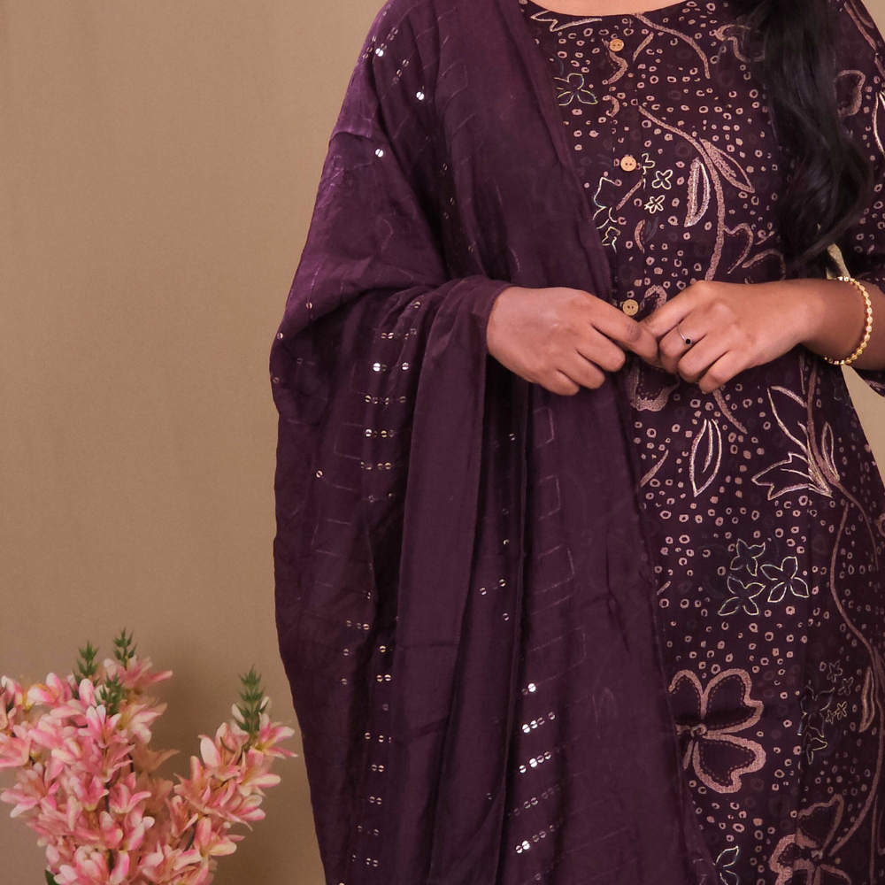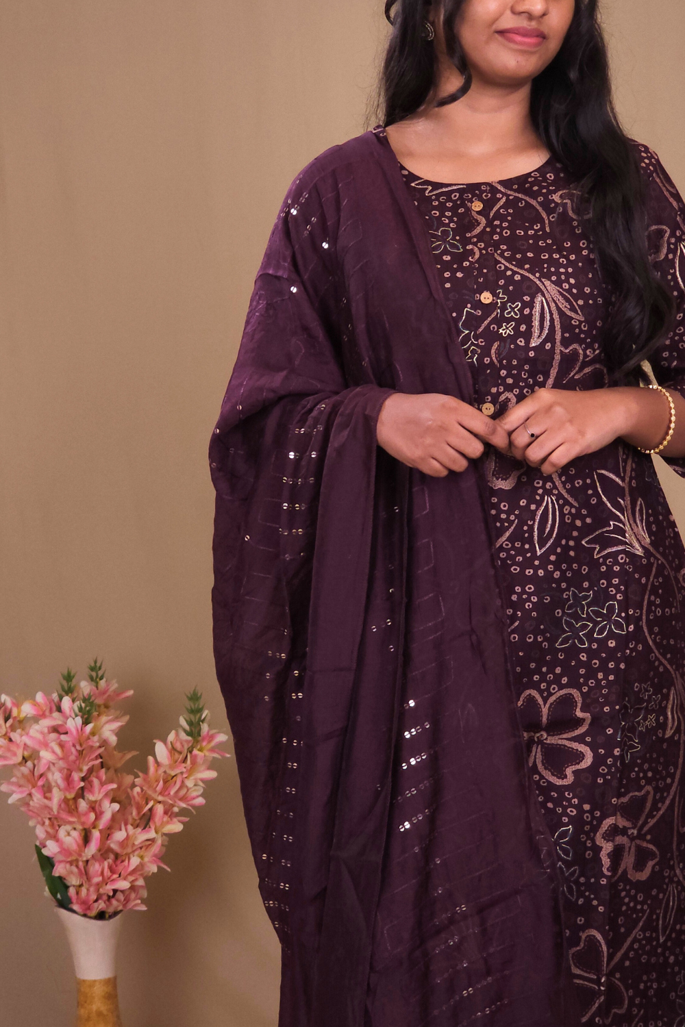 Elevate your style with our Rayon cotton suit set allover floral digital prints round neckline straight-cut pant, paired with chiffon dupatta . Perfect for everyday elegance.