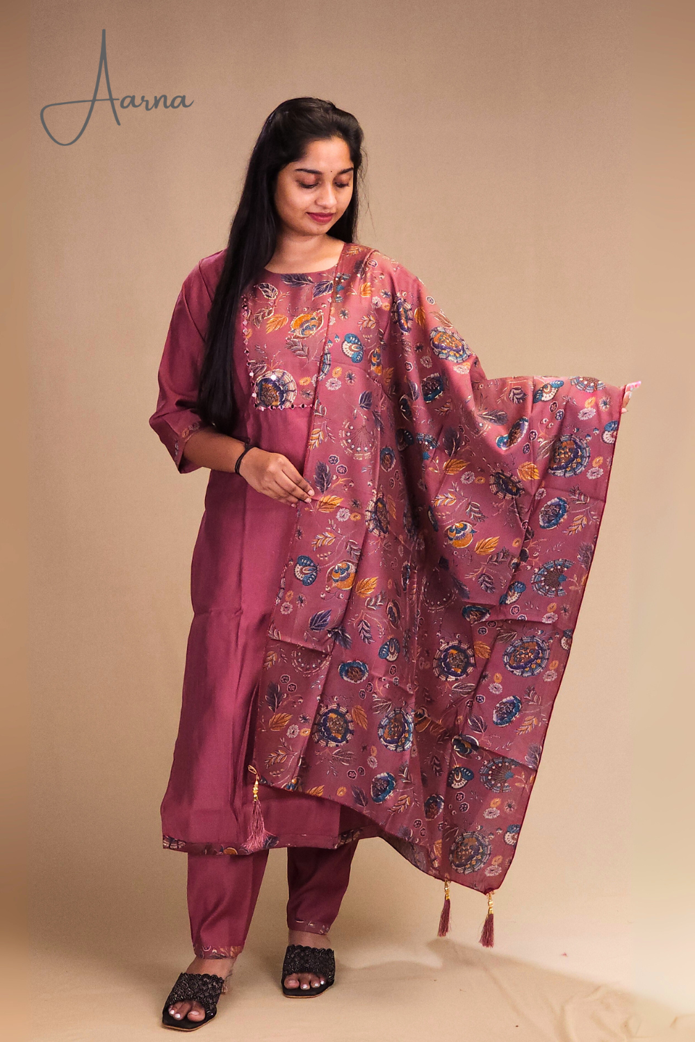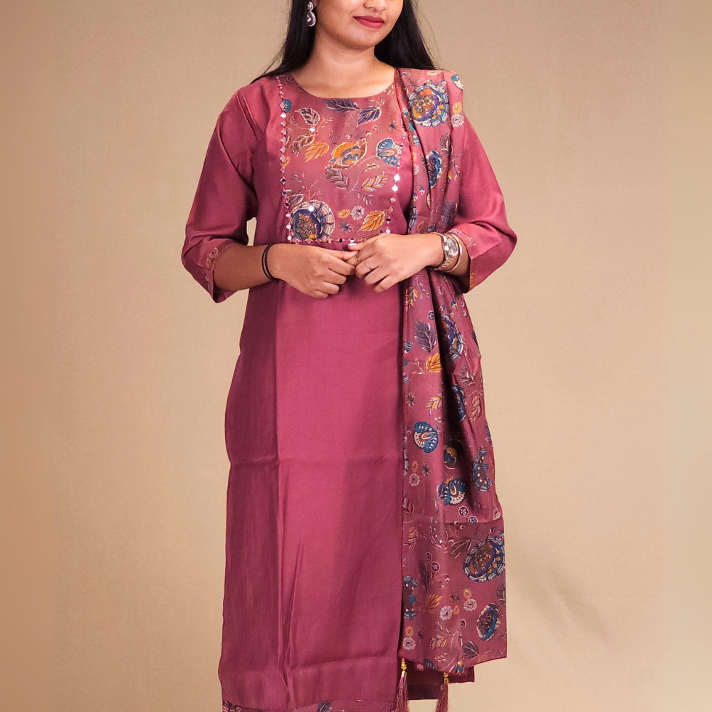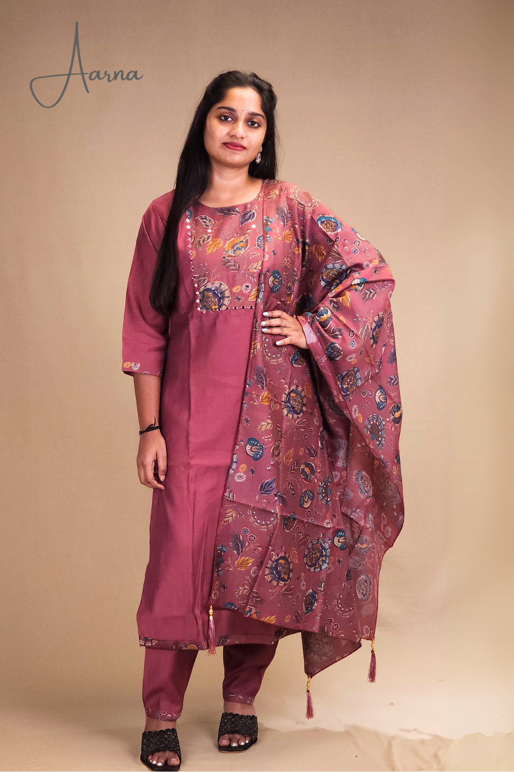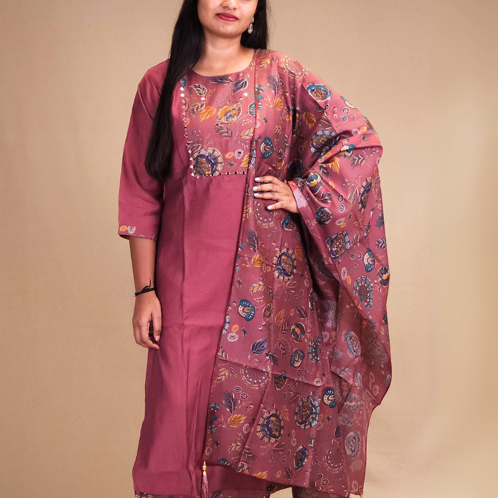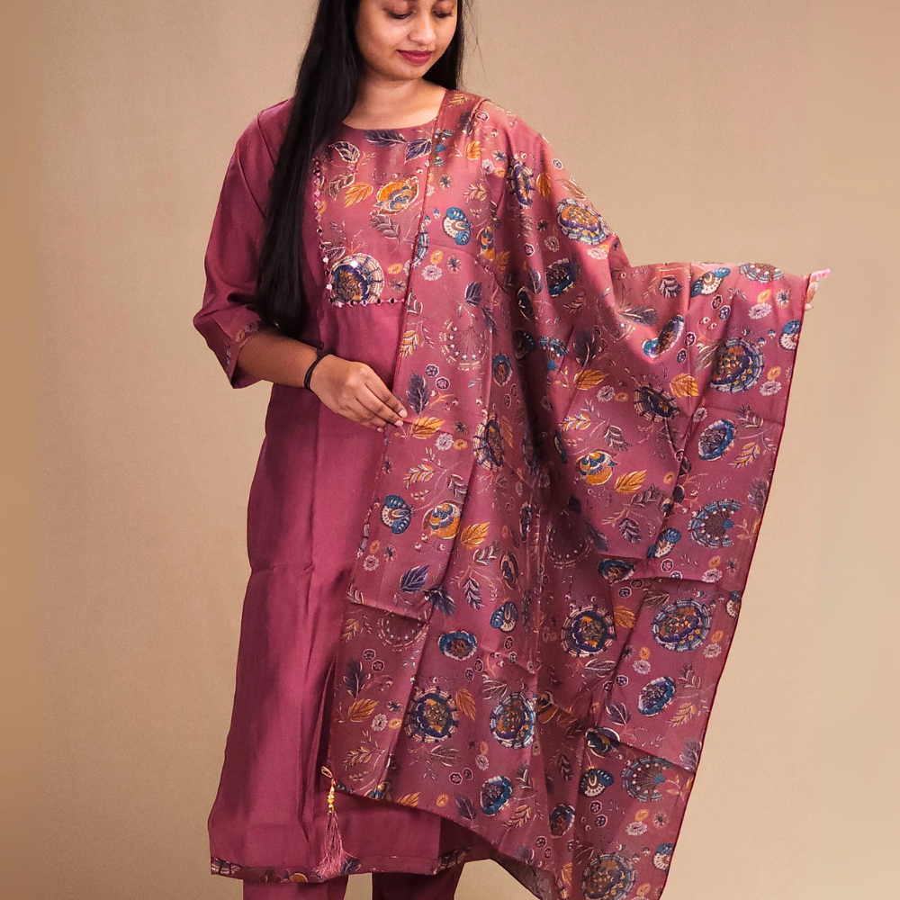 Elegant 3-Piece khadi Cotton Suit Set with digital prints on neckline and a straight-cut pant . Paired with a beautifully crafted dupatta, this ensemble offers comfort and sophistication for any occasion."