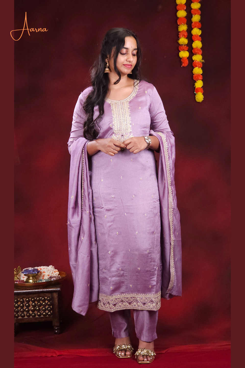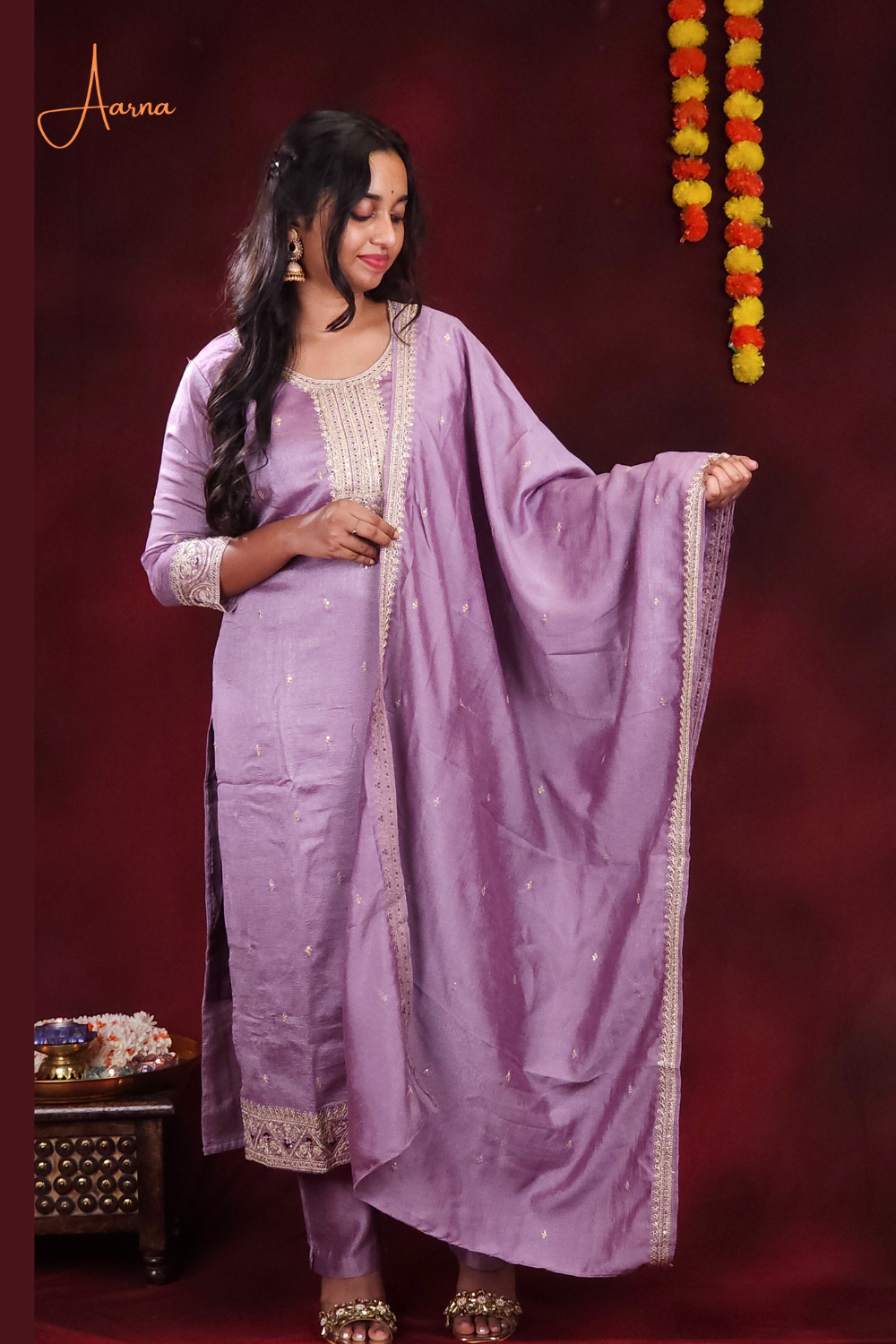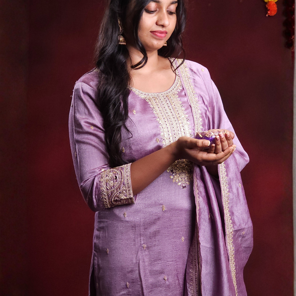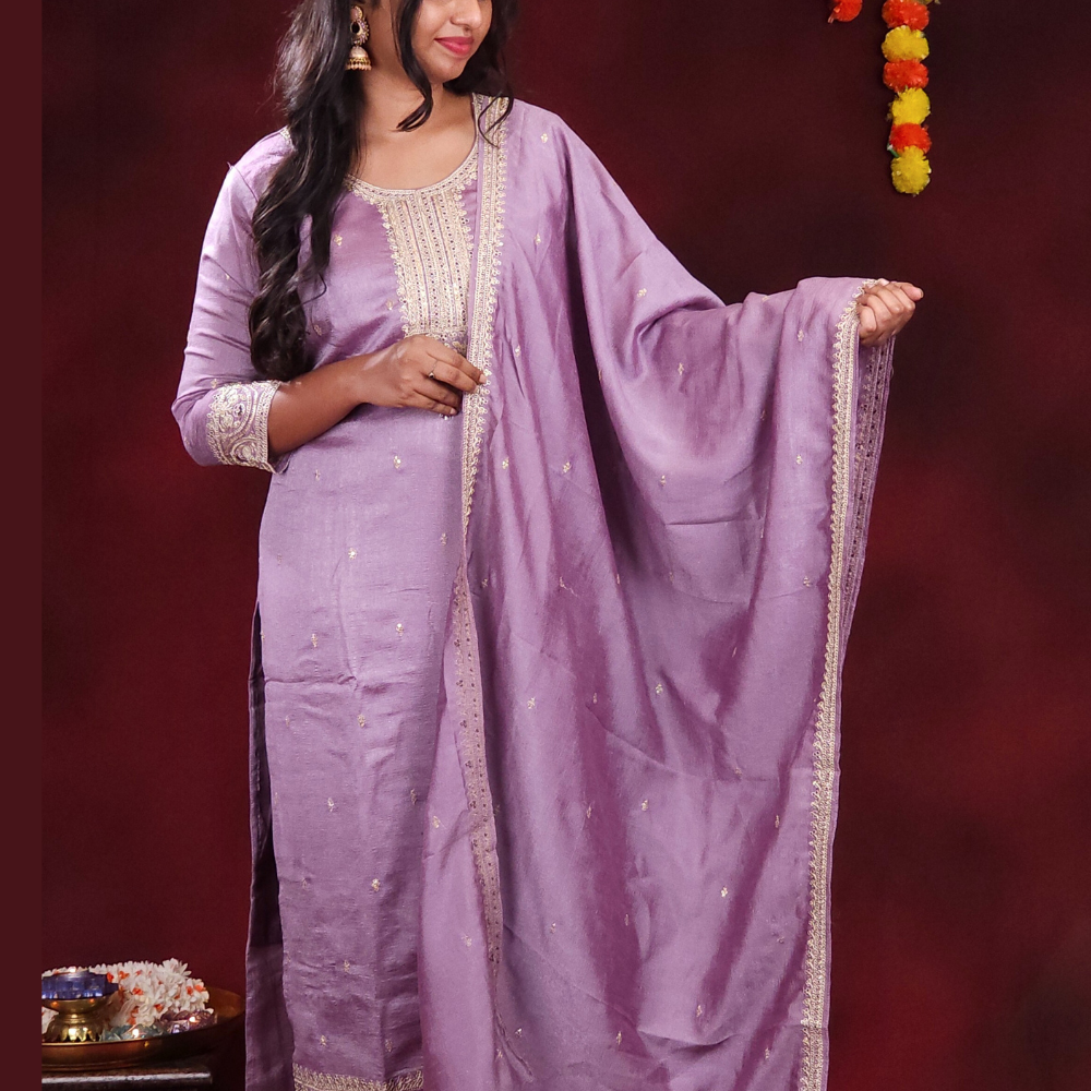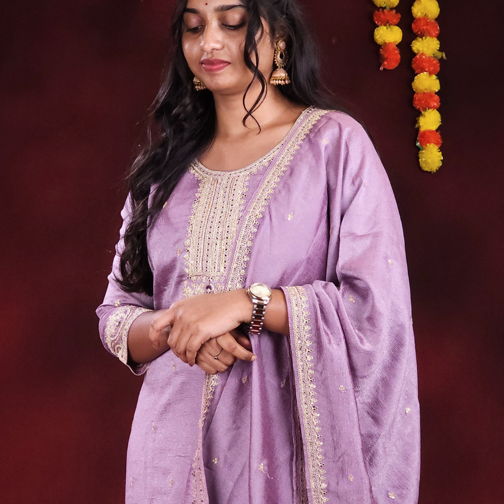 Lavender Chinnon silk 3 piece suit