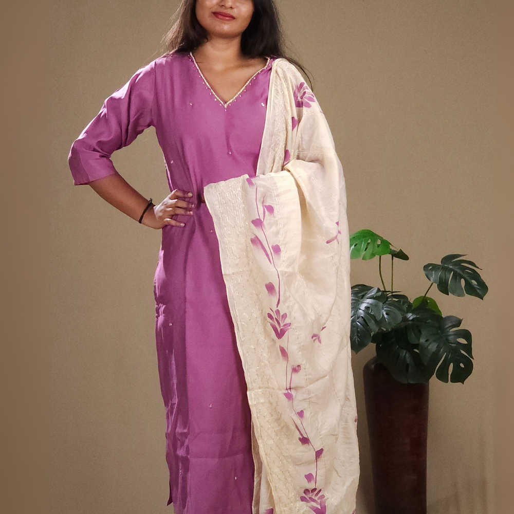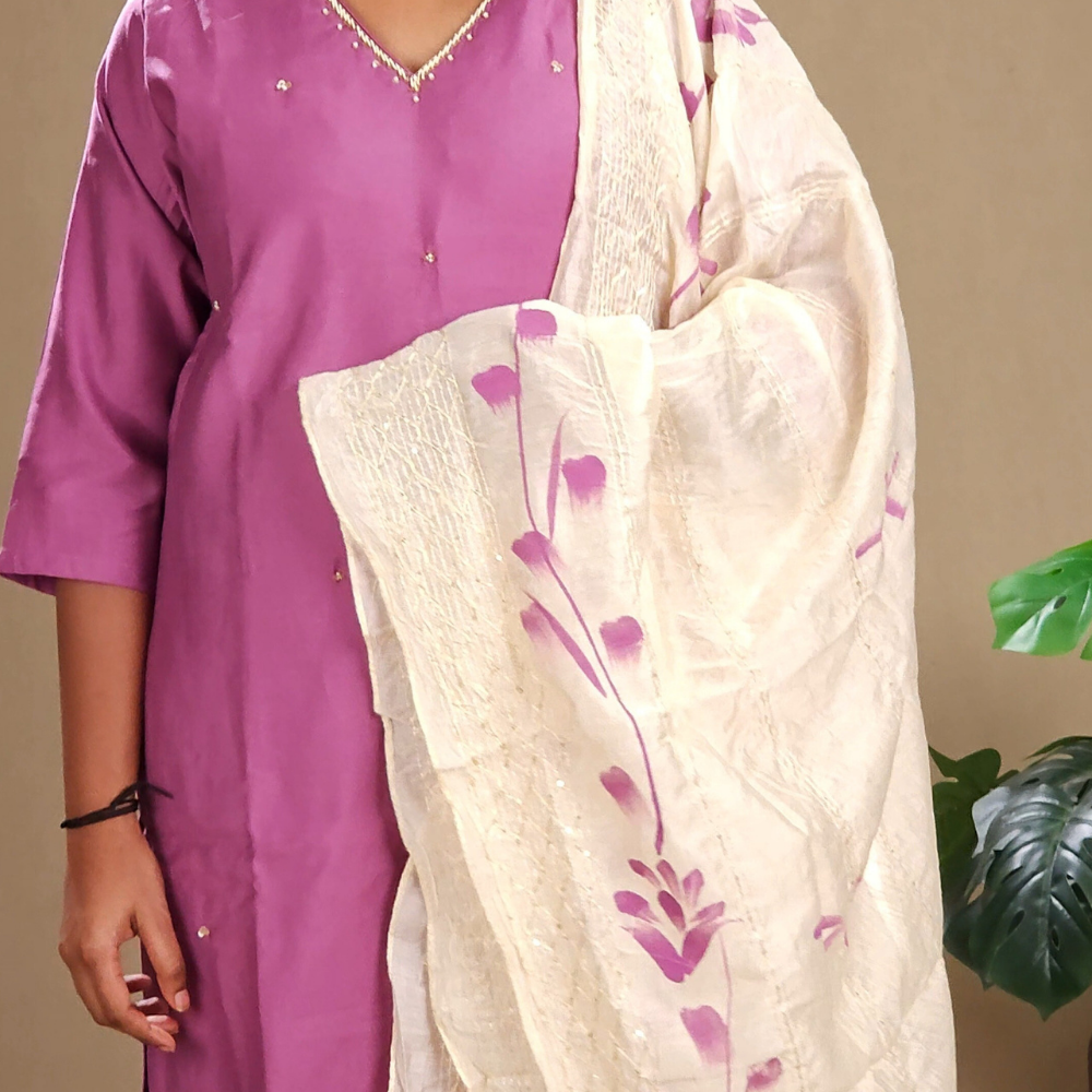 Lavender Ready to wear Chanderi Silk Suit