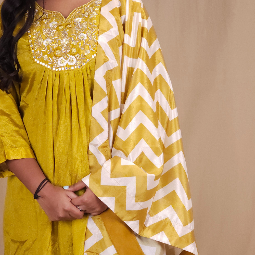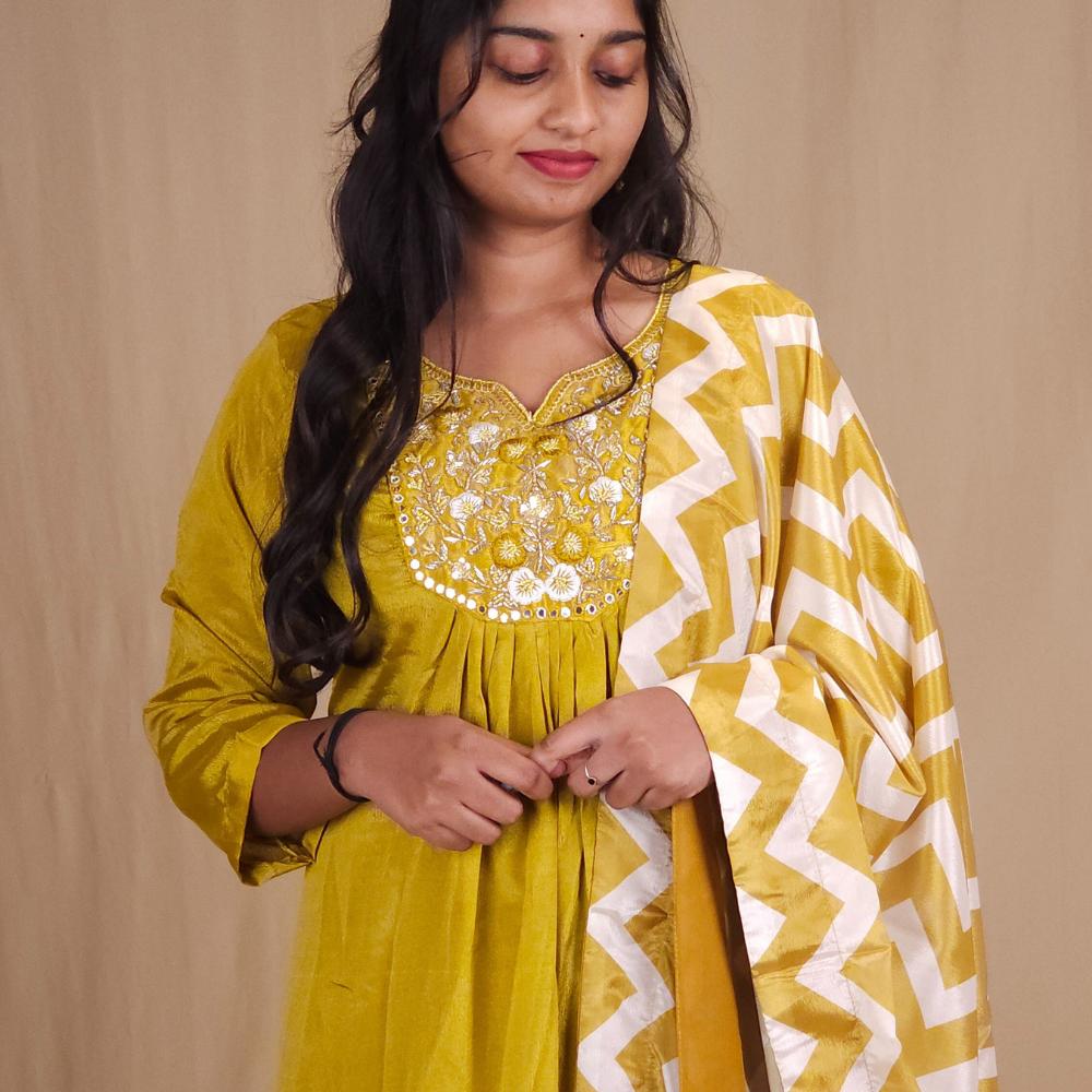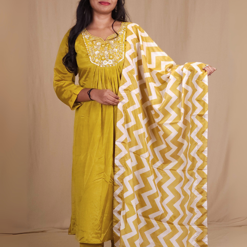 Olive Green Ready to wear Crepe Chiffon Suit
