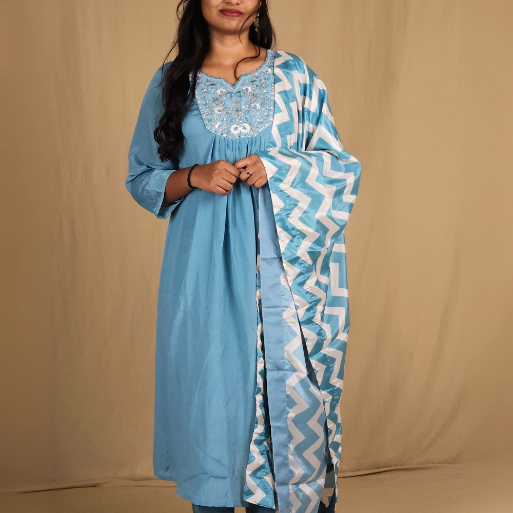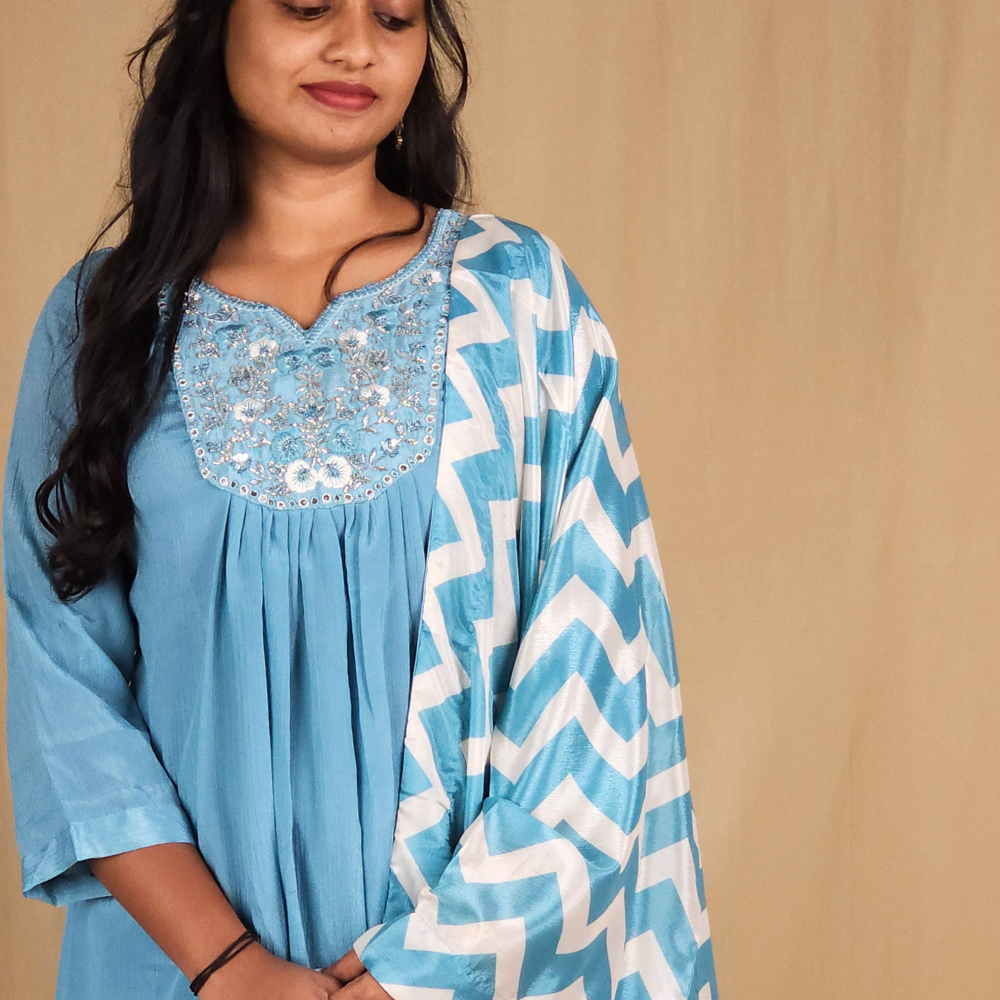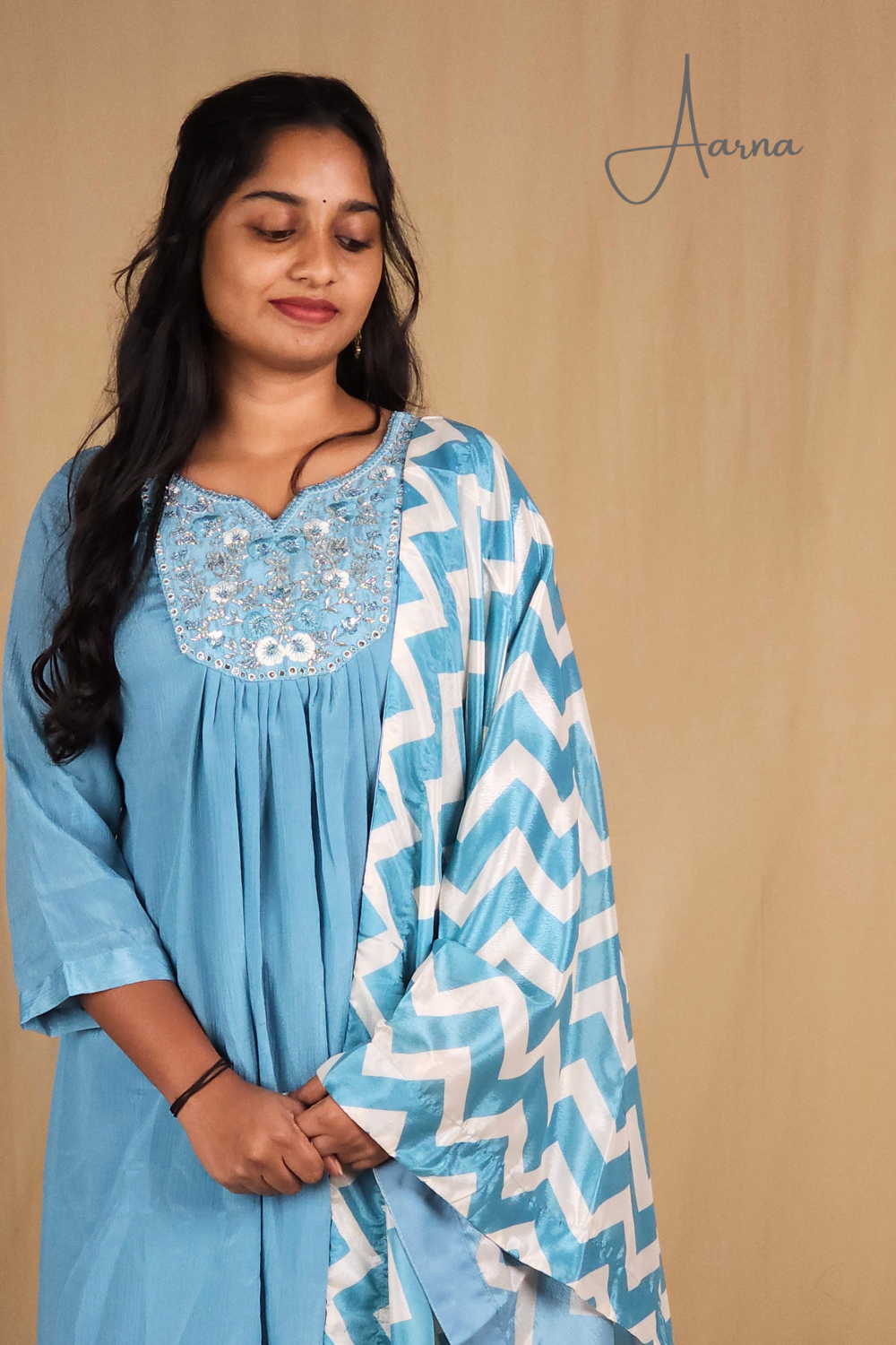 Sky Blue Ready to wear Crepe Chiffon Suit