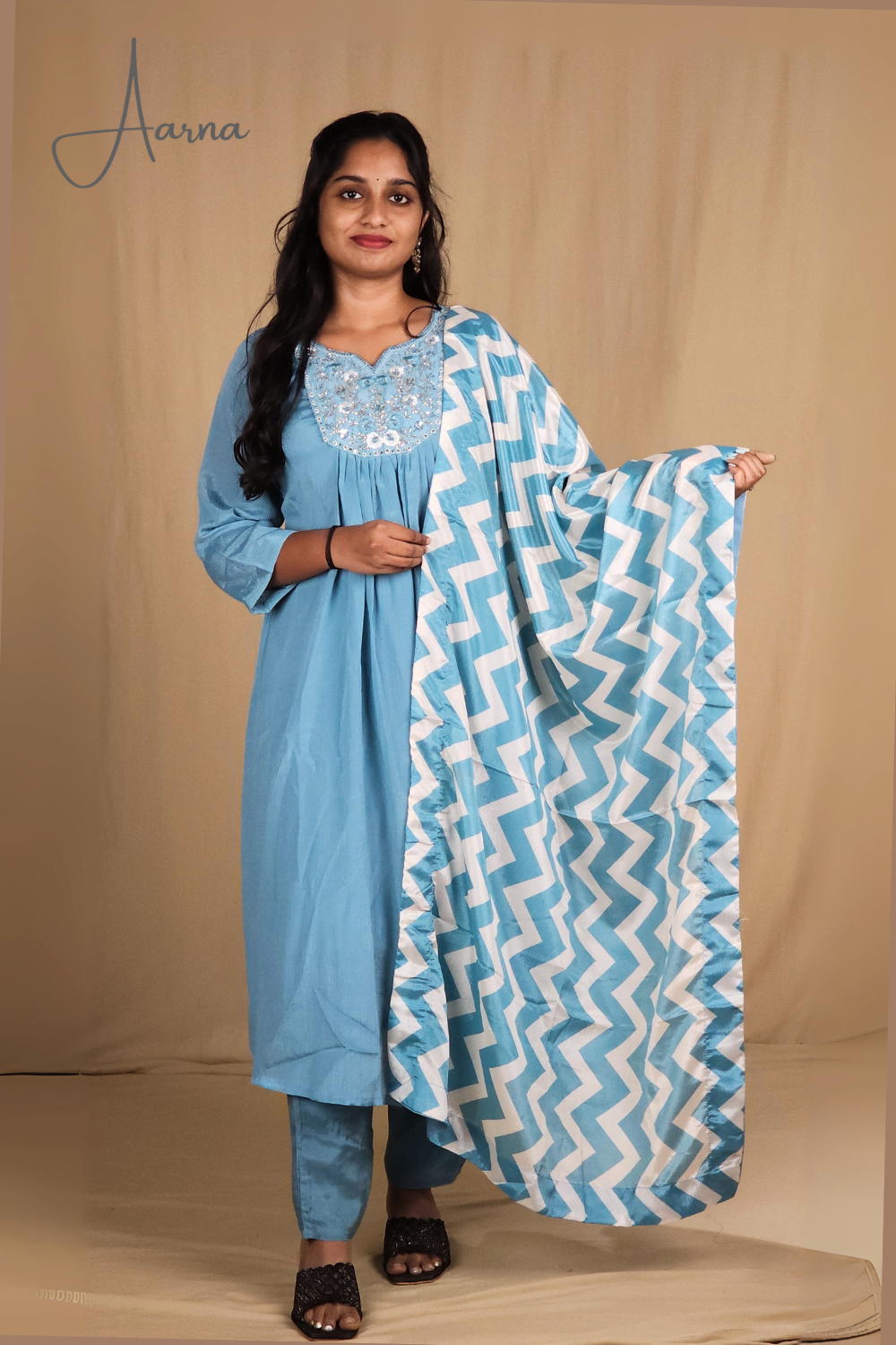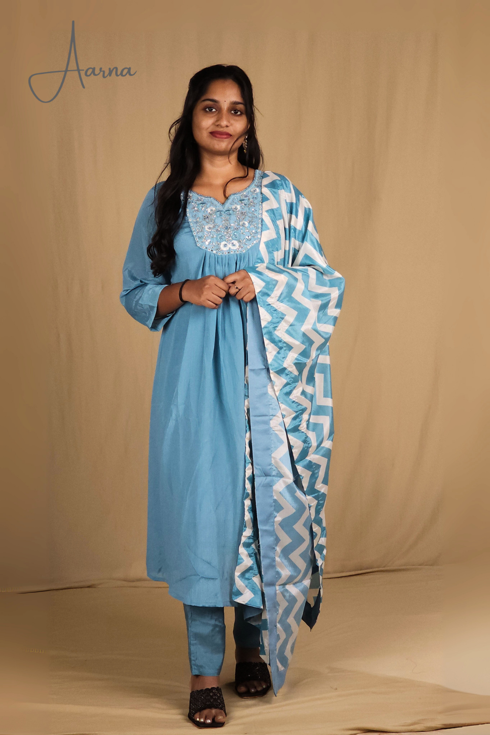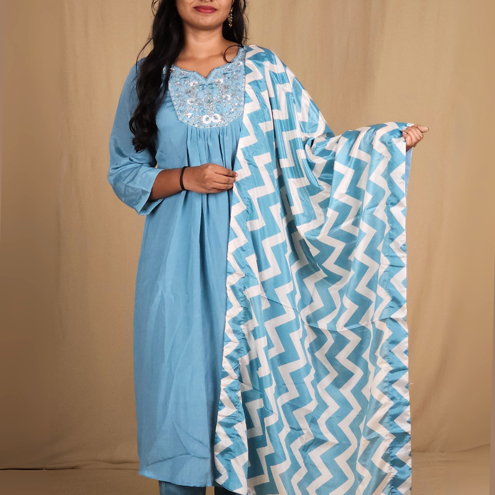 Sky Blue Ready to wear Crepe Chiffon Suit
