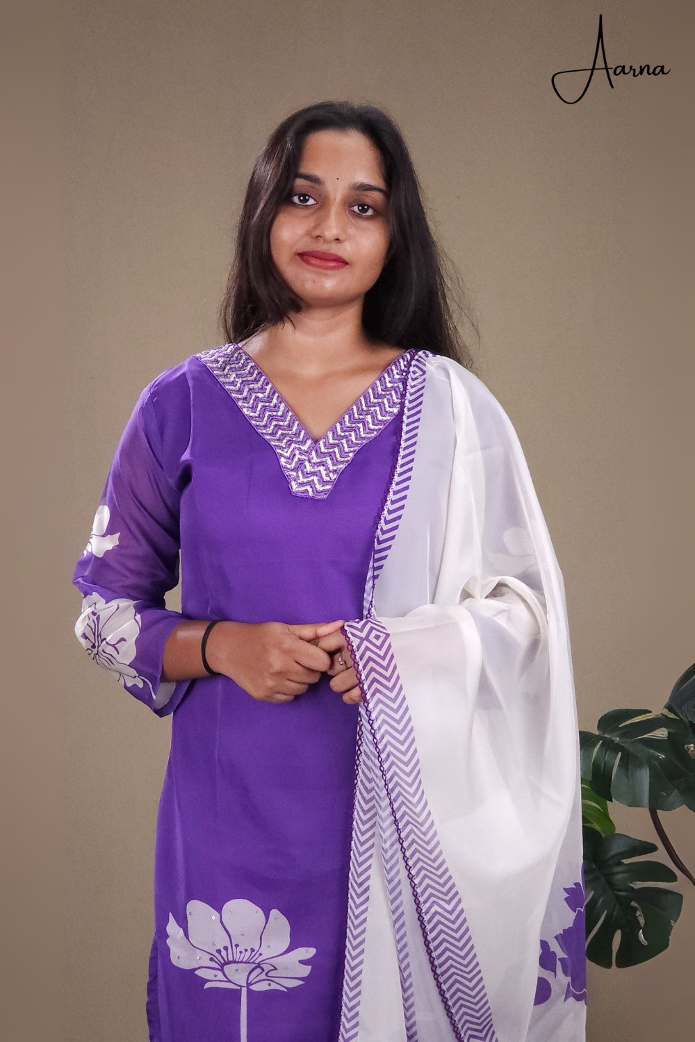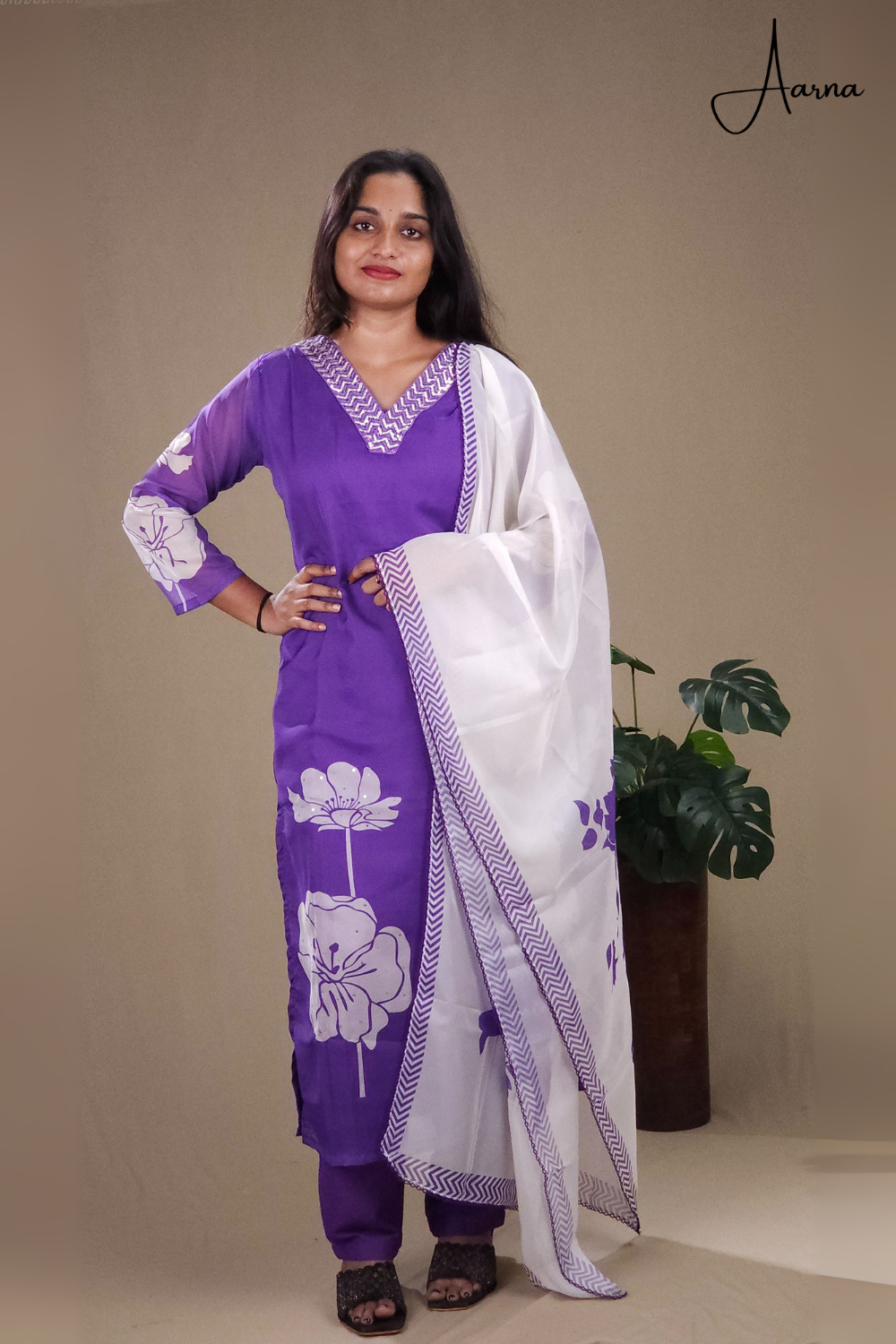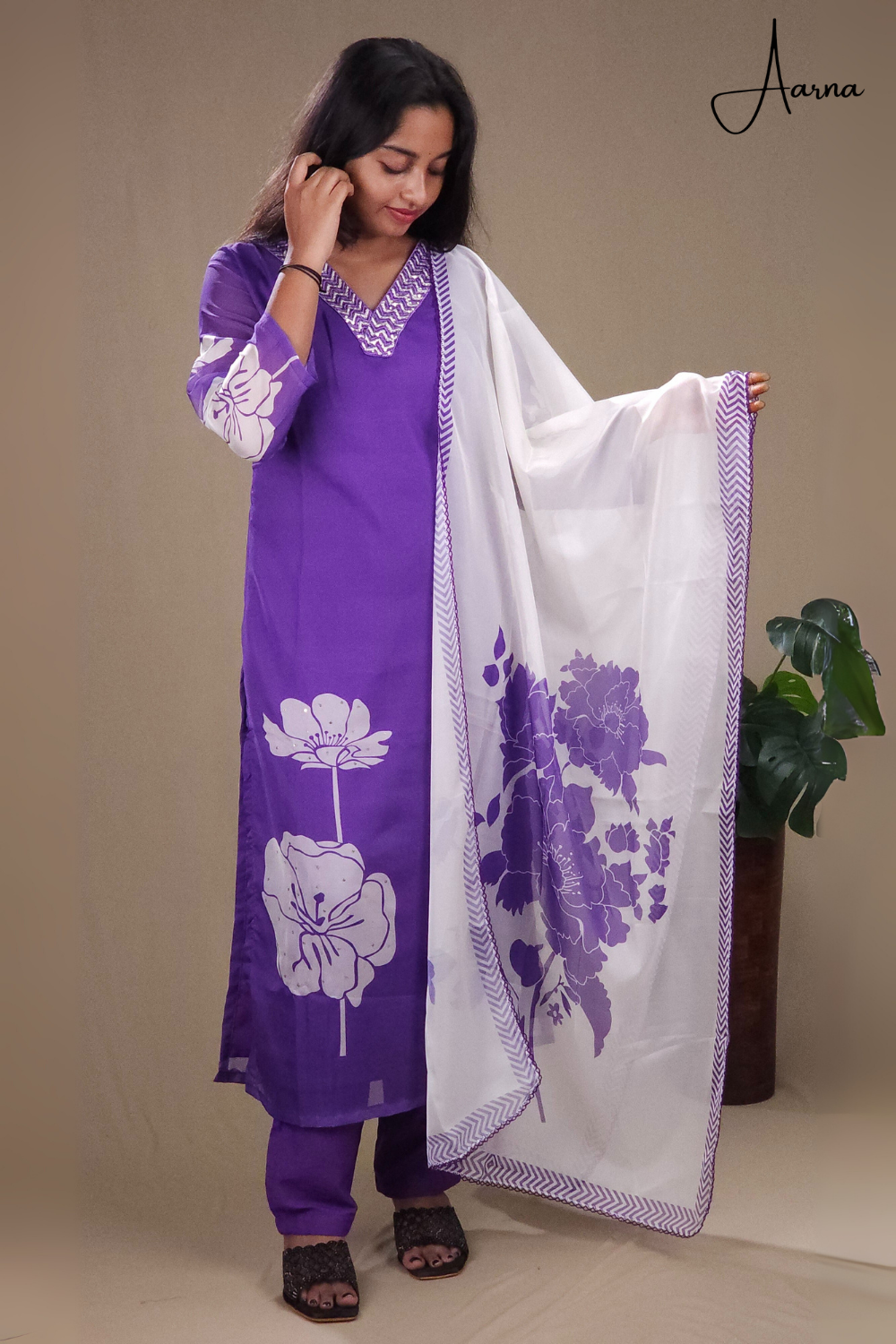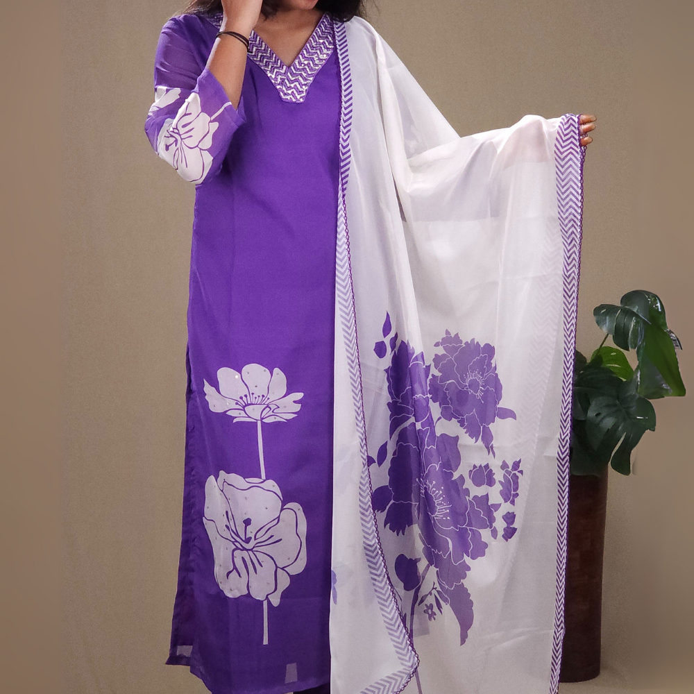 Soft Organza Suit floral digital prints, elegant beads with sequence work V - neckline and a straight-cut pant . Paired with a beautifully crafted dupatta, this ensemble offers comfort and sophistication for any occasion."