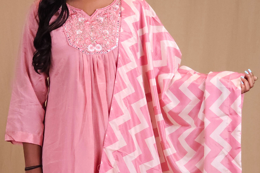Baby Pink Ready to wear Crepe Chiffon Suit