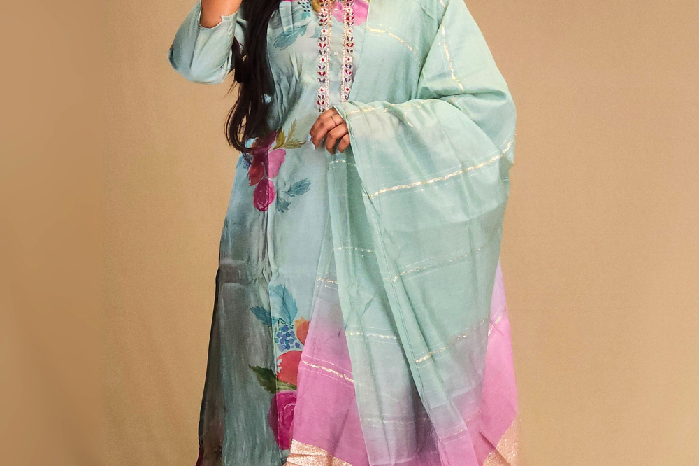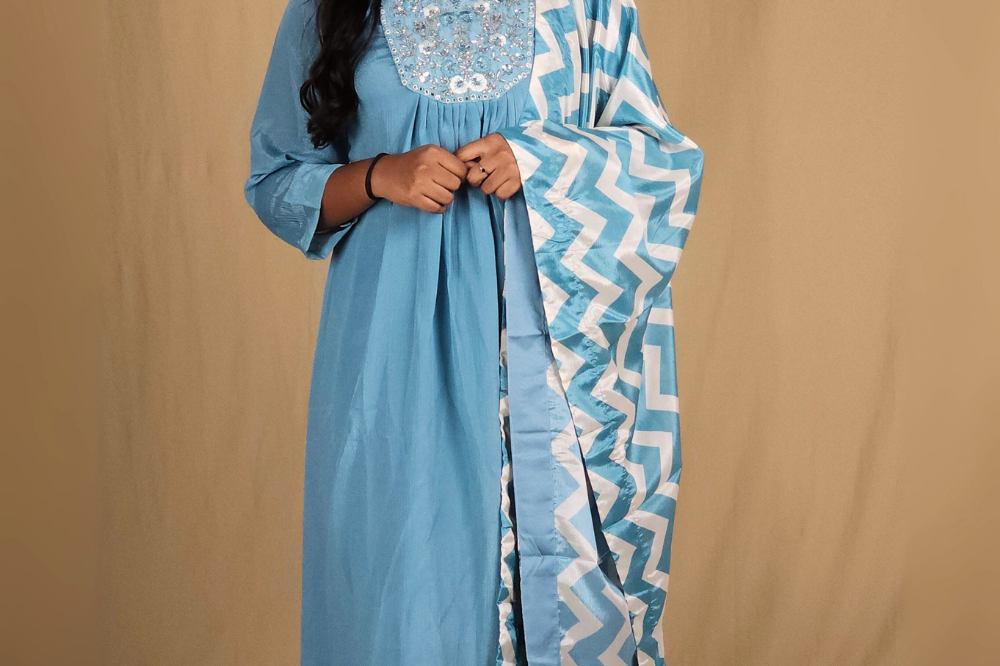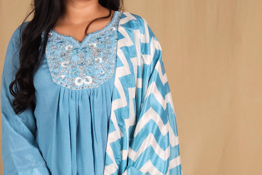 Sky Blue Ready to wear Crepe Chiffon Suit
