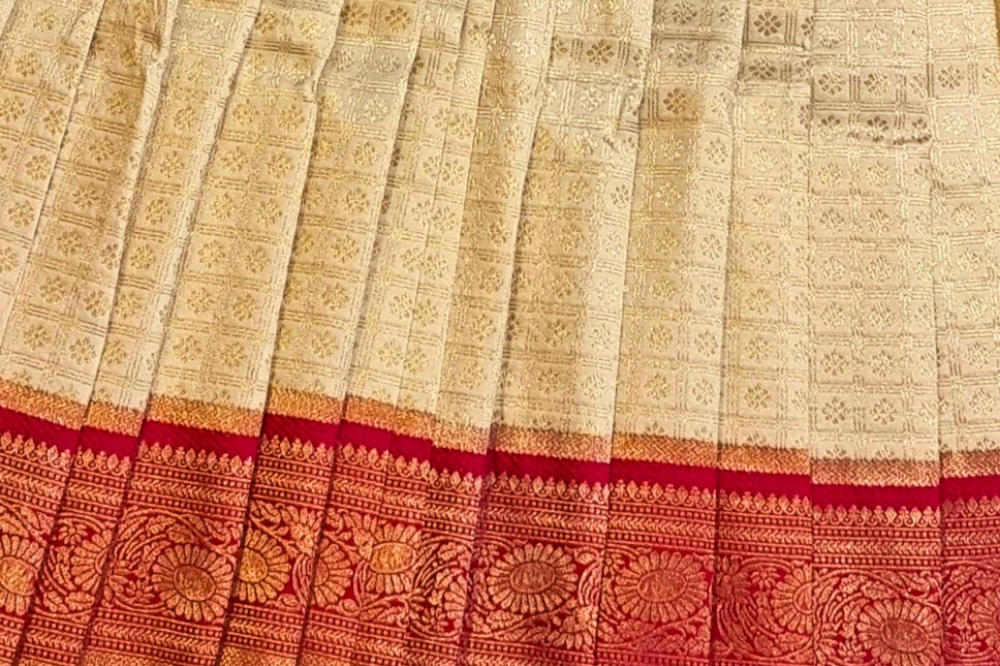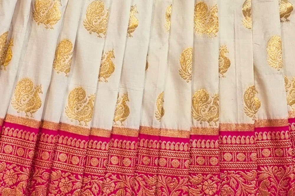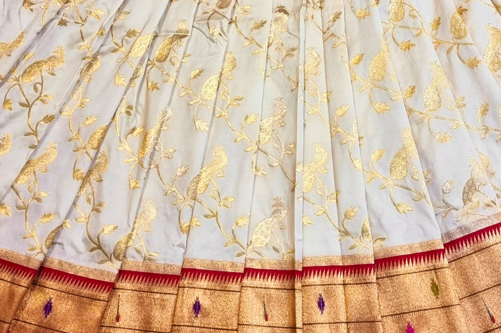 Experience the timeless beauty of 100% Pure Silk Handloom Gadwal Sarees, crafted by skilled artisans and certified by Silk Mark for purity. These sarees feature intricate handwoven zari patterns, rich textures, and a lightweight feel that makes them ideal for weddings, festive occasions, and cultural celebrations.