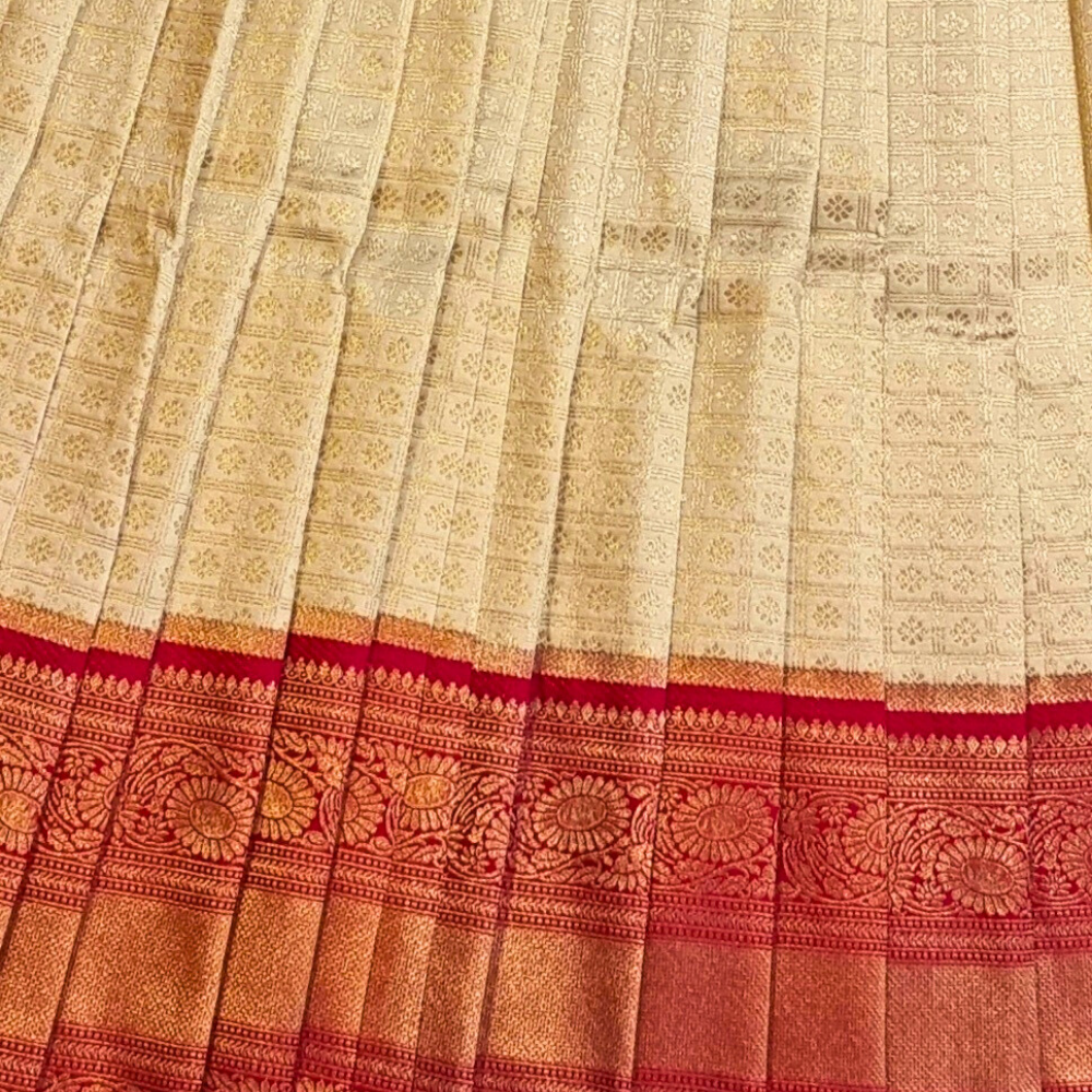 Cream Semi Banarasi Lehenga
