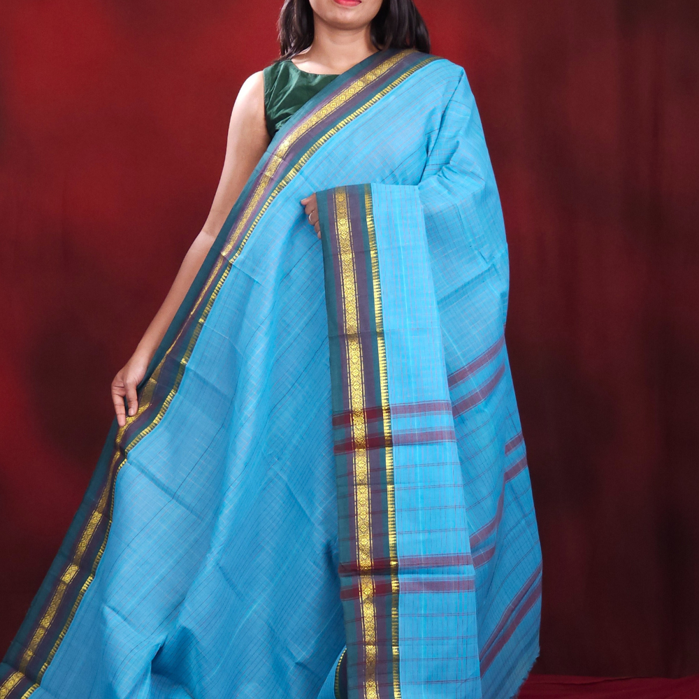 Blue Narayanpet Cotton Saree