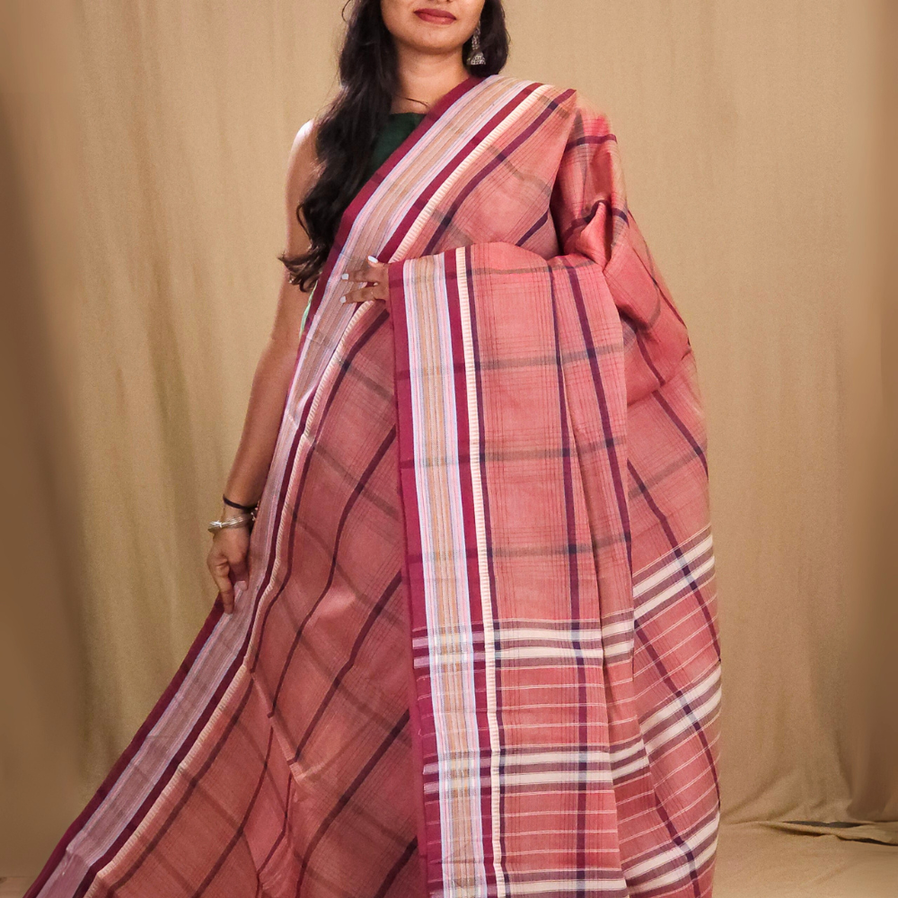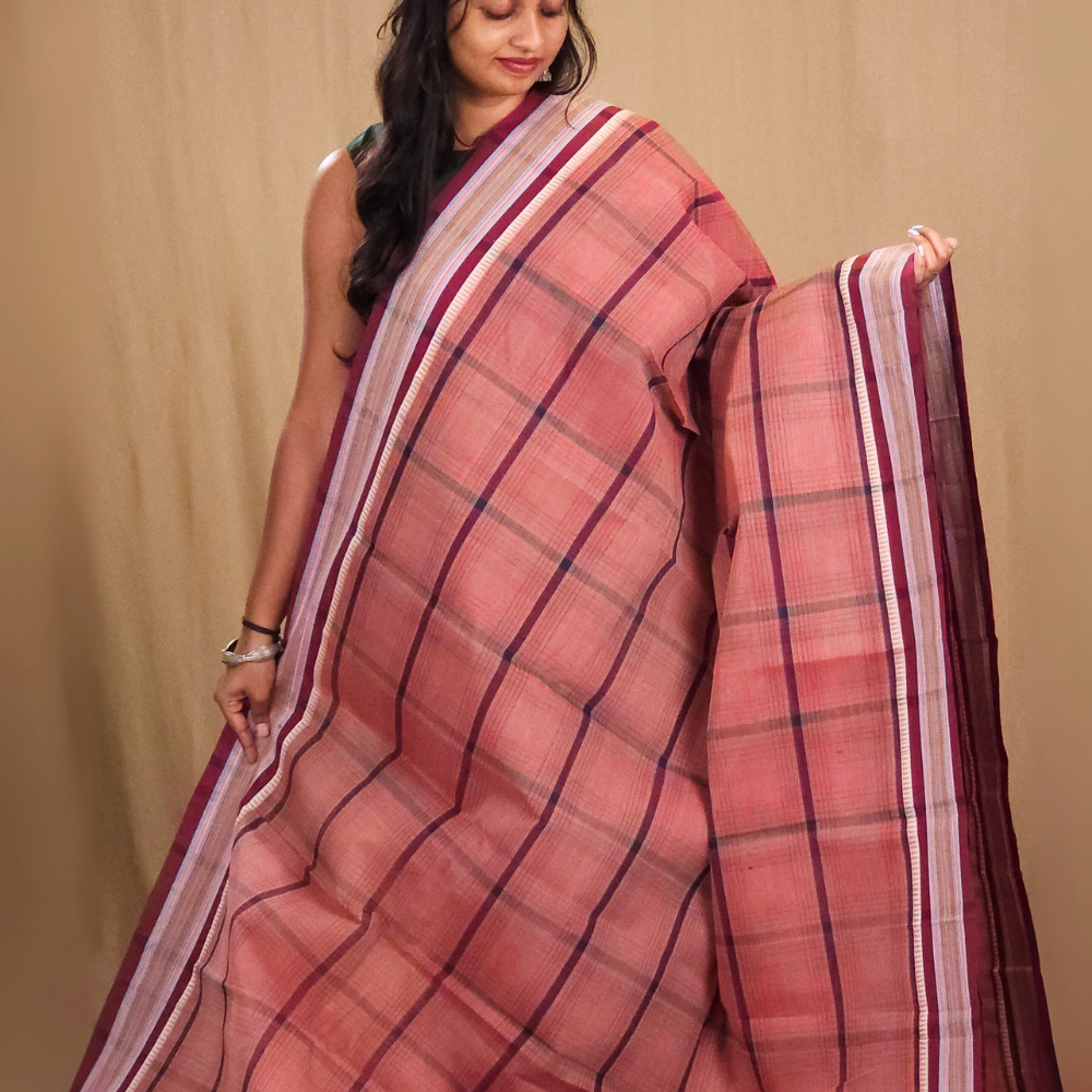 Elevate your everyday style with our Handloom Narayanpet Cotton Saree, featuring allover checks and elegant thread-woven borders with a simple striped pallu.....
