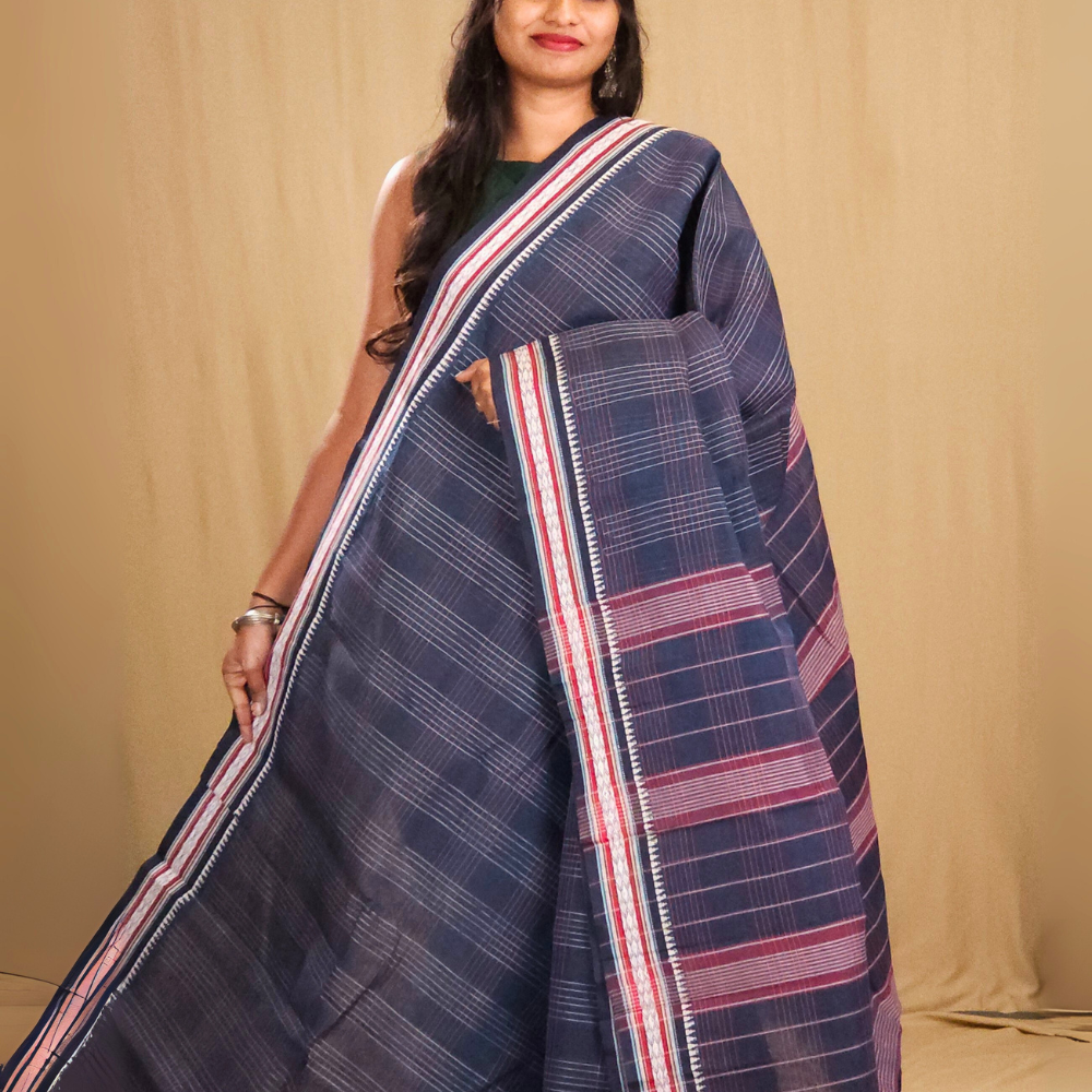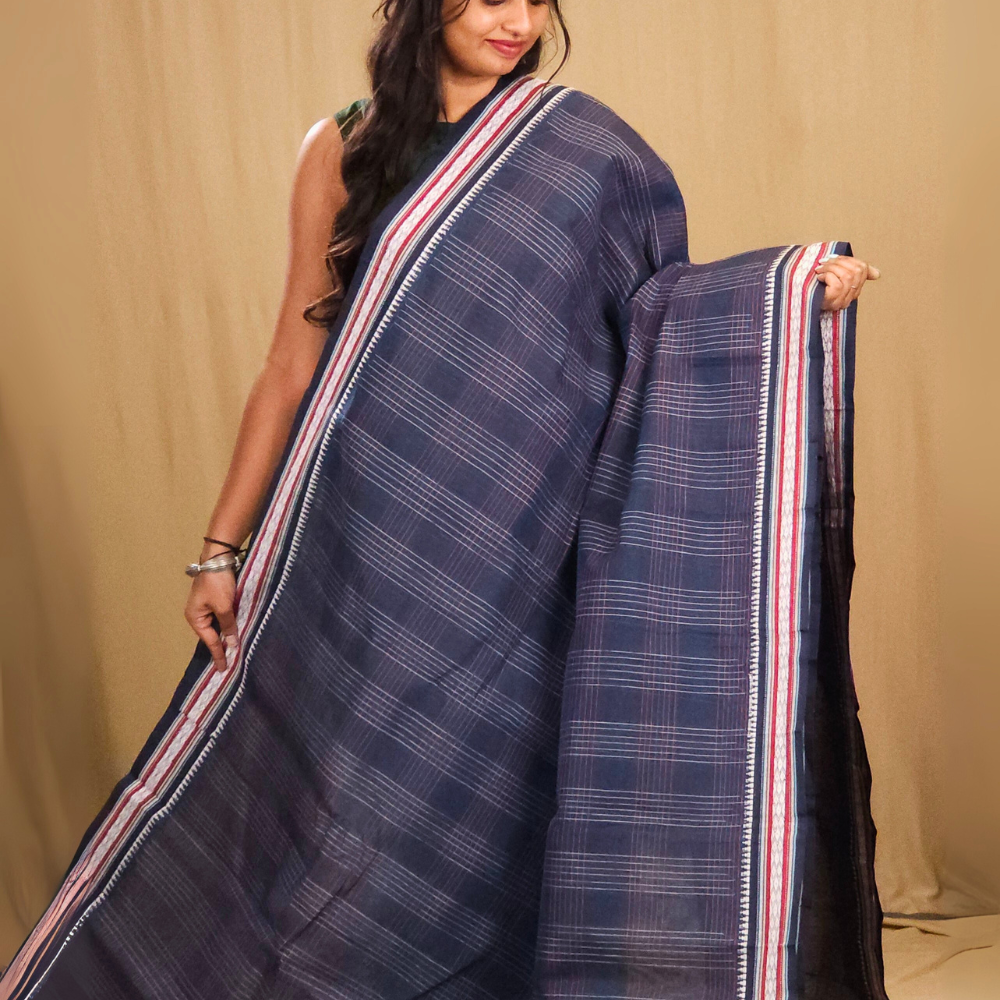 Elevate your everyday style with our Handloom Narayanpet Cotton Saree, featuring allover checks and elegant thread-woven borders with a simple striped pallu.....