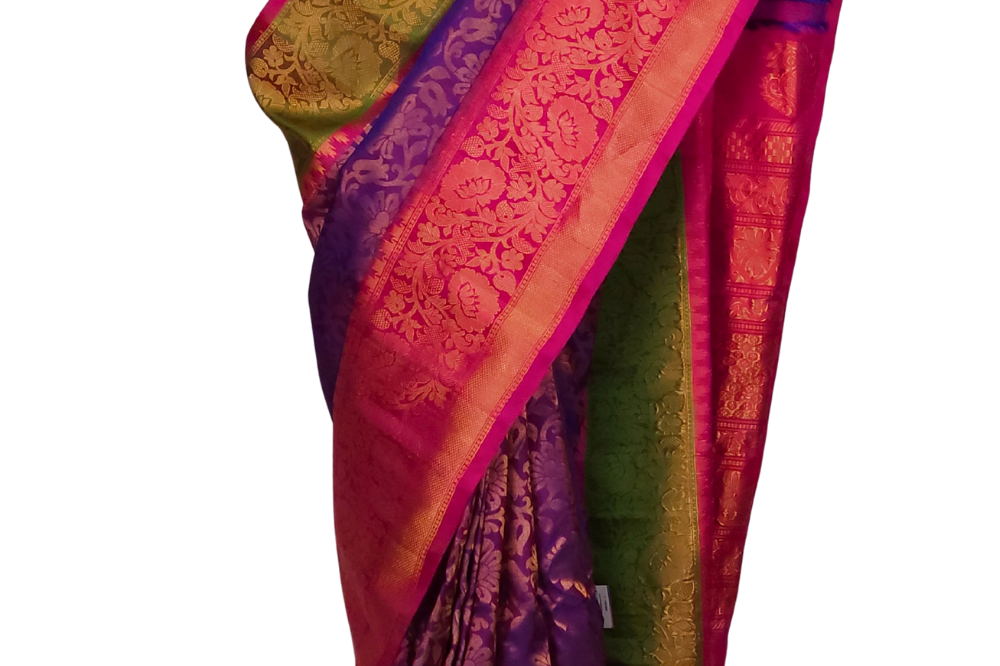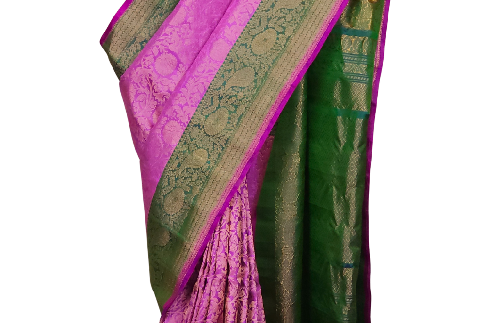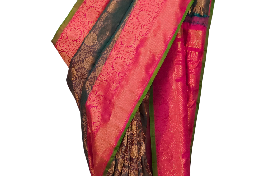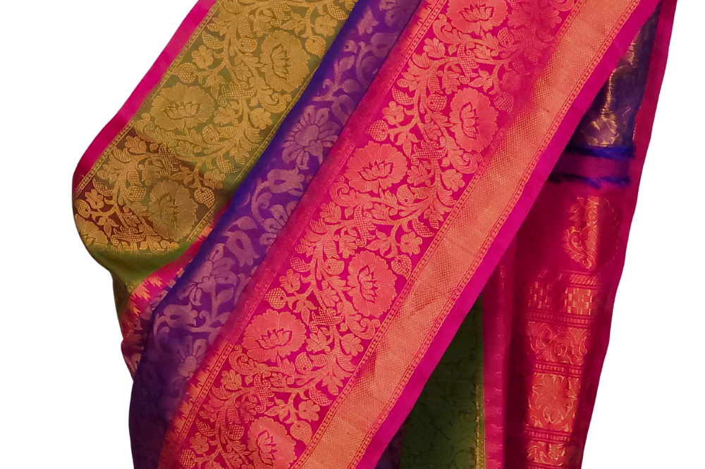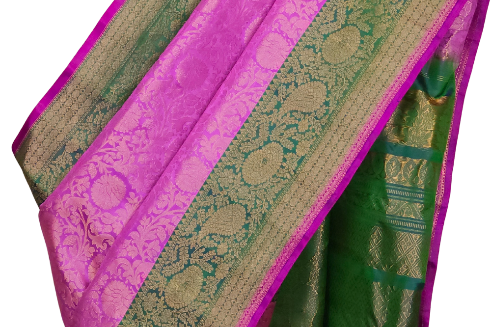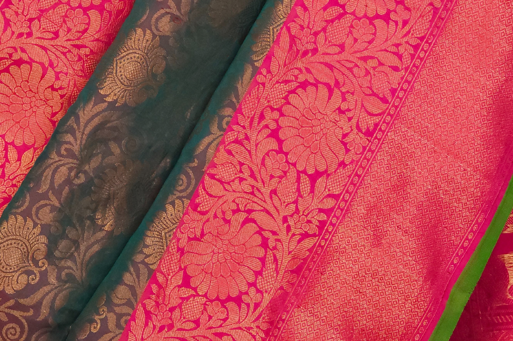 Dual Shade Of Green & Red Gadwal Silk Saree