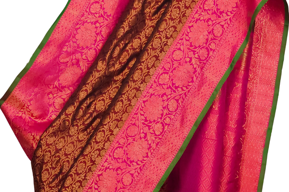 Experience the timeless beauty of 100% Pure Silk Handloom Gadwal Sarees, crafted by skilled artisans and certified by Silk Mark for purity. These sarees feature intricate handwoven zari patterns, rich textures, and a lightweight feel that makes them ideal for weddings, festive occasions, and cultural celebrations.
