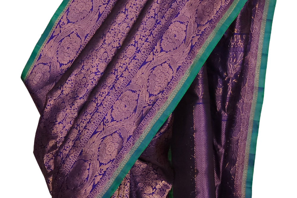 Dual Shade Of Blue & Red Gadwal Slk Saree