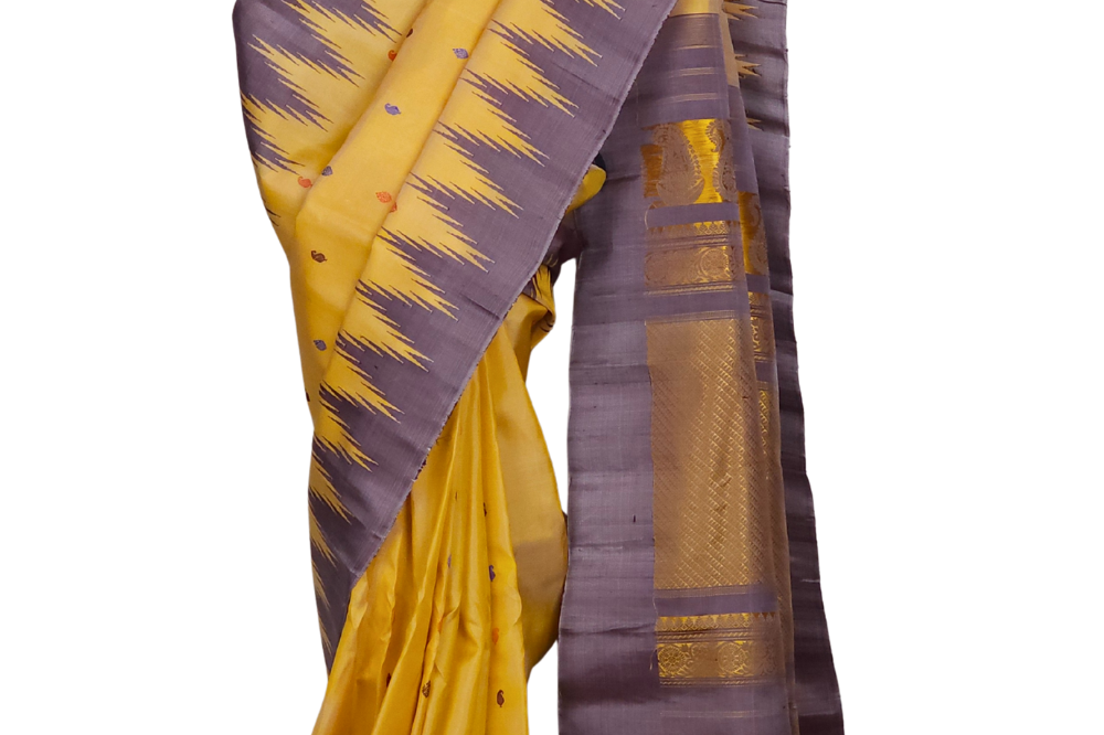 Dual Shade Of Sky Blue & Yellow Gadwal Silk Saree