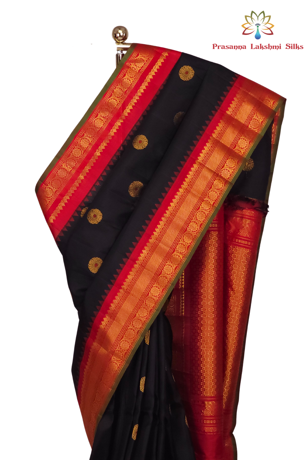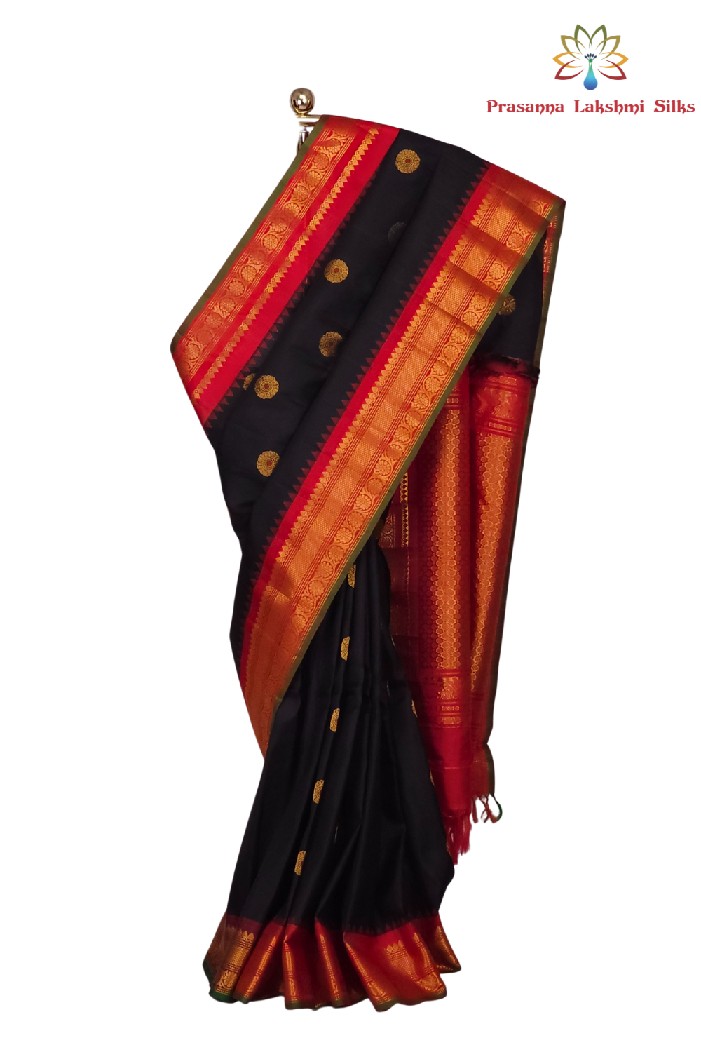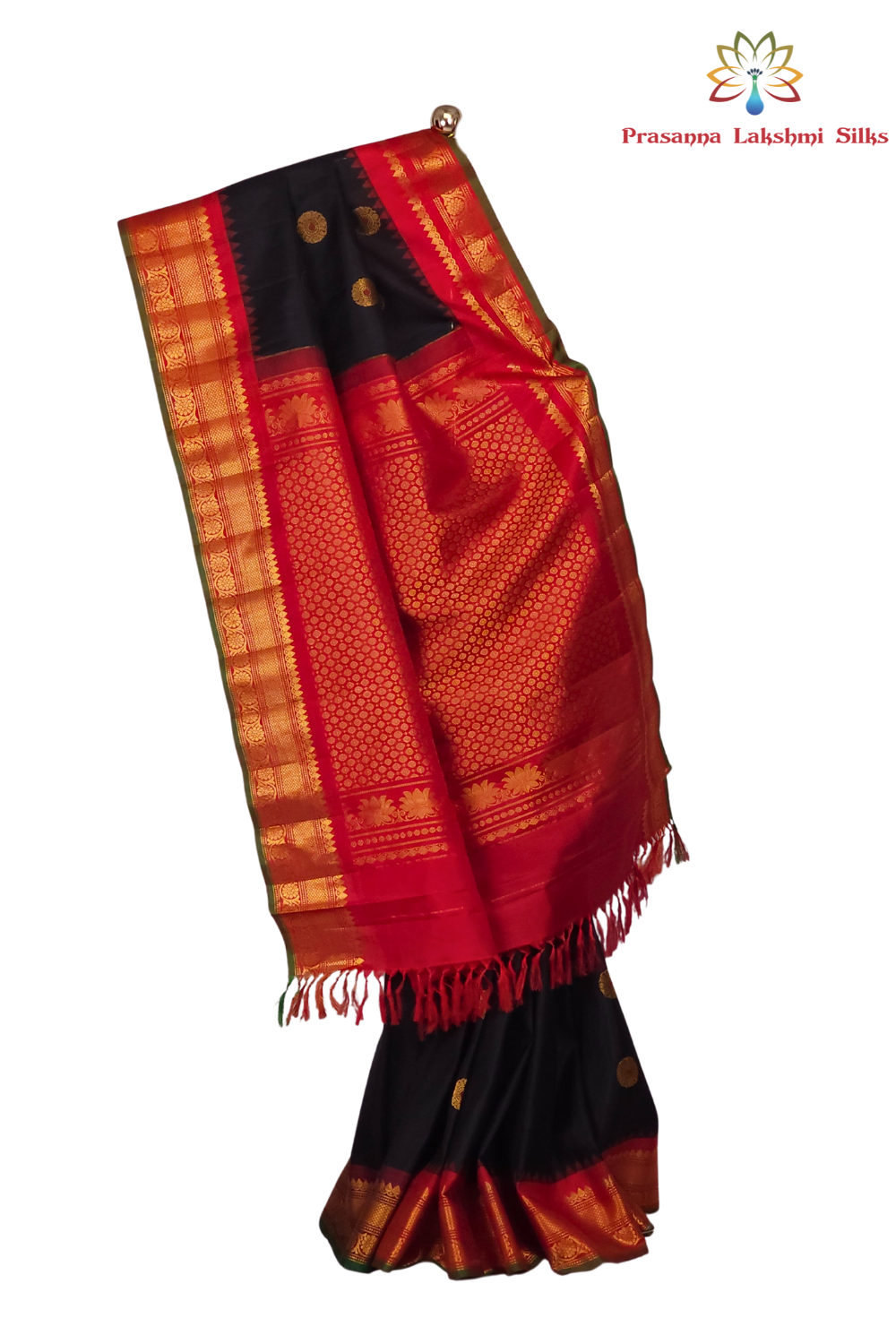 Elevate your elegance with our exquisite Handloom Gadwal Pure Silk Saree, adorned with Intricate zari motifs zari-woven borders Rich zari-woven brocade adorns the pallu, making every drape a statement.