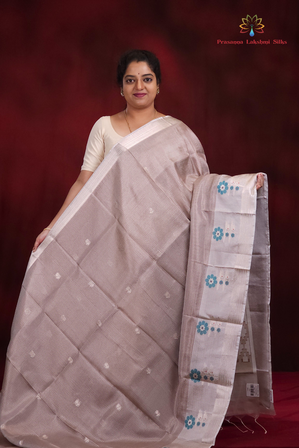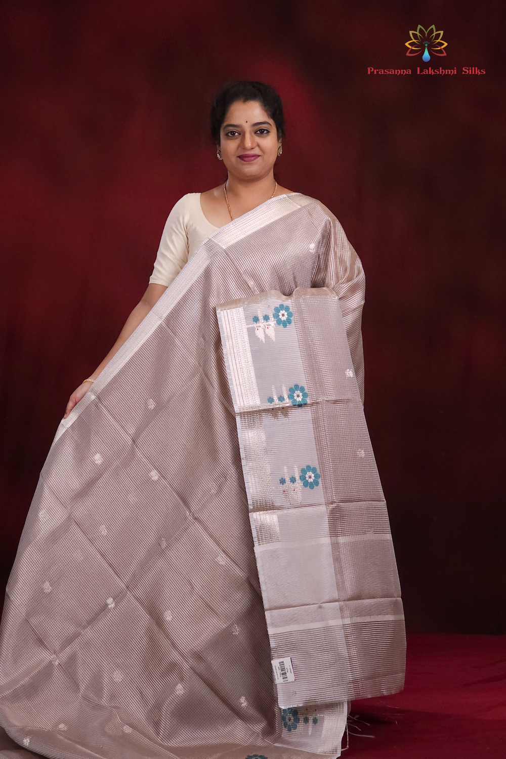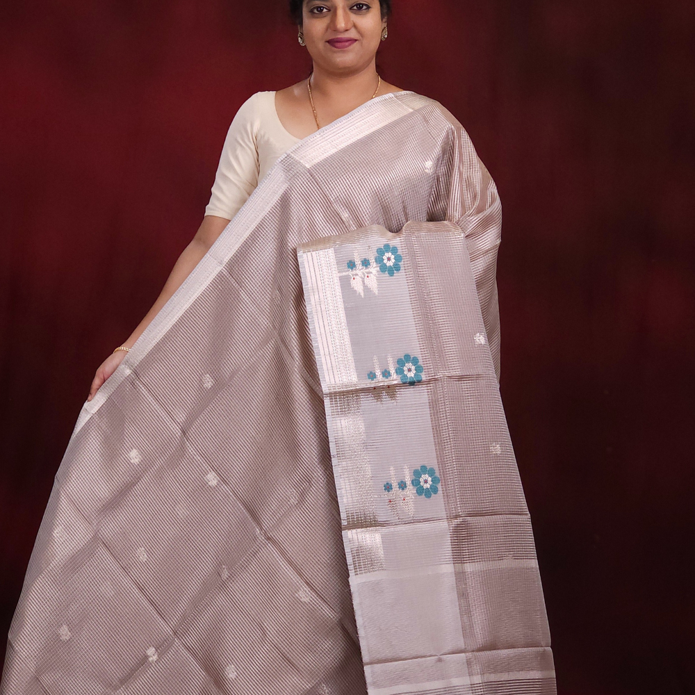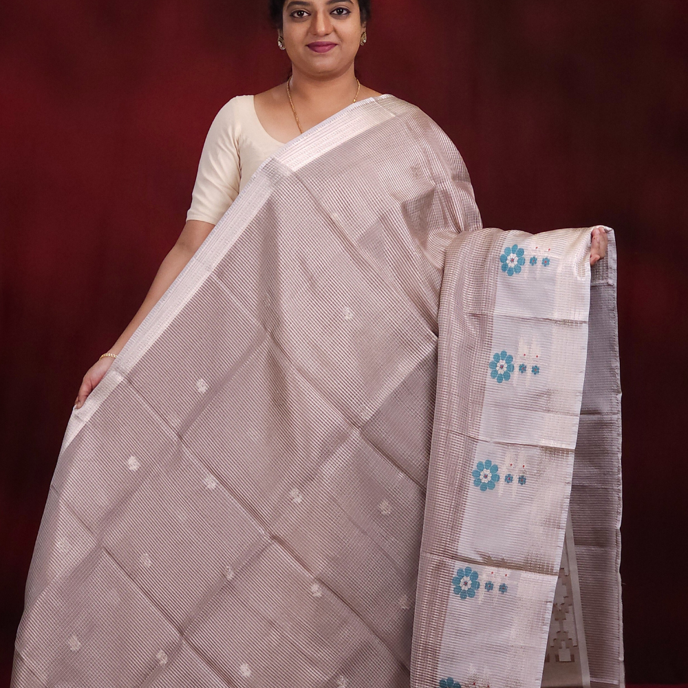 Experience the grandeur of Kota checks saree allover tiny checks with zari-woven motifs and small flower bunches borders in gold and silver zari with simple pallu and running blouse.....