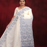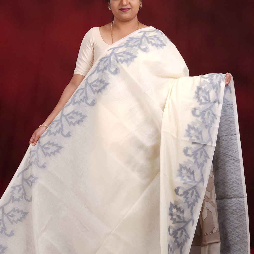 Cream and Grey Semi Muslin Saree