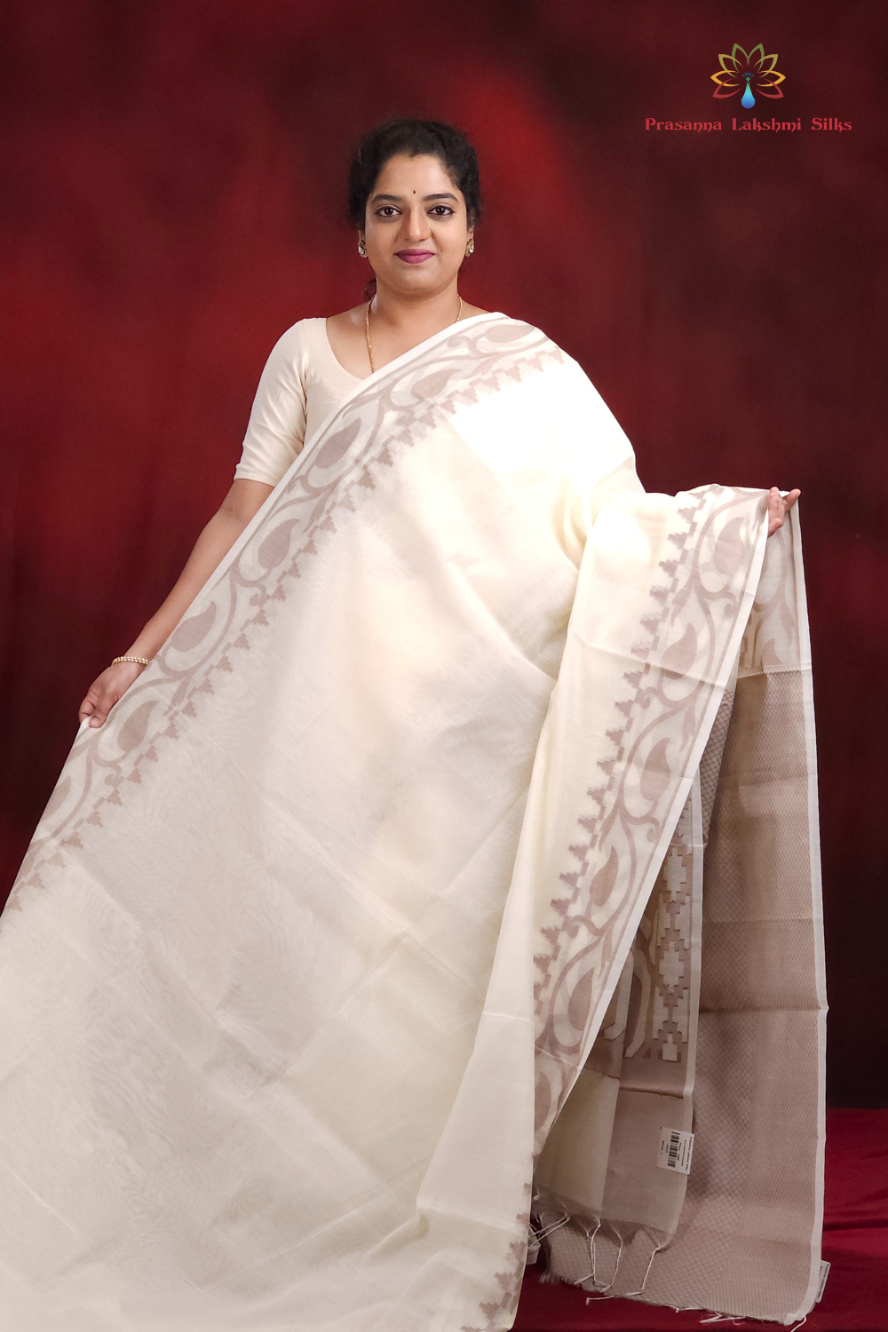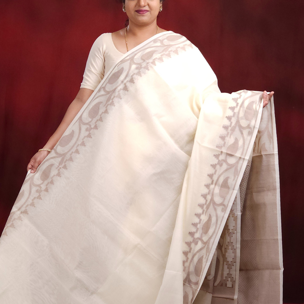 Experience the comfort of Semi muslin jhamdhani sarees with intricate jhamdhani borders ,pallu with tassels paired with contrast brocade blouse.....
