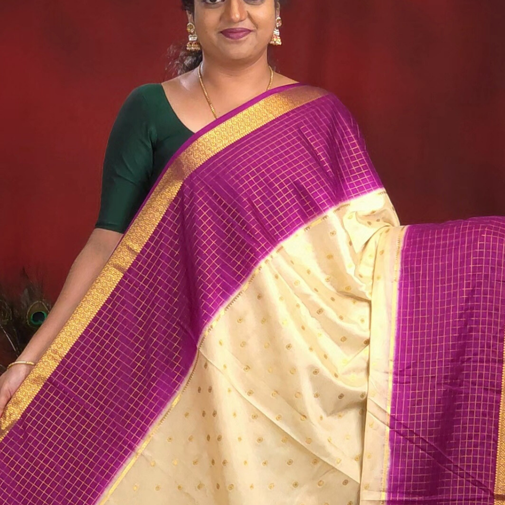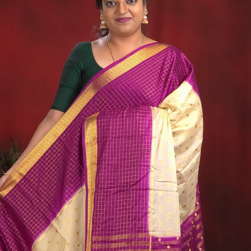 Cream Semi Mysore Silk Saree