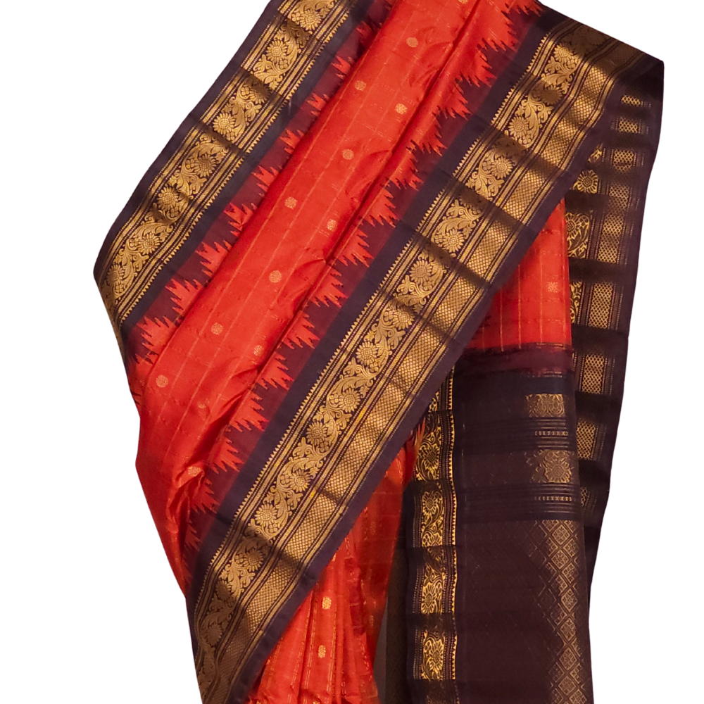 Dark Orange Gadwal Silk Saree