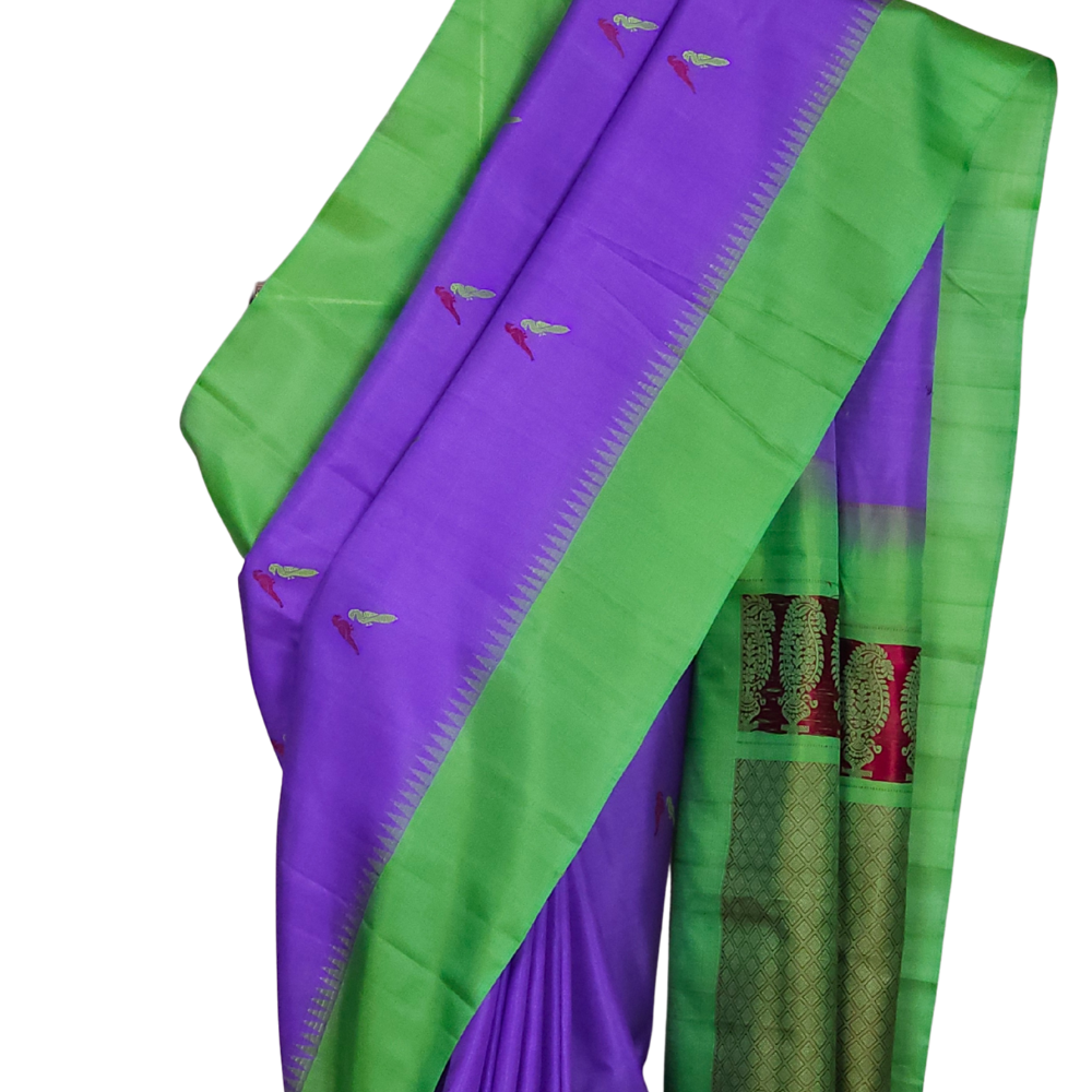 Discover the beauty of Handloom Gadwal Silk with our exquisite saree,classic checkered pattern creating a timeless look with zariwoven borders rich zari tissue pallu creating a stunning look..
