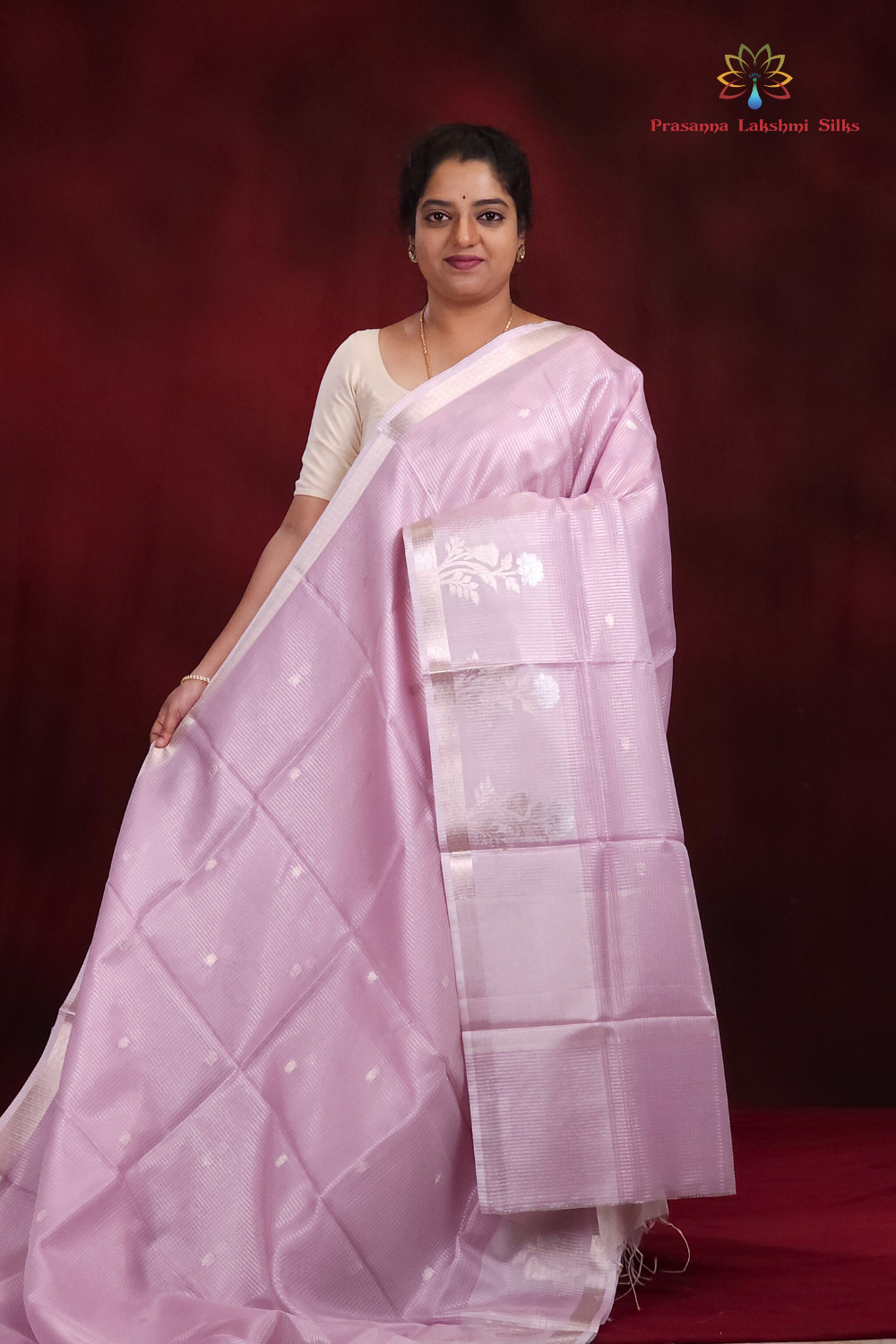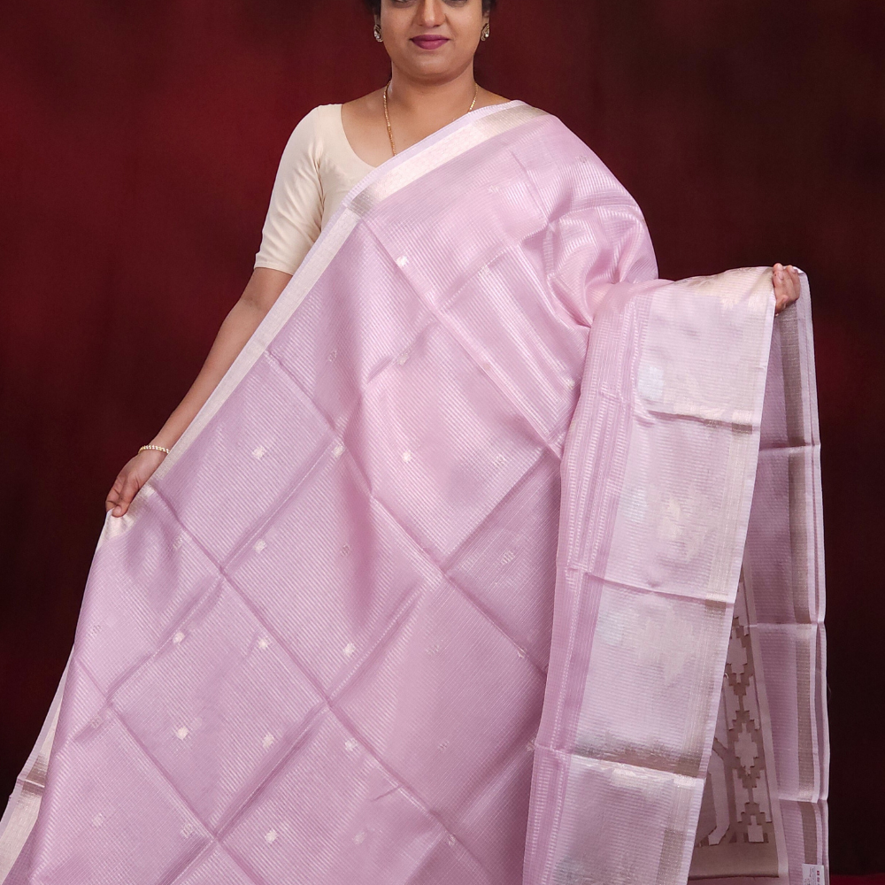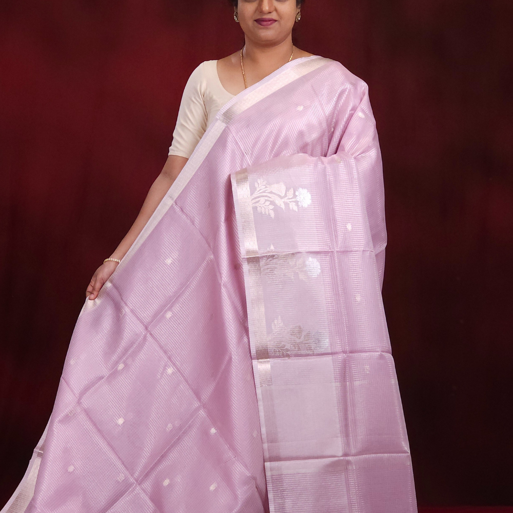 Experience the grandeur of Kota checks saree allover tiny checks with zari-woven motifs and small flower bunches borders in gold and silver zari with simple pallu and running blouse.....