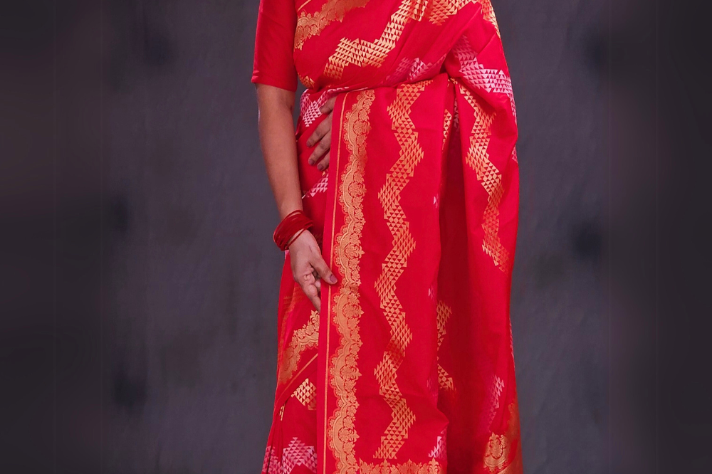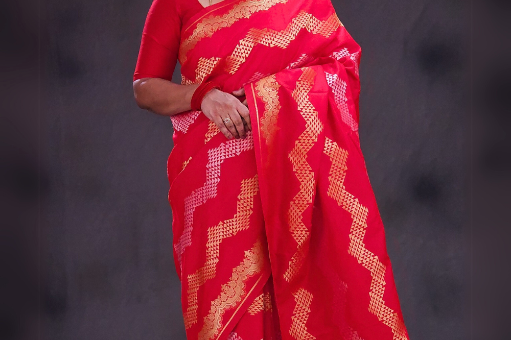 Red Semi Banaras Saree