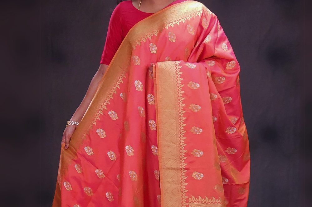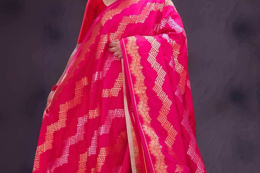 Hot Pink Semi Banaras Saree