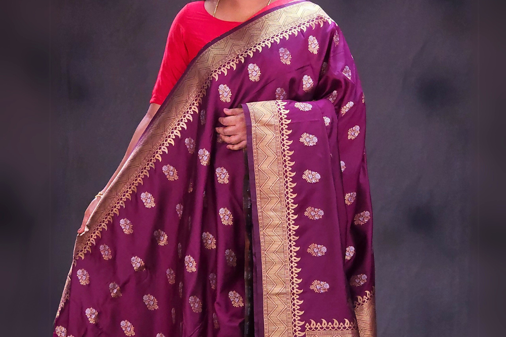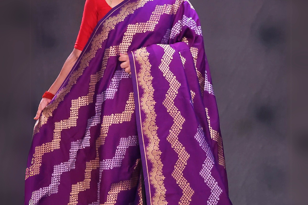 Deep Violet Semi Banaras Saree