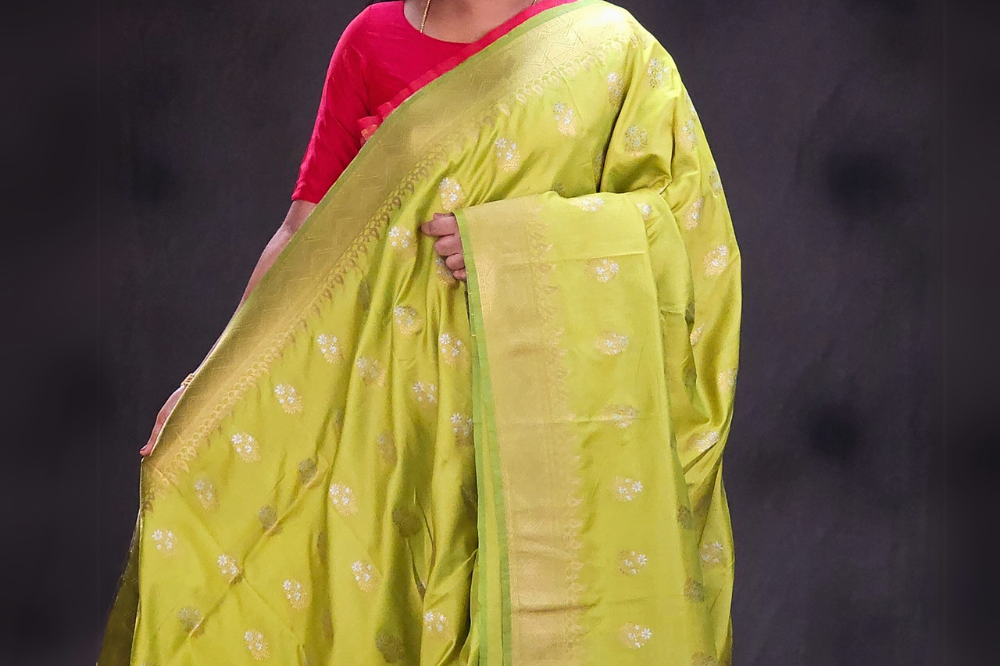 Light Olive Green Semi Banaras Saree