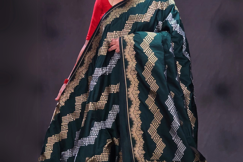 Bottle Green Semi Banaras Saree