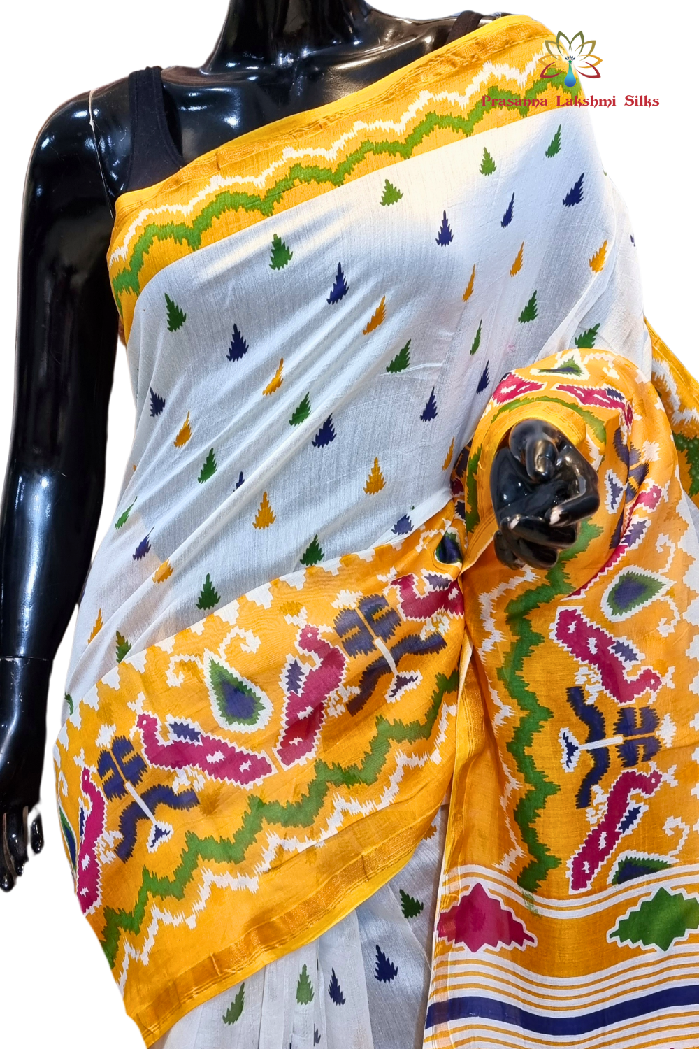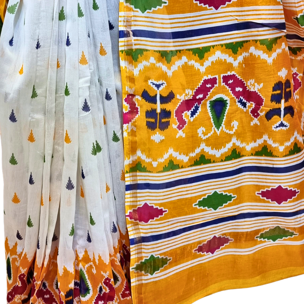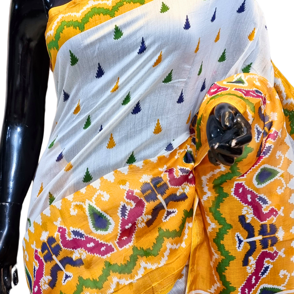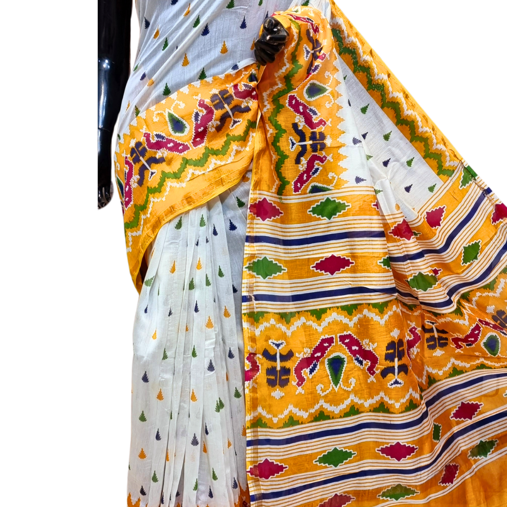 Elevate your style with our stunning Chanderi Silk Cotton Saree, contrast peacock borders with zari detailing, pallu paired with contrast blouse.....