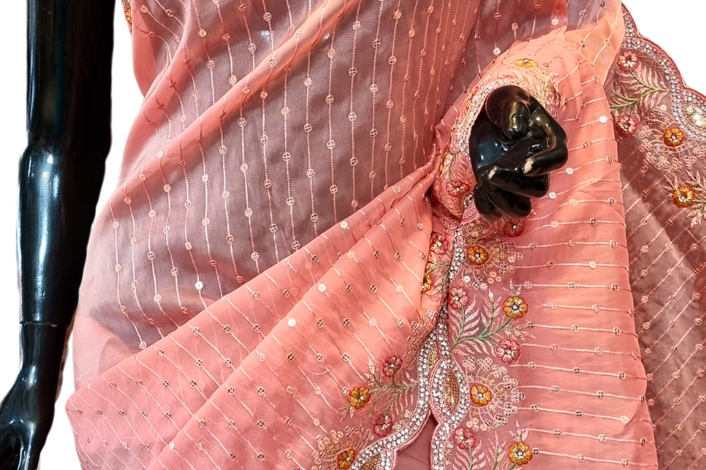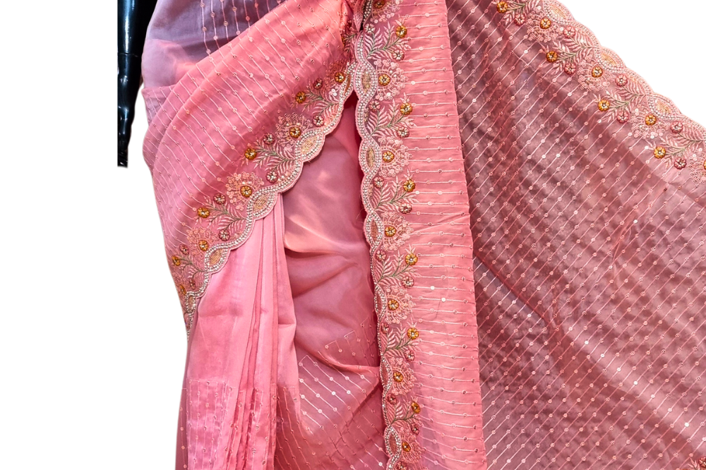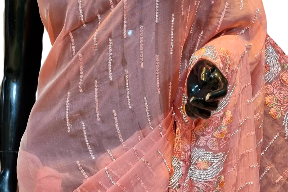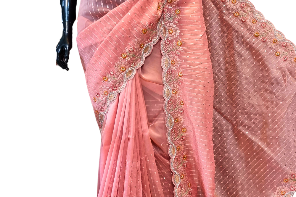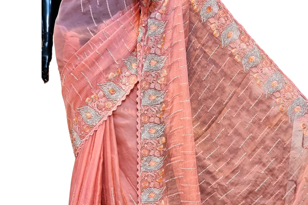 Peach Organza Saree