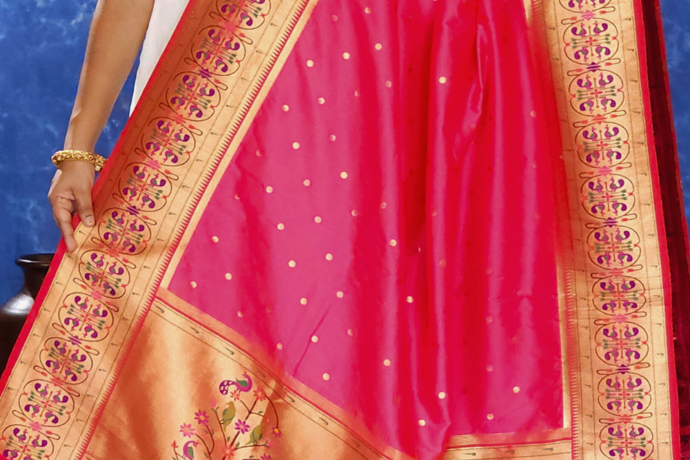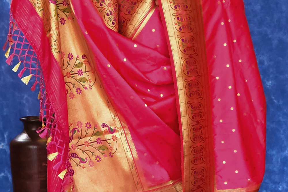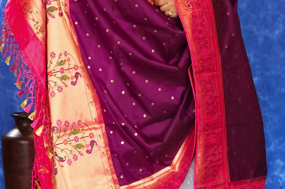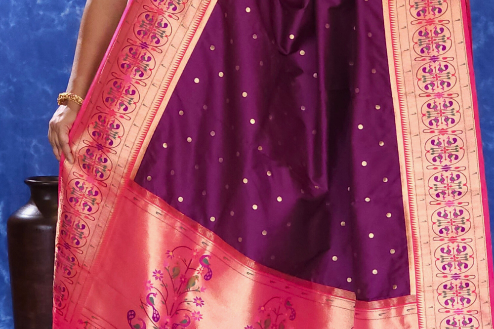 Deep Purple and Pink Semi Banaras Paithani Saree