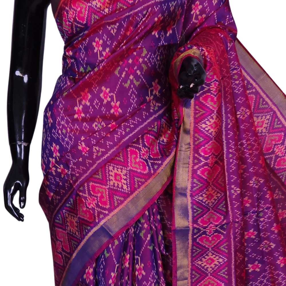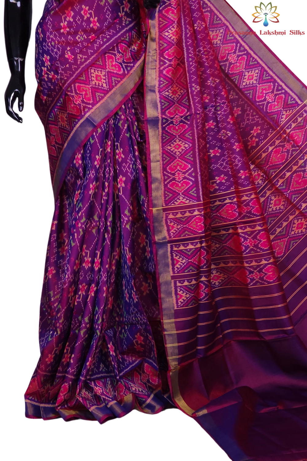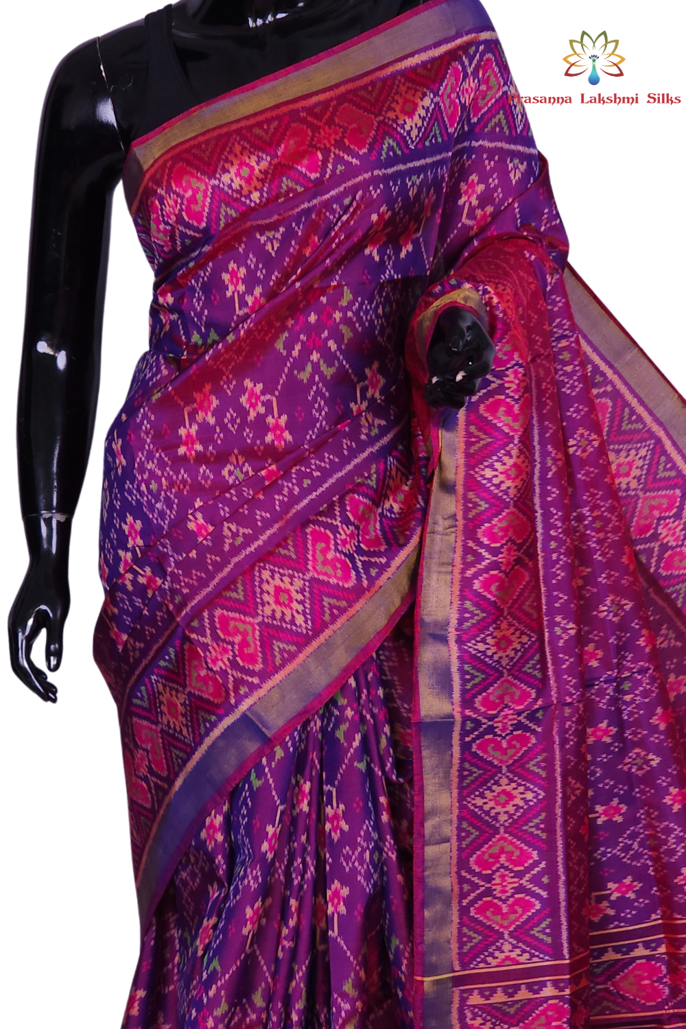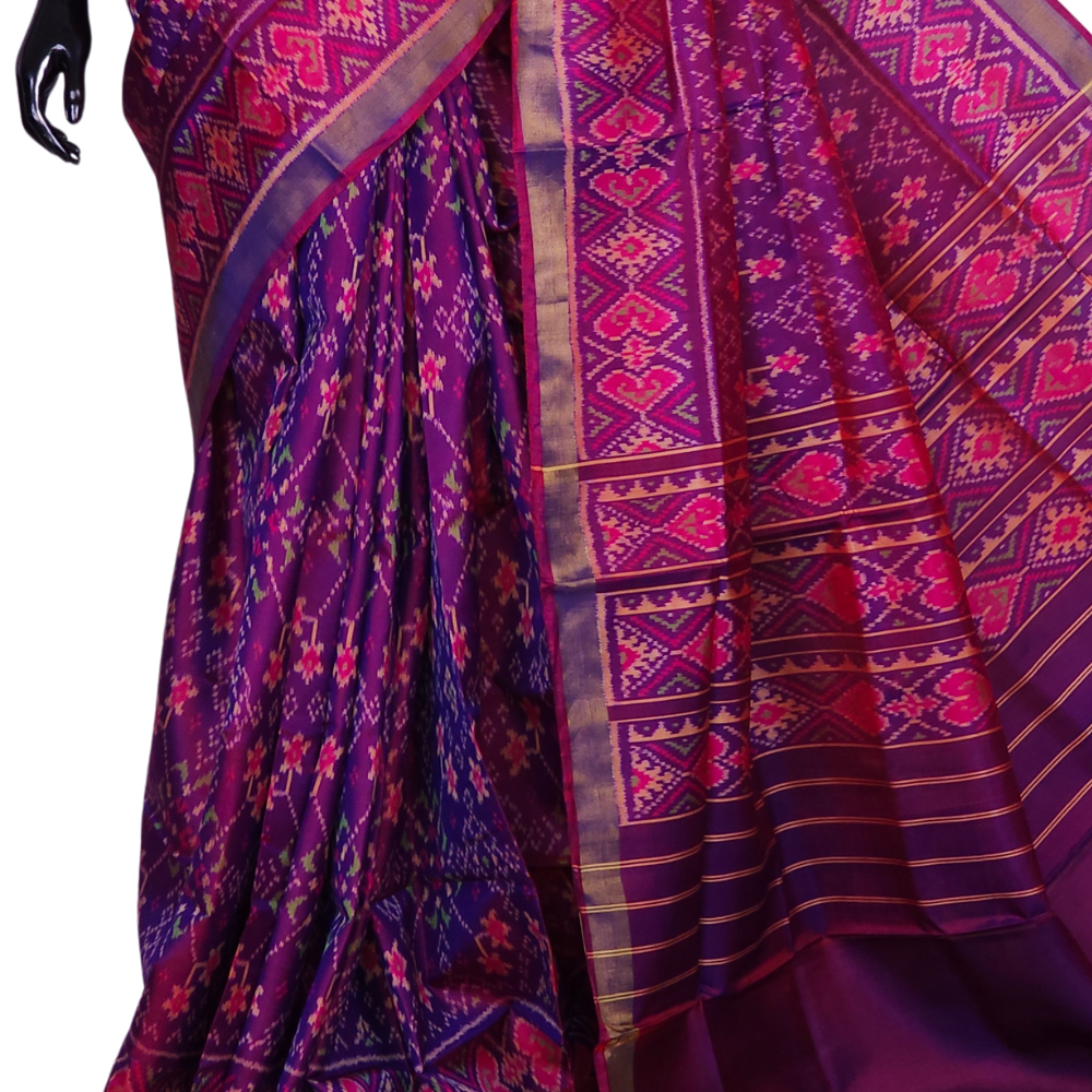 Elevate your ethnic style with our exquisite Handloom Patola Pure Silk Saree,beautiful & traditional Patola designs woven all over the saree elegantly woven patola borders with rich pallu and running blouse....